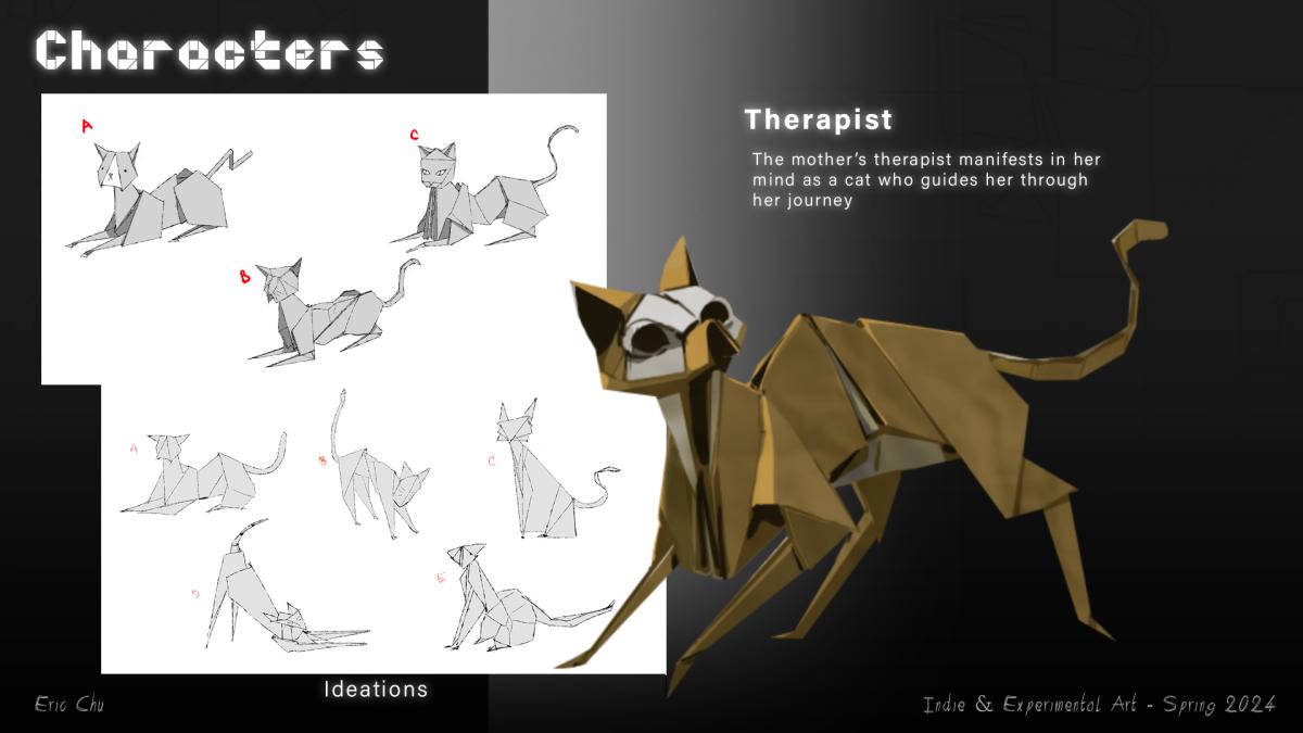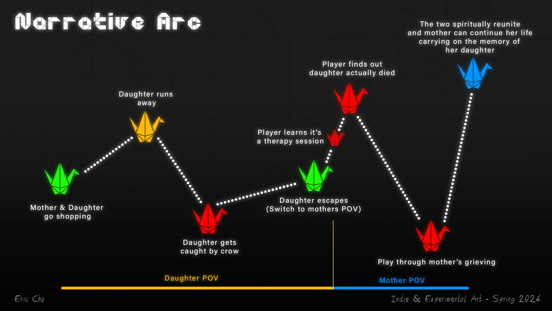 An pitch for a game about a grieving mother dealing with the loss of her young daughter, you play through her therapy sessions as she slowly unfolds her trauma eventually getting to peace.