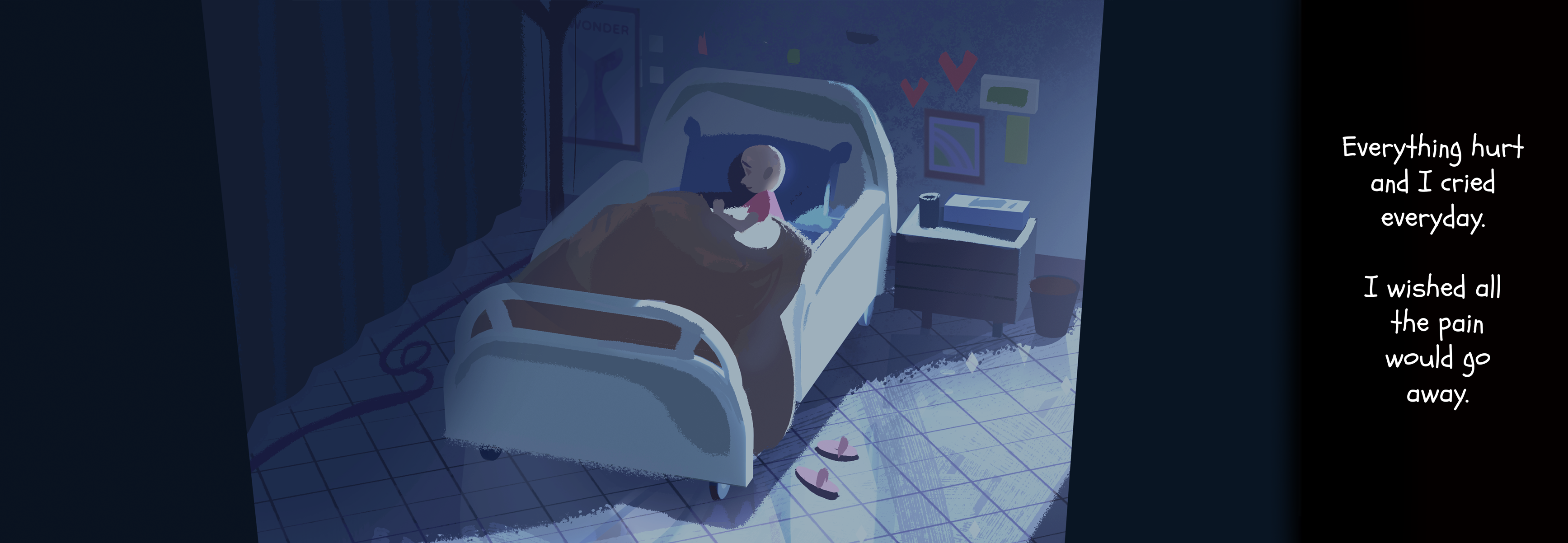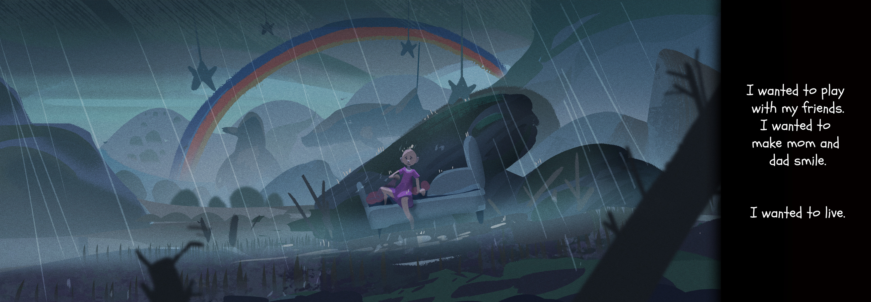 A color key story of a little girl who learns to appreciate life she's lived. Please click on the process tab of this page if you'd like to see my design process.