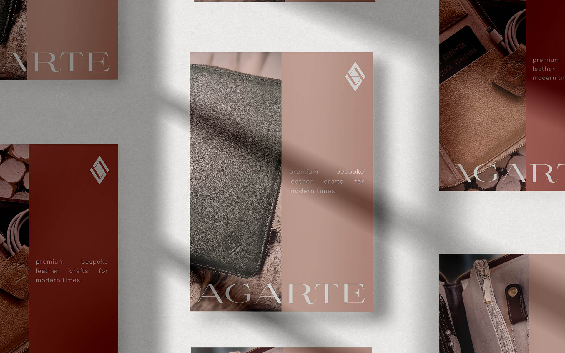 Client Work. Agarte is a premium bespoke leather crafts brand that focuses on handcrafted leather goods for the contemporary consumer. The elegance and variety of their offerings served as an inspiration to create a brand identity that felt both unique and luxurious.
