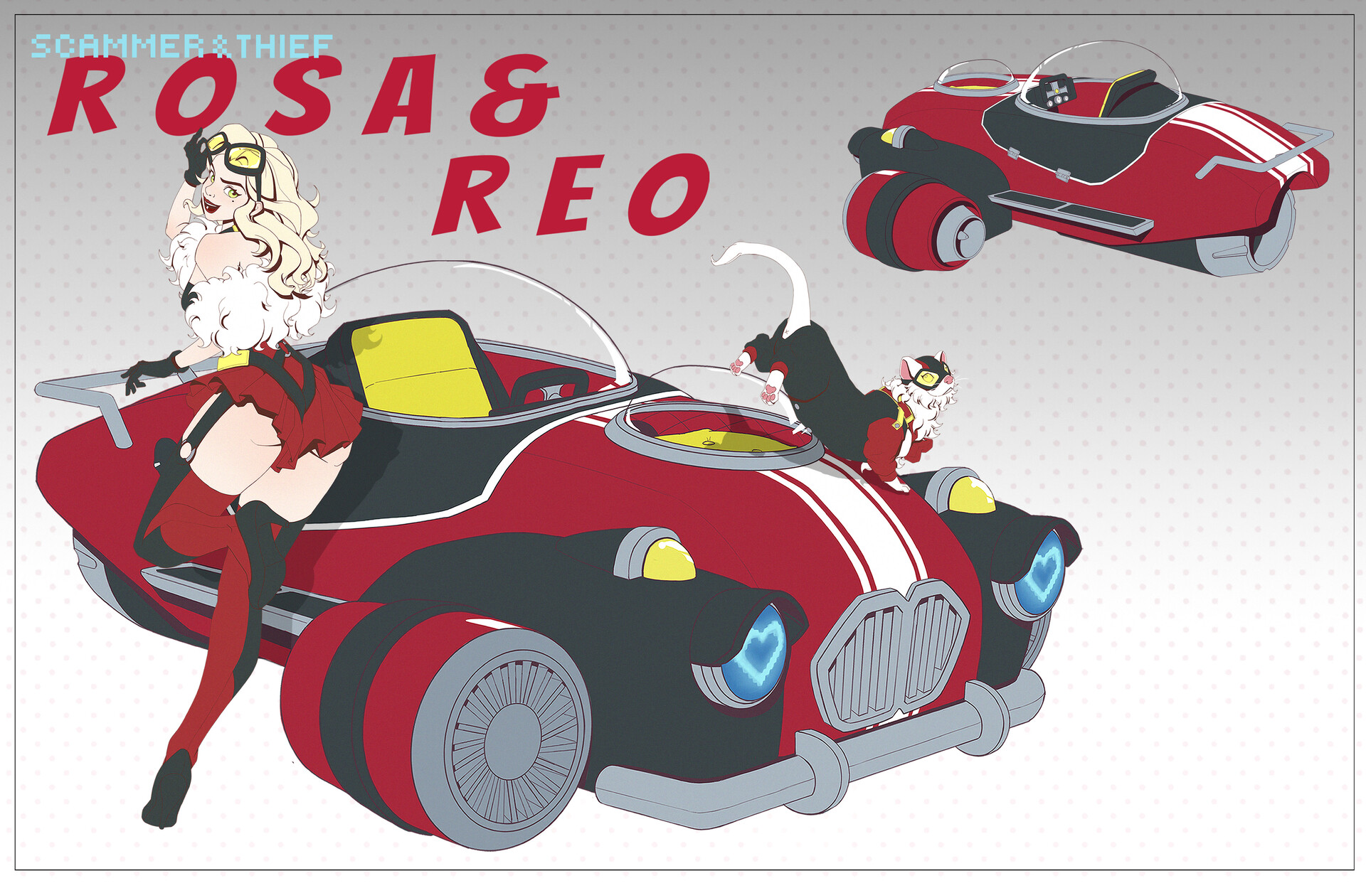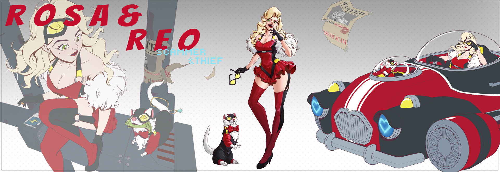 Rosa and Reo works as a team. While Rosa scams people or catches attention, Reo does the stealing.