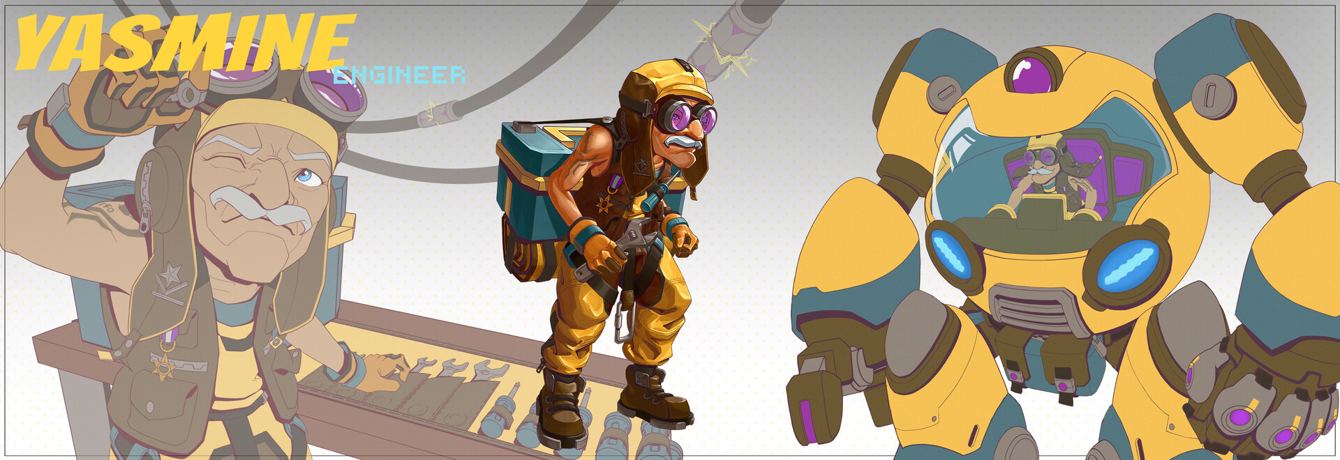 I learned to use and combine saturated colors in character and props. I practiced design methods that tells the viewers what the character's job is and what their personality would be like by considering their outfits and posture.