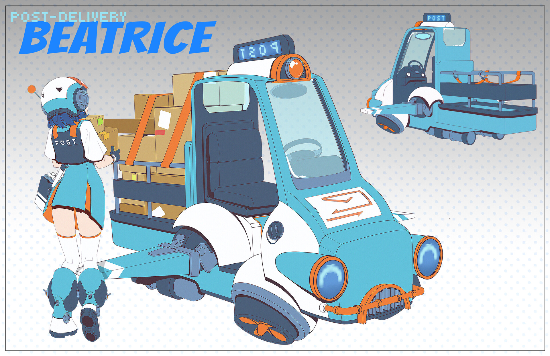 Beatrice is a post delivery girl. She is clumsy but always positive.