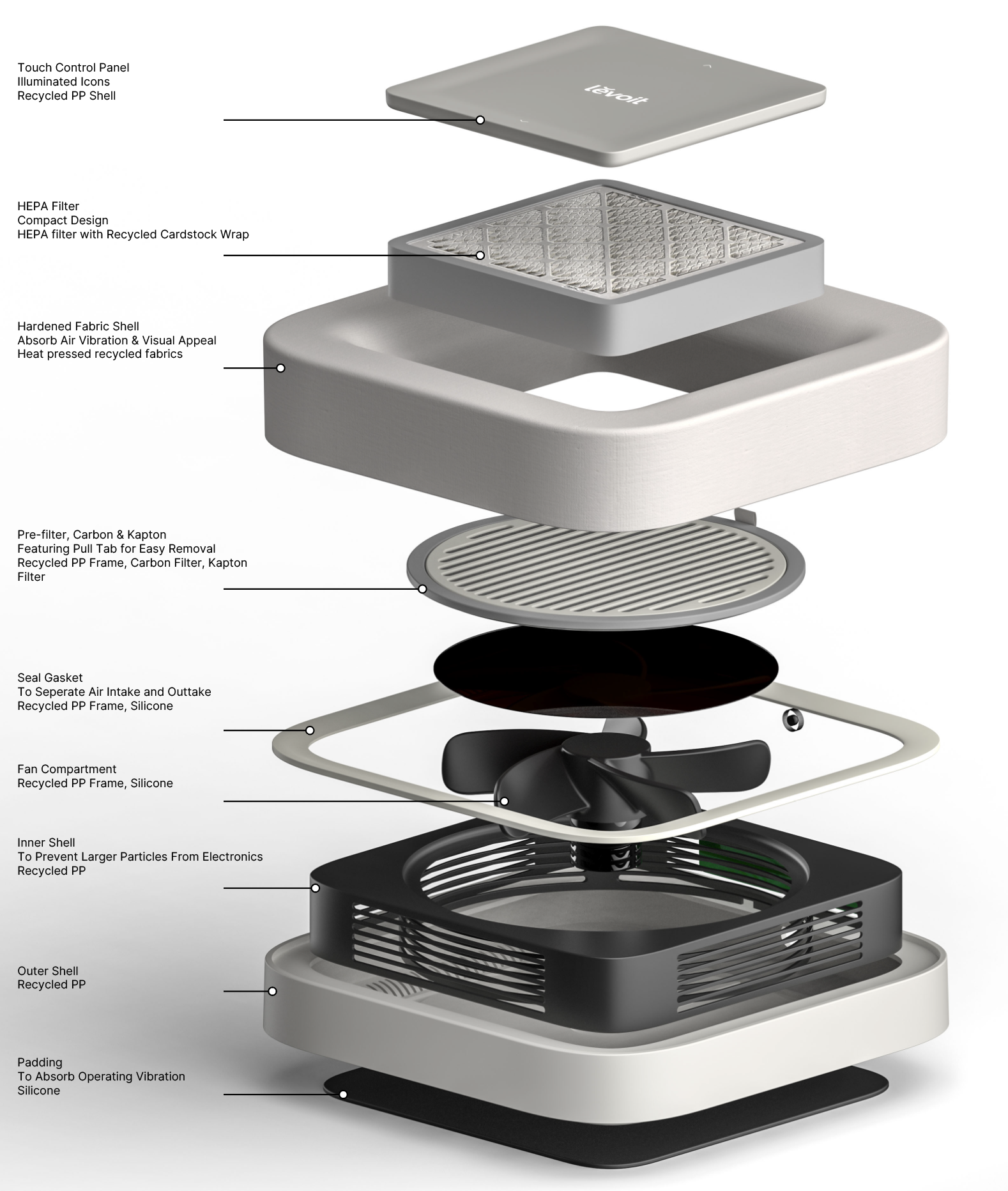 The Levoit Frais marks a shift towards sustainable air purification. We analyzed an existing product's environmental footprint and developed a concept that significantly improves upon it, establishing a new benchmark for eco-friendly design.