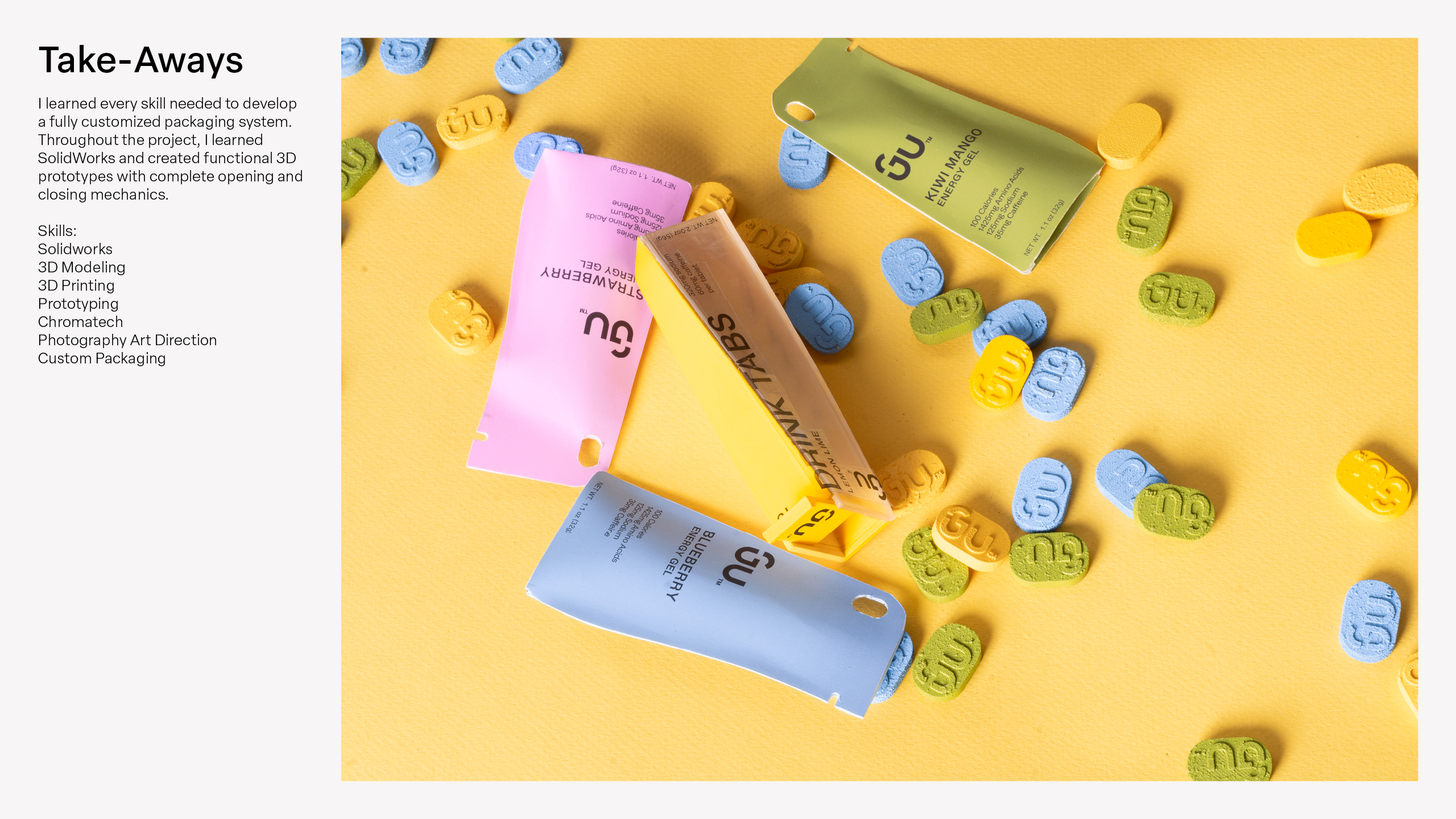 Through this course I have continued to develop my branding system development and research to validate the urgency for a rebrand. I also learned SolidWorks and completely customized all aspects of the project. Prototyping, production, and 3D printing are some of the biggest challenges of the project.
