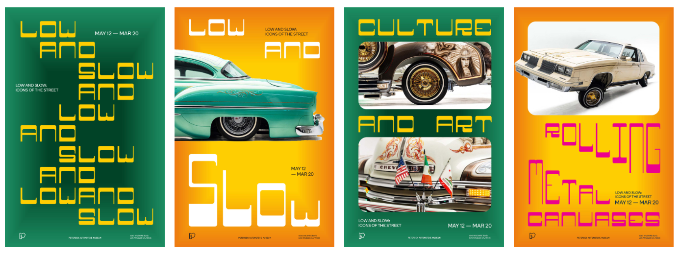 The posters combines bold typography with dynamic imagery, highlighting the close-up details of the cars to emphasize their artistic elements. The goal was to make the static display feel alive, conveying the energy and individuality of each lowrider, even when motion isn’t physically present.