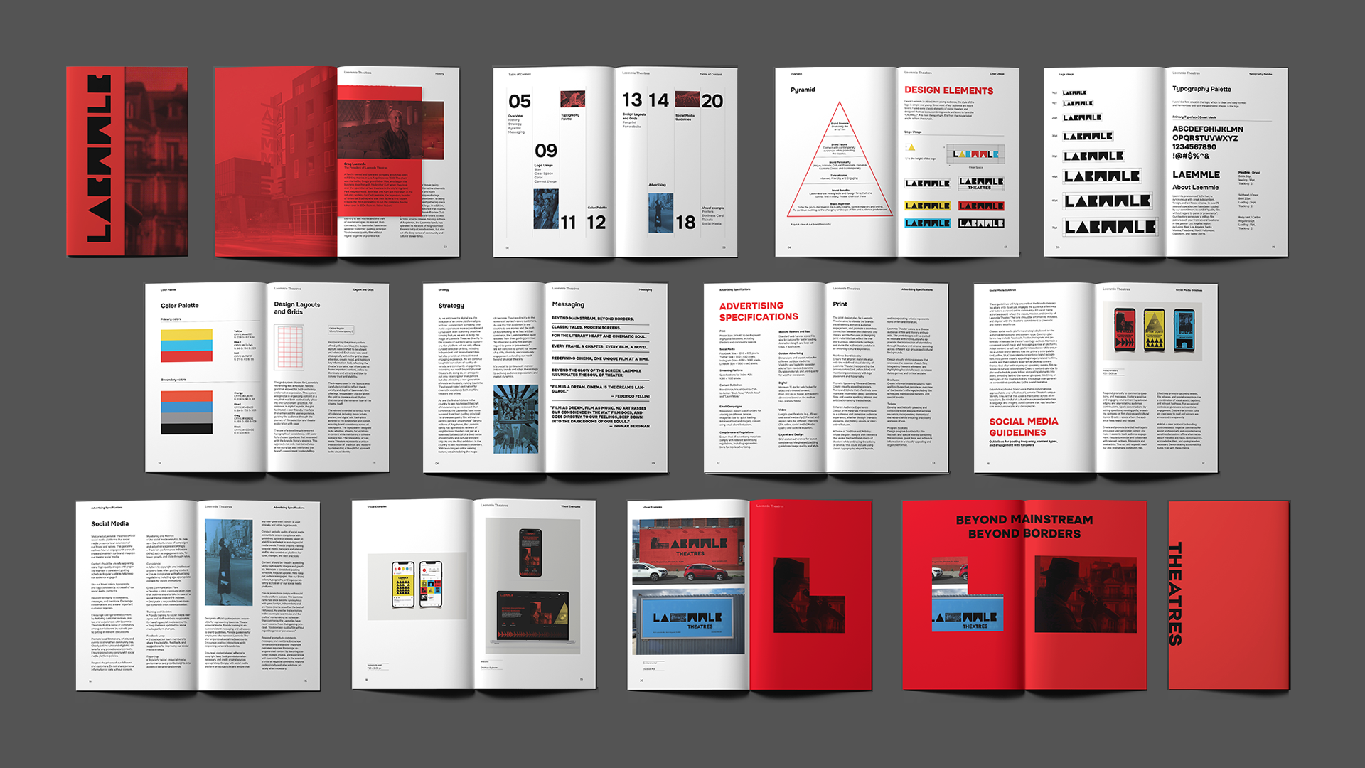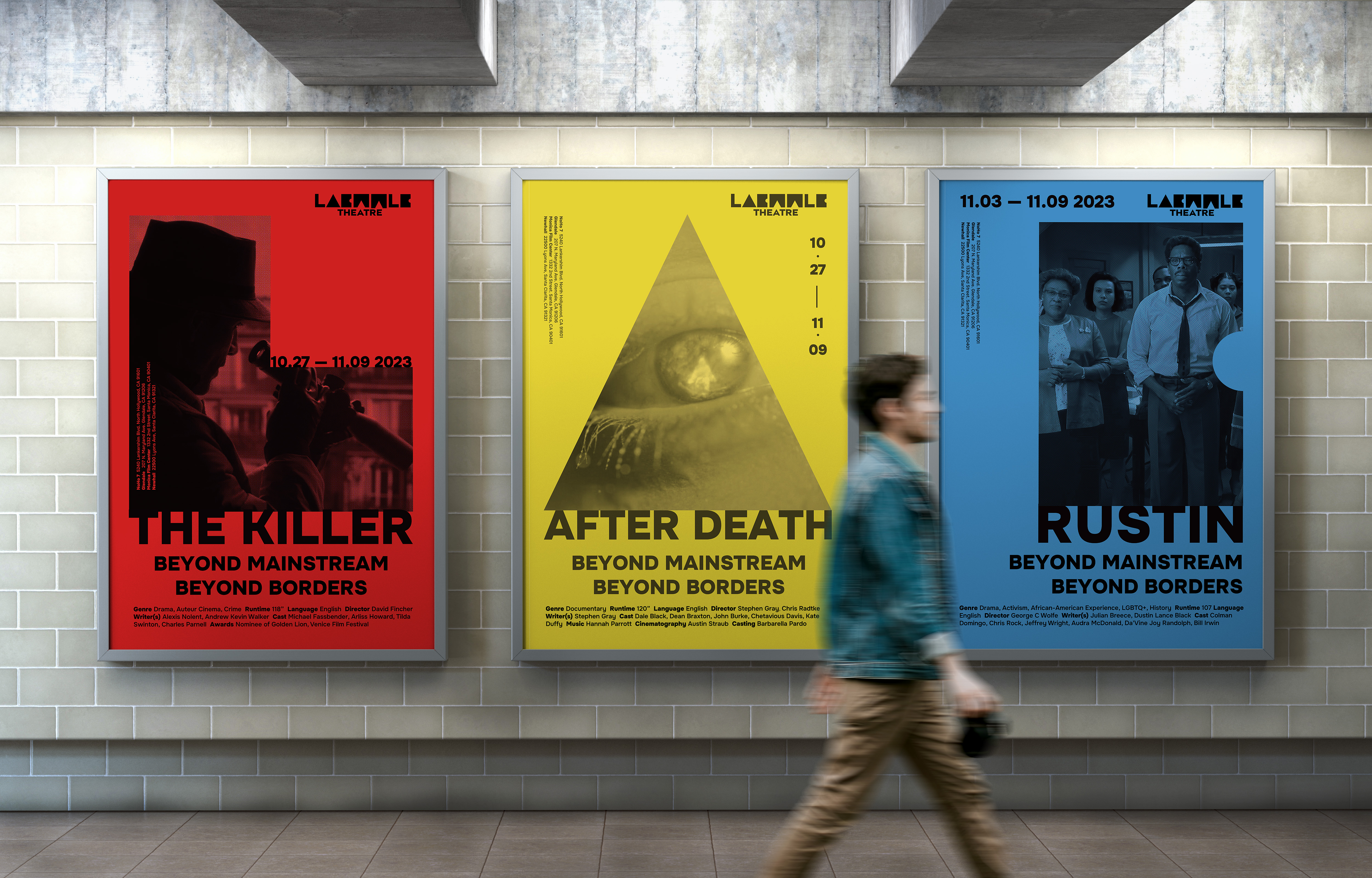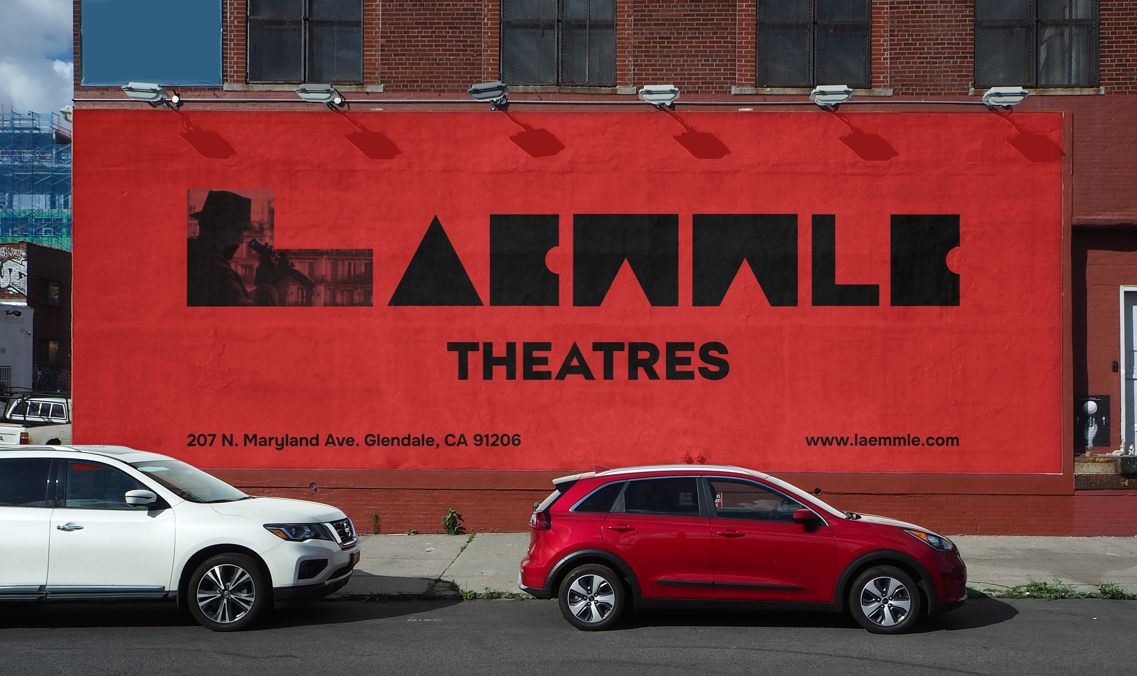 Within the marketing campaign of billboards and posters, letters are stretched to emphasize the brand's flexibility and creativity, echoing the diverse and unconventional films that Laemmle Theater screens. Embedded movie scenes within the shapes invites the viewer into a scene of a movie being shown at Laemmle.