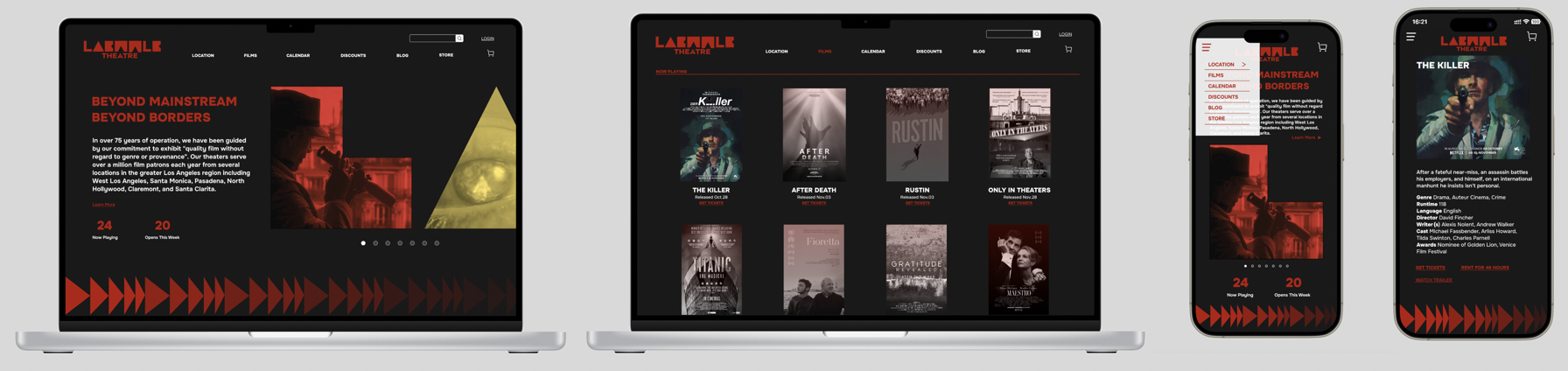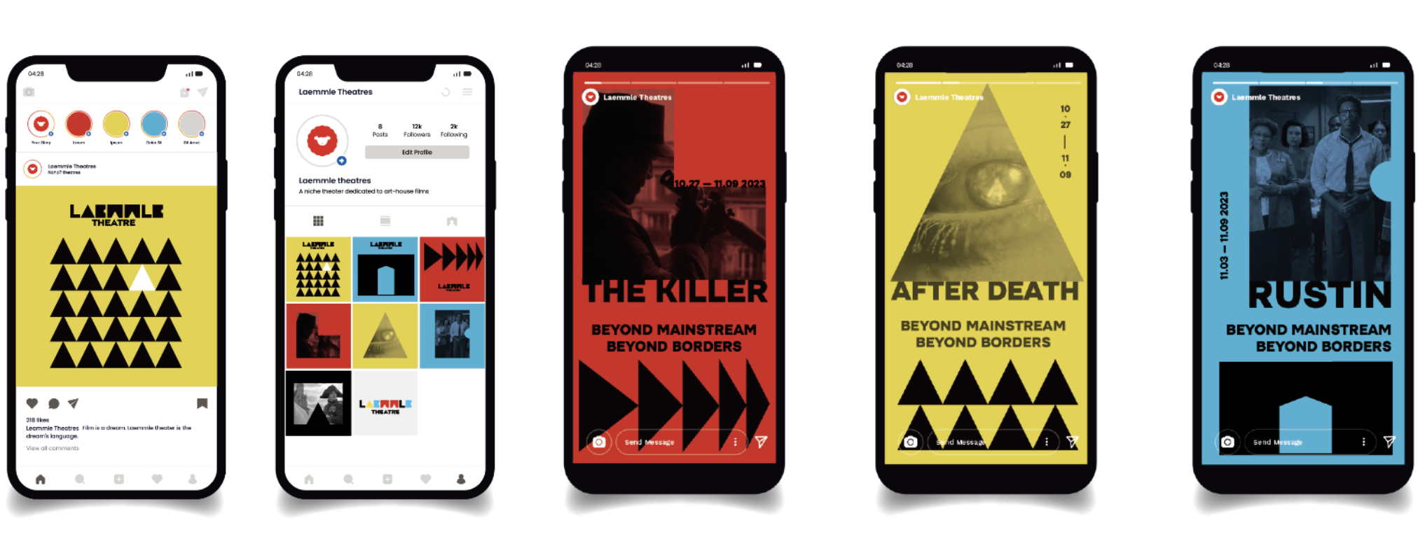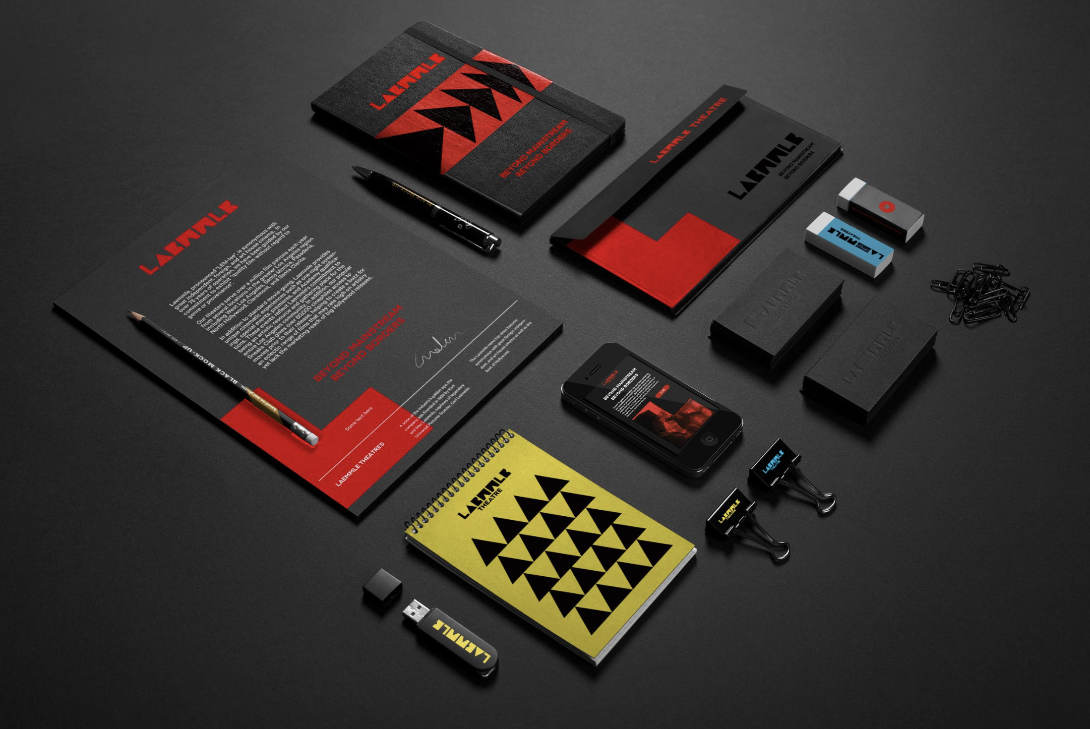 Within the marketing campaign of billboards and posters, letters are stretched to emphasize the brand's flexibility and creativity, echoing the diverse and unconventional films that Laemmle Theater screens. Embedded movie scenes within the shapes invites the viewer into a scene of a movie being shown at Laemmle.