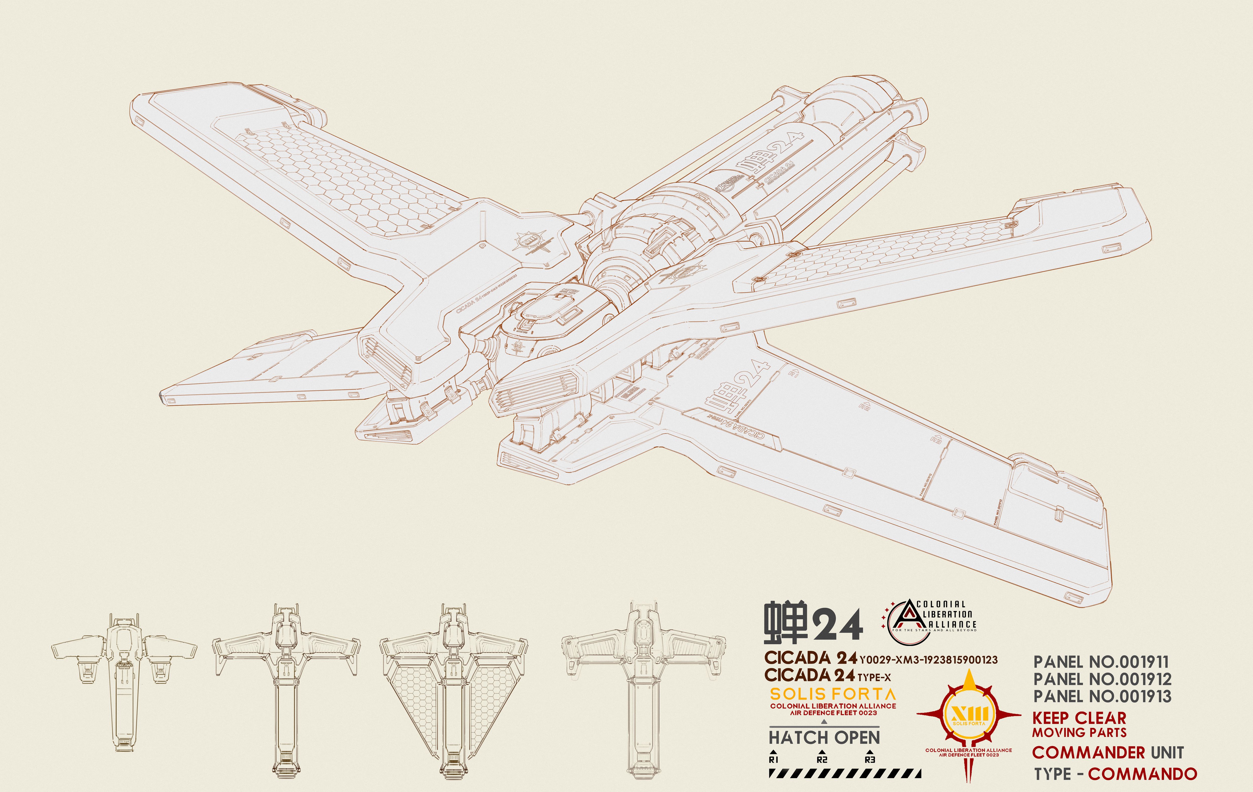 Part of my world building project "Silent Night" / Faction: Colonial Liberation Army / Please see artstation link for detailed lore. Not influenced by the X-wing, surprise!