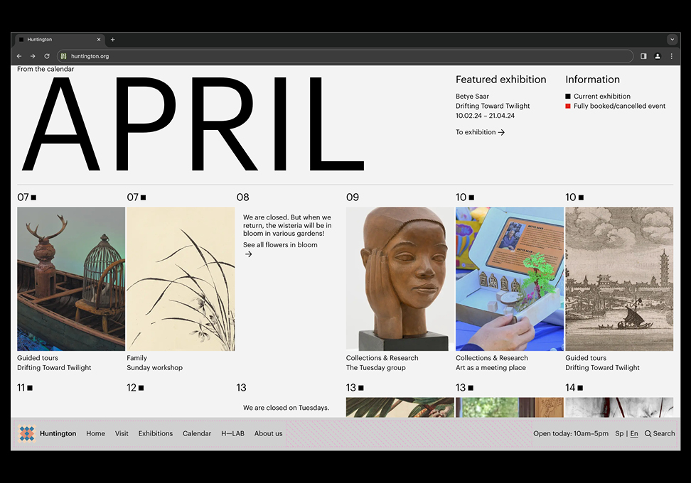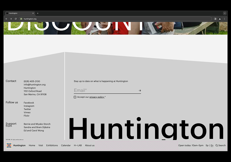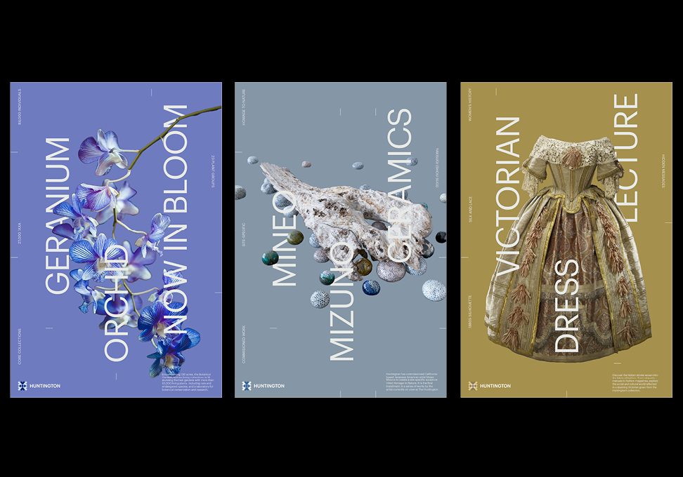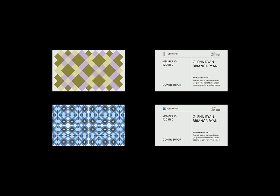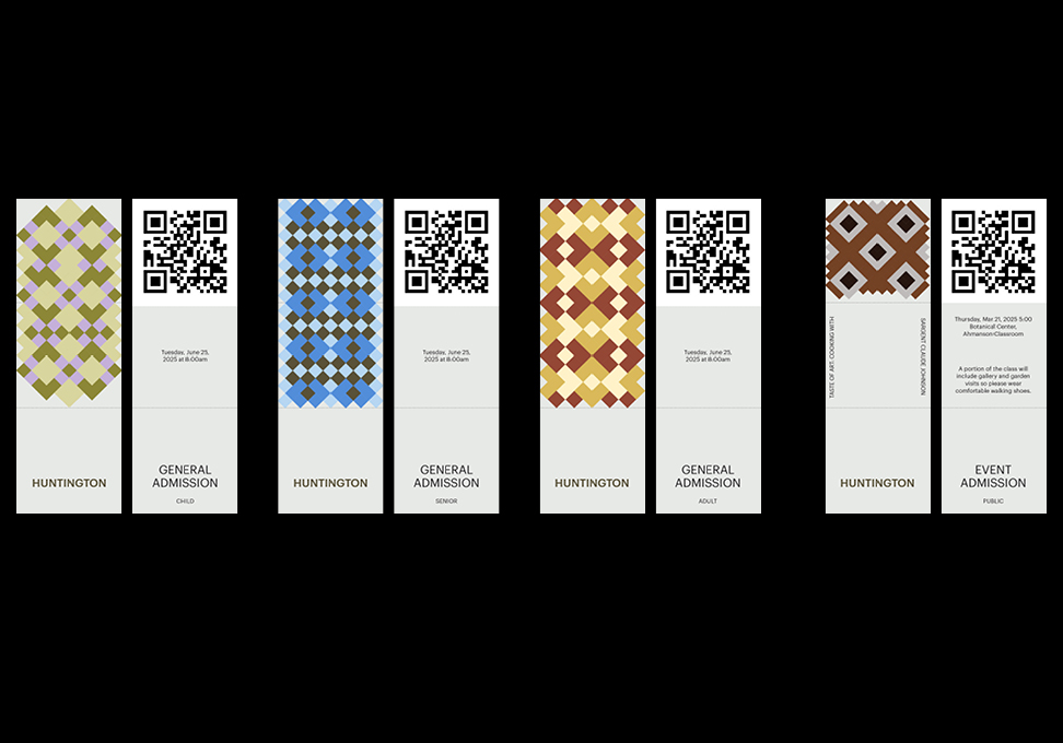 Huntington is a multi-faceted cultural institution with a long history, offering a library and a diverse set of art galleries and botanical gardens. This identity refresh seeks to provide a flexible system by which a distinct pattern-based visual language can describe the brand in place of a static logo mark. In doing so, the system can speak to not only the diverse offerings of the intuition but its rich and vast collection, spanning many cultures, geographies, and time periods.