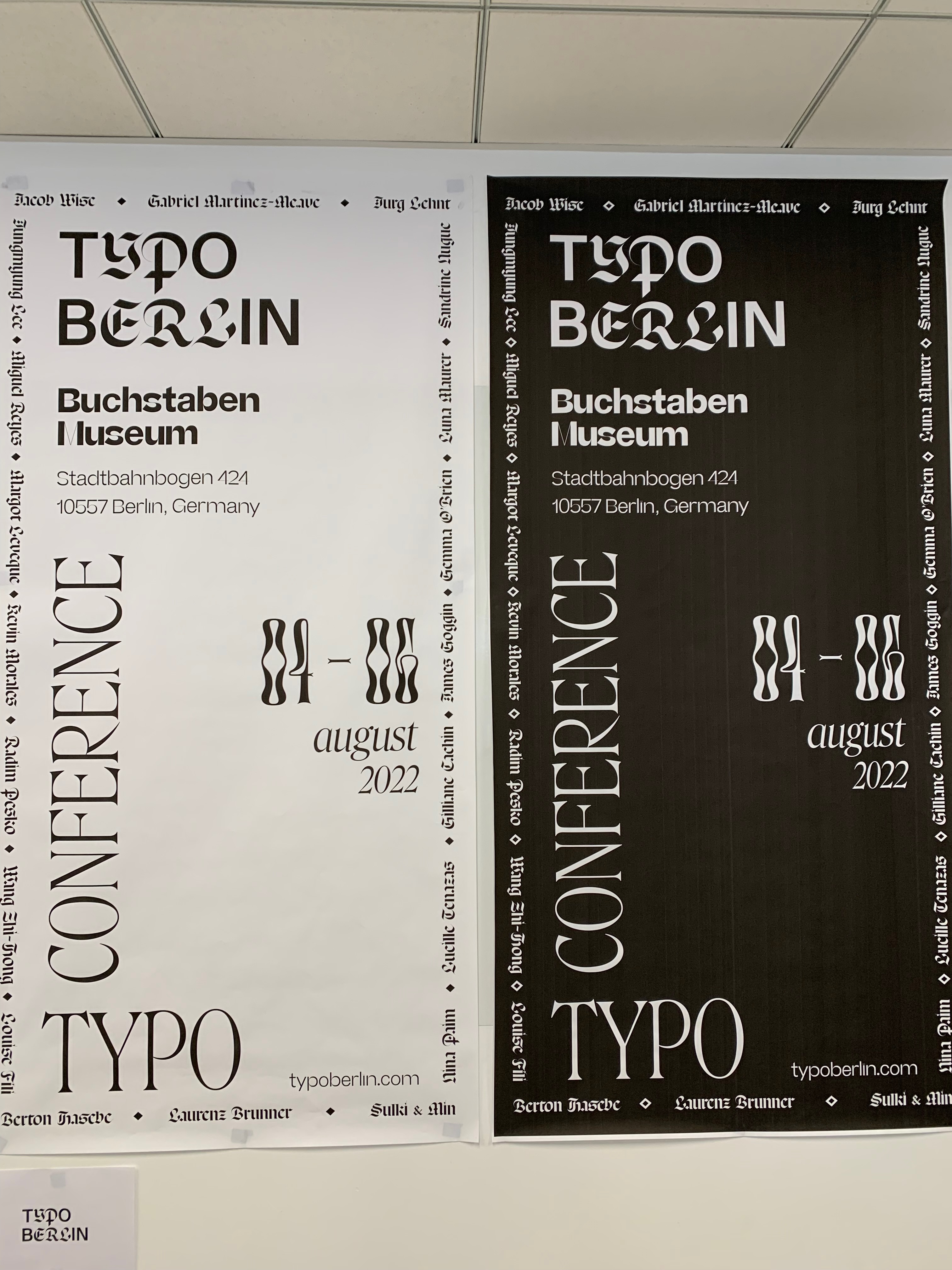 Typo Berlin is a fictional typography conference taking place in Berlin featuring star typographers. The assignment was to express its identity only through typography (and supporting elements like rules, blocks, and emphatic punctuation). There were several approaches that were required (font combination, shape-based letterforms) and others that we were meant to come up with on our own. Then we carry the style of the logo throughout the final piece.