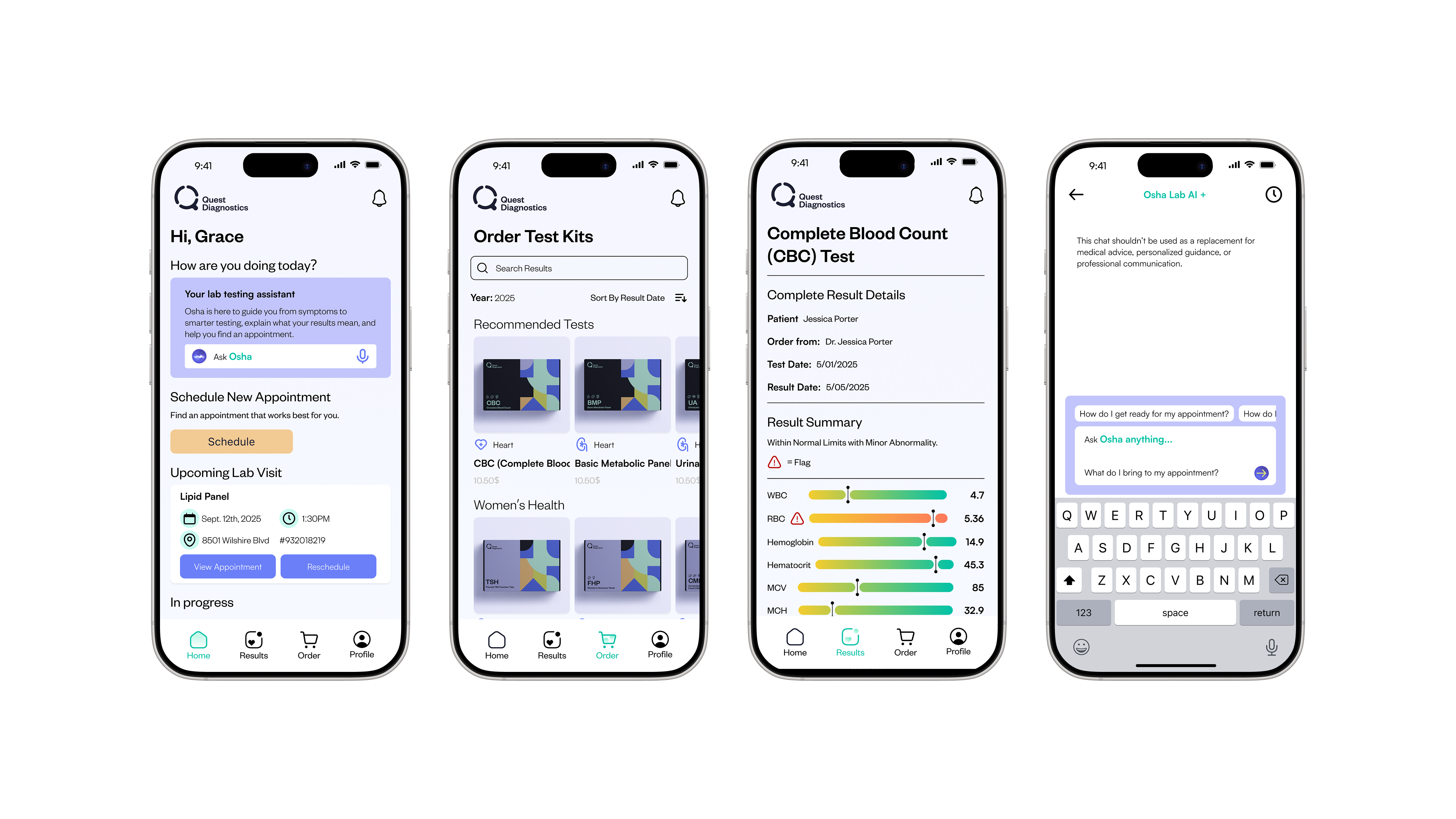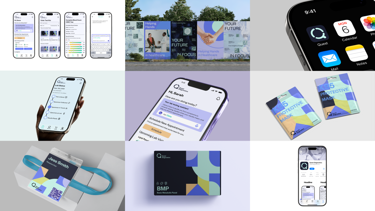 A user centered rebrand for Quest Diagnostics that transforms the complex lab testing experience into something clear and approachable. Maintaining credibility and understanding for both patients and healthcare providers.