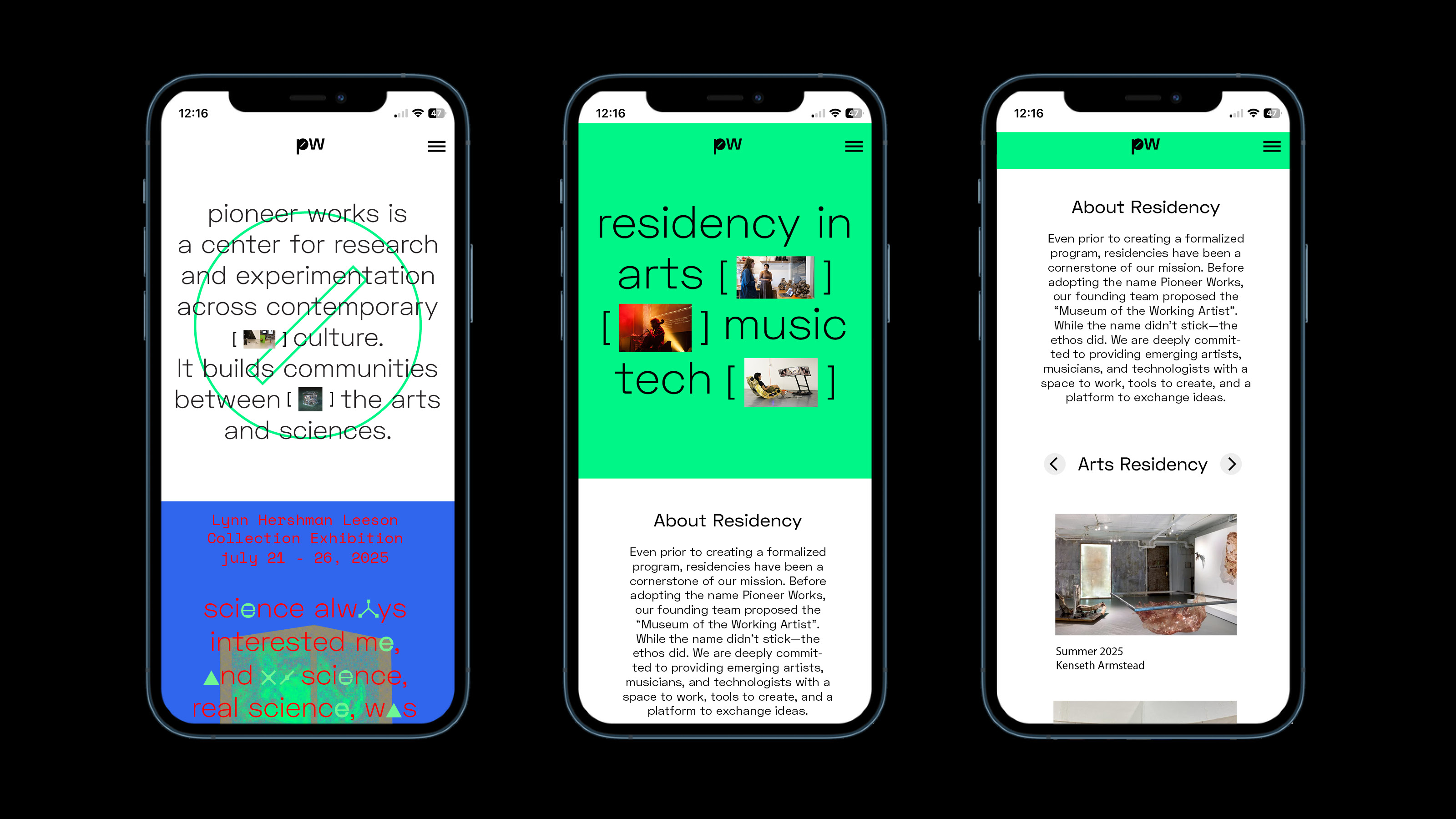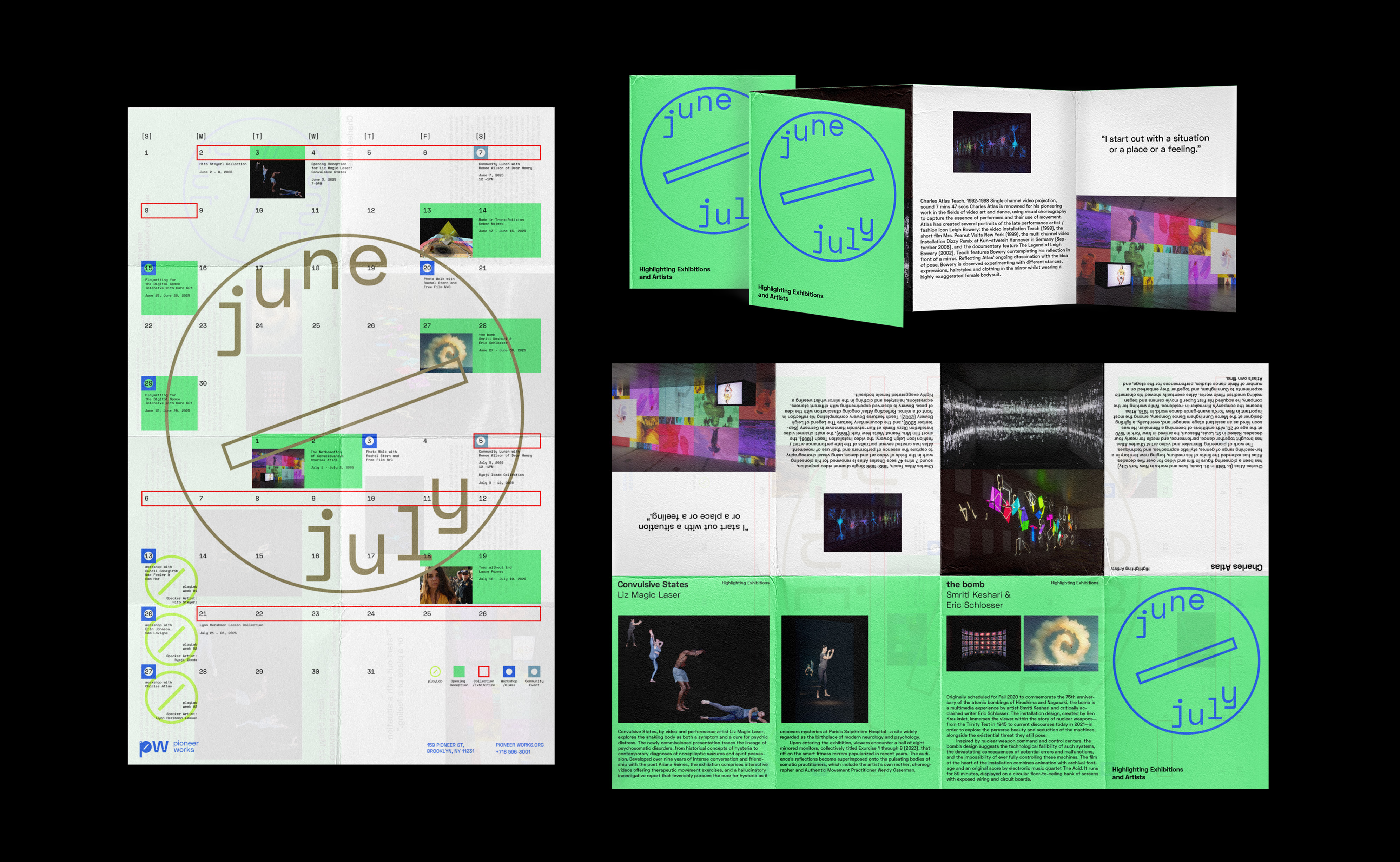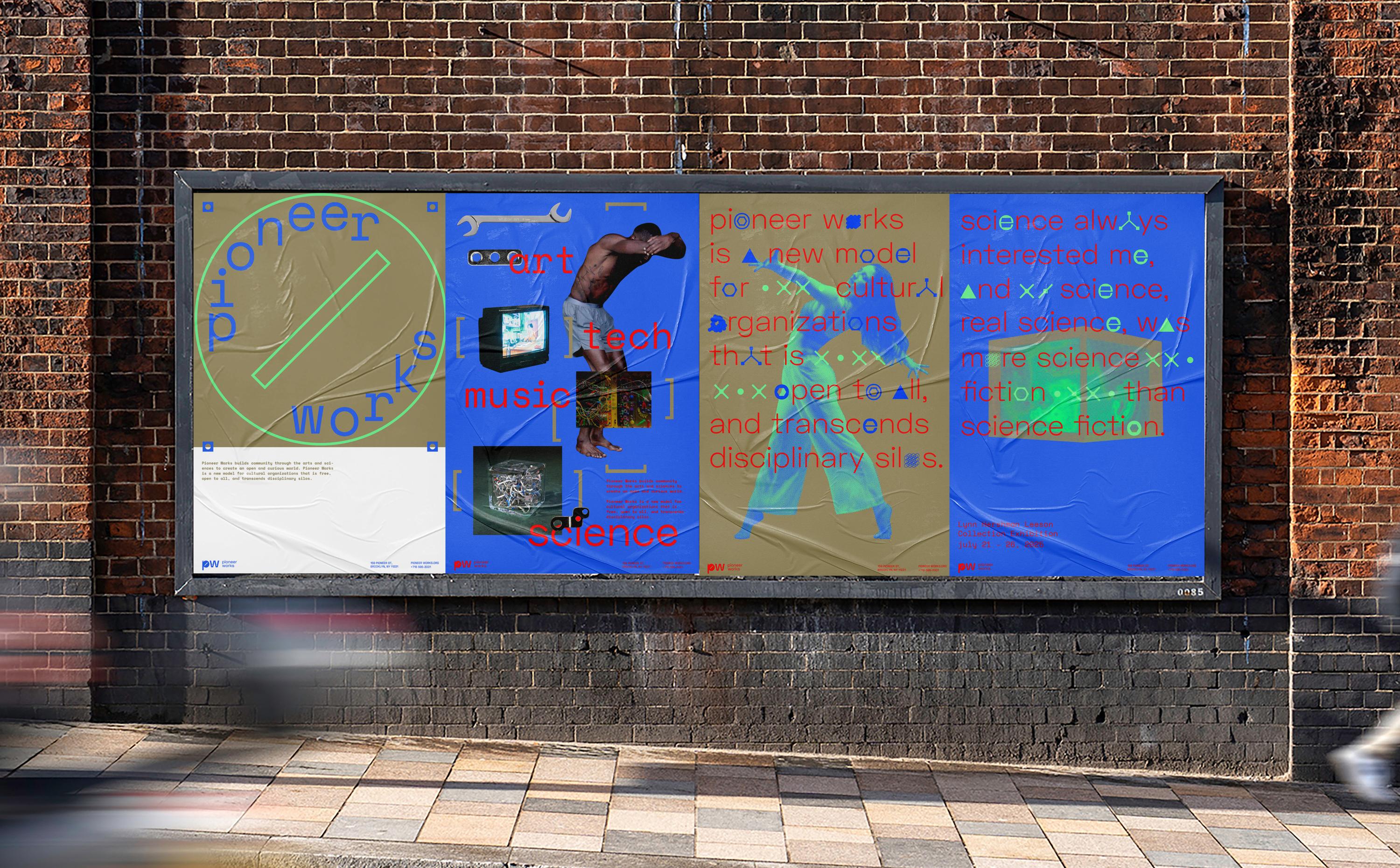 This project taught me how to gather and analyze content, which enhanced my research skills. Additionally, I developed how to customize type and expand identity systems and graphic elements from the logo. The screw and bolt graphic was inspired by the history of the Pioneer Works (PW) building. The logo expanded to serve as a versatile graphic system, and brand typography was born based on the icons representing the letters” a, e, o.”