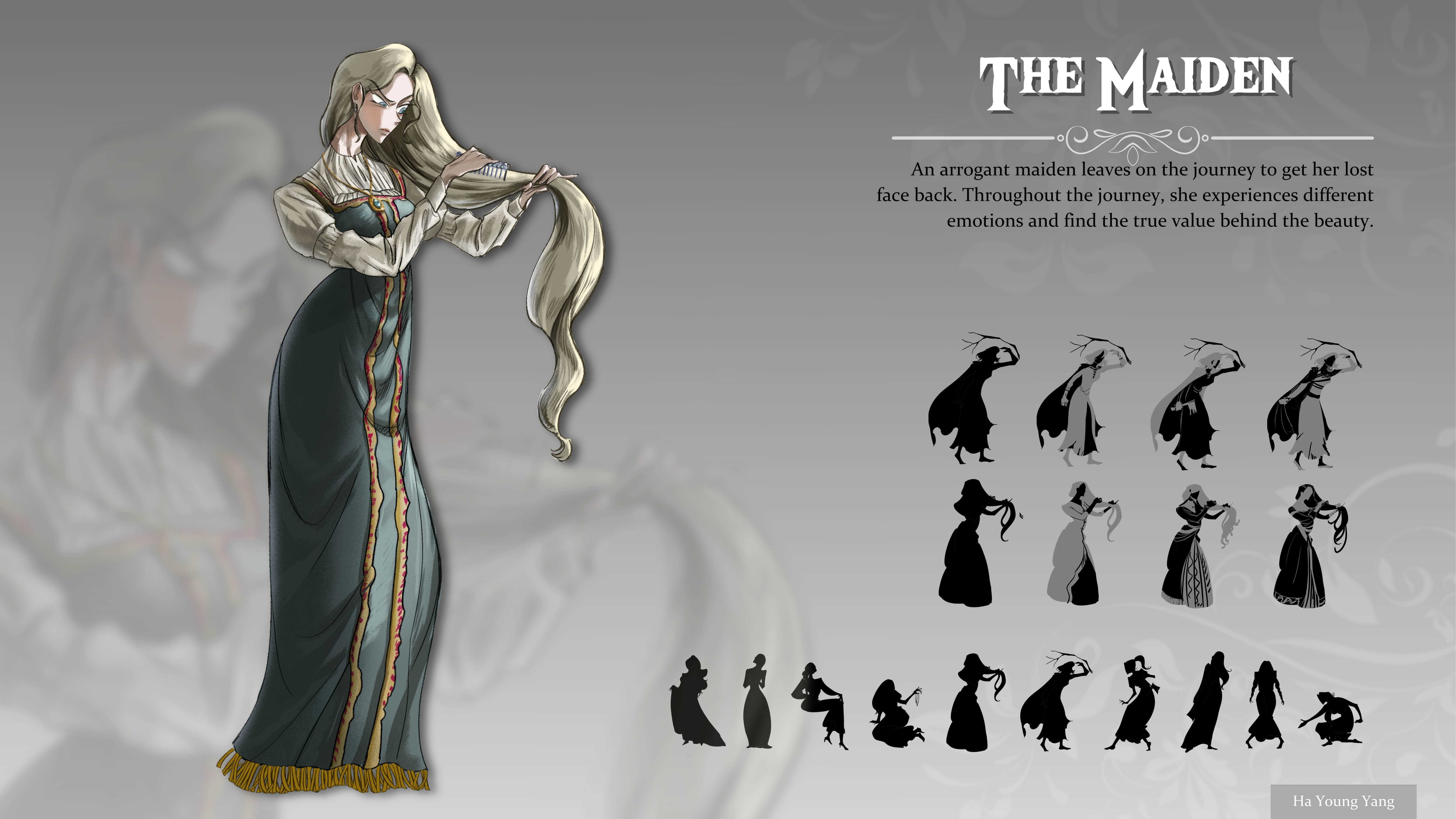 The Faceless Maiden is a project that is done with my team, Saberfang. Each of us took part in building the world, research, one character, one prop and one scene. "A beautiful but vain maiden has her face stolen by a demon. Together with a disfigured farm boy she once scorned, she must embark on a journey of vengeance and self-discovery to reclaim what she lost".