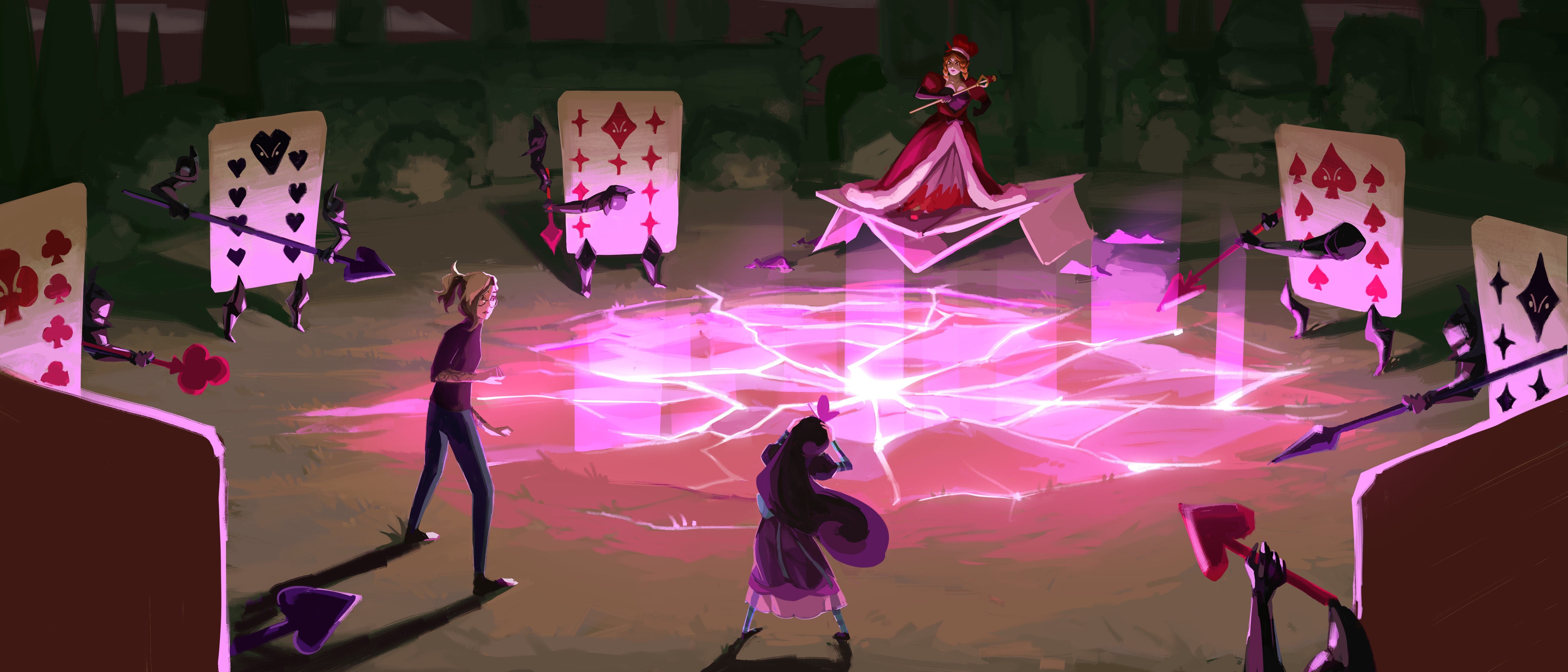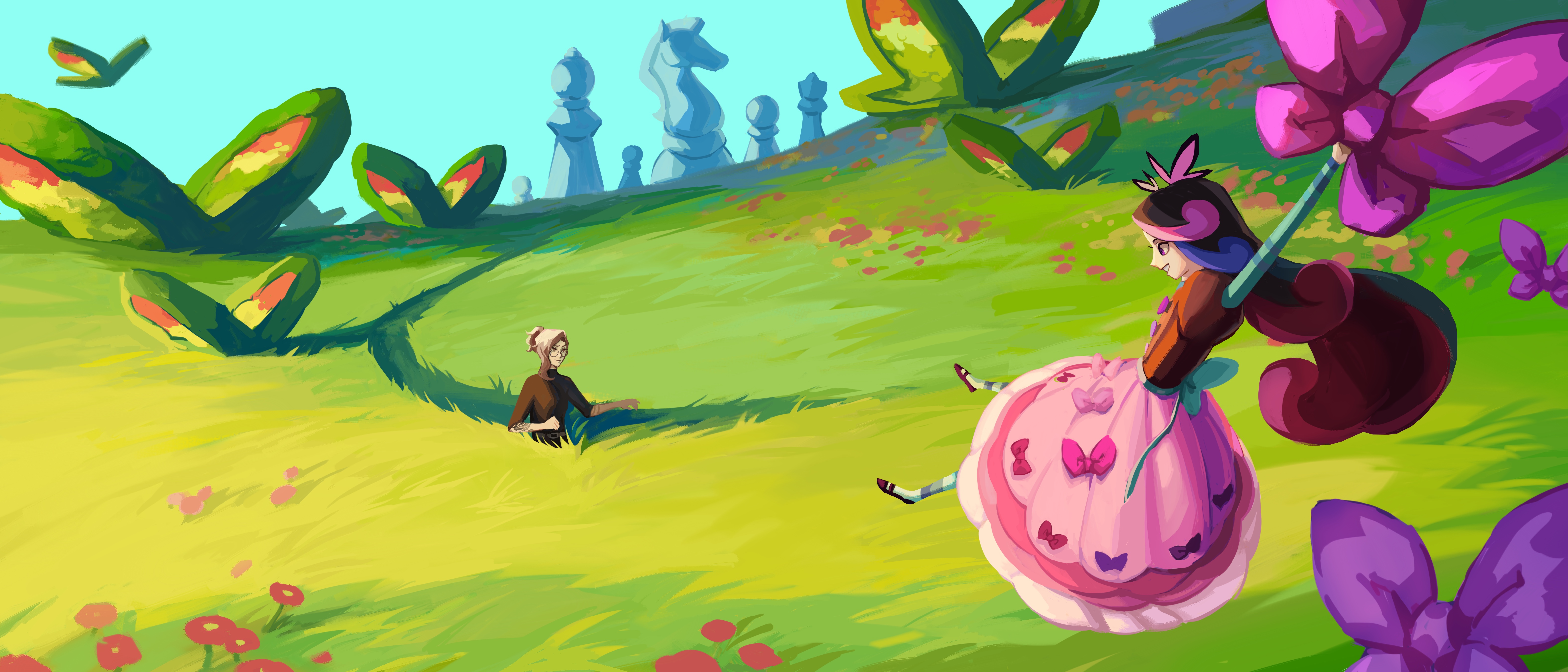 Alex, a tired college student doing part time at the library, comes across a peculiar book and upon touching it, is sucked into its world. She finds herself in a world that seems to be based off of Alice in Wonderland, meeting Alice shortly after. They both explore the wonderland as they each try to find their own way back home.