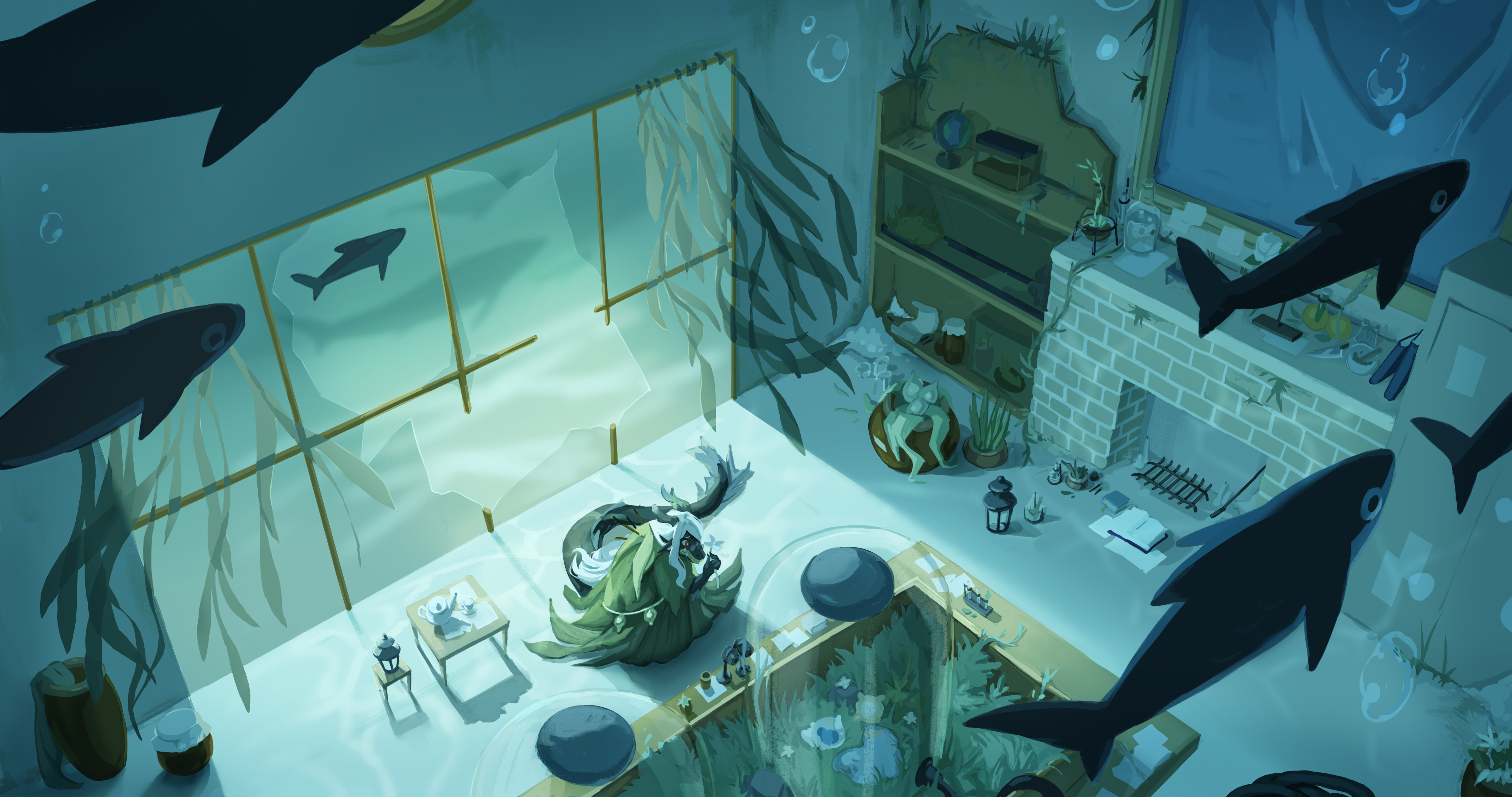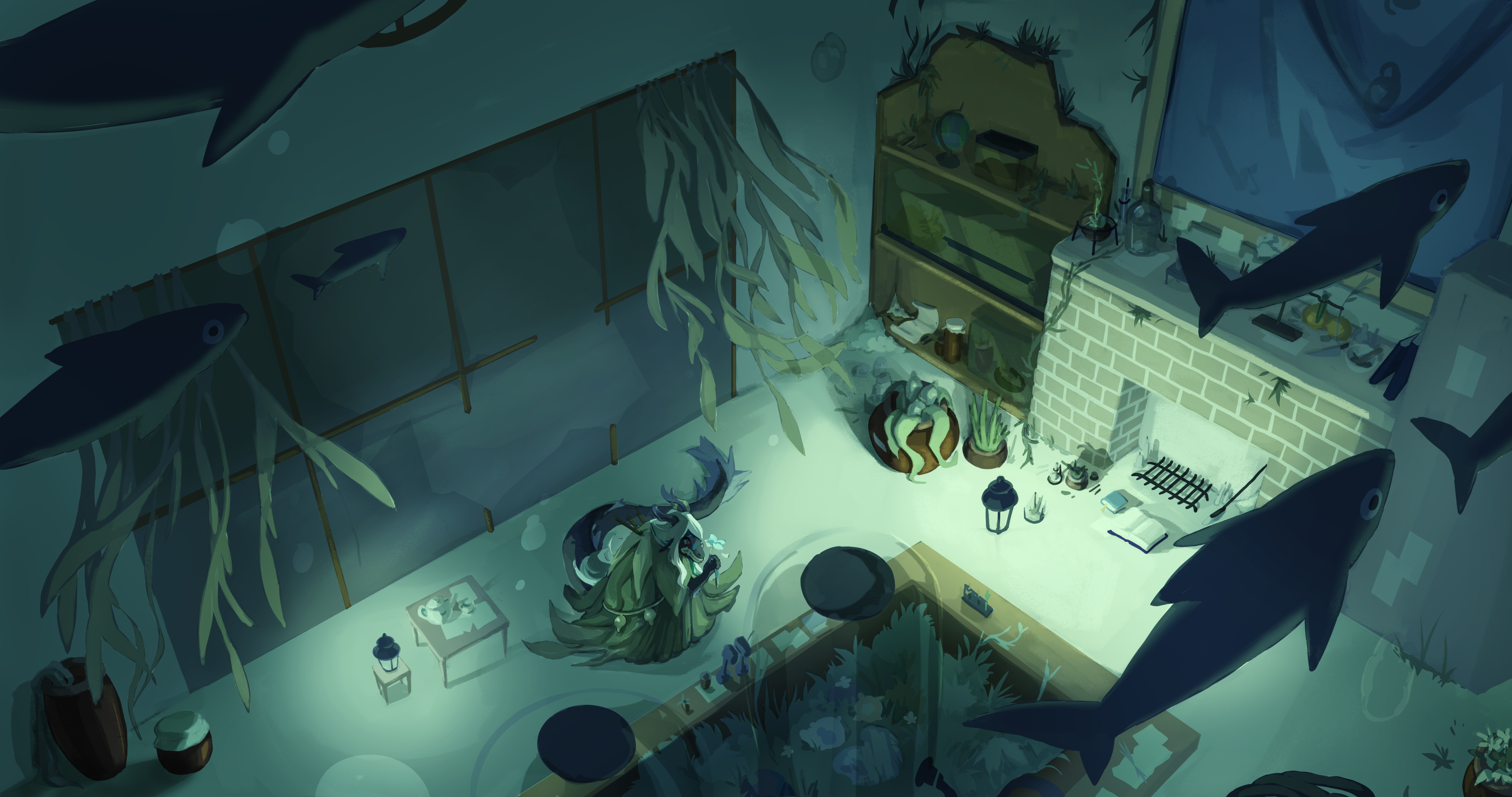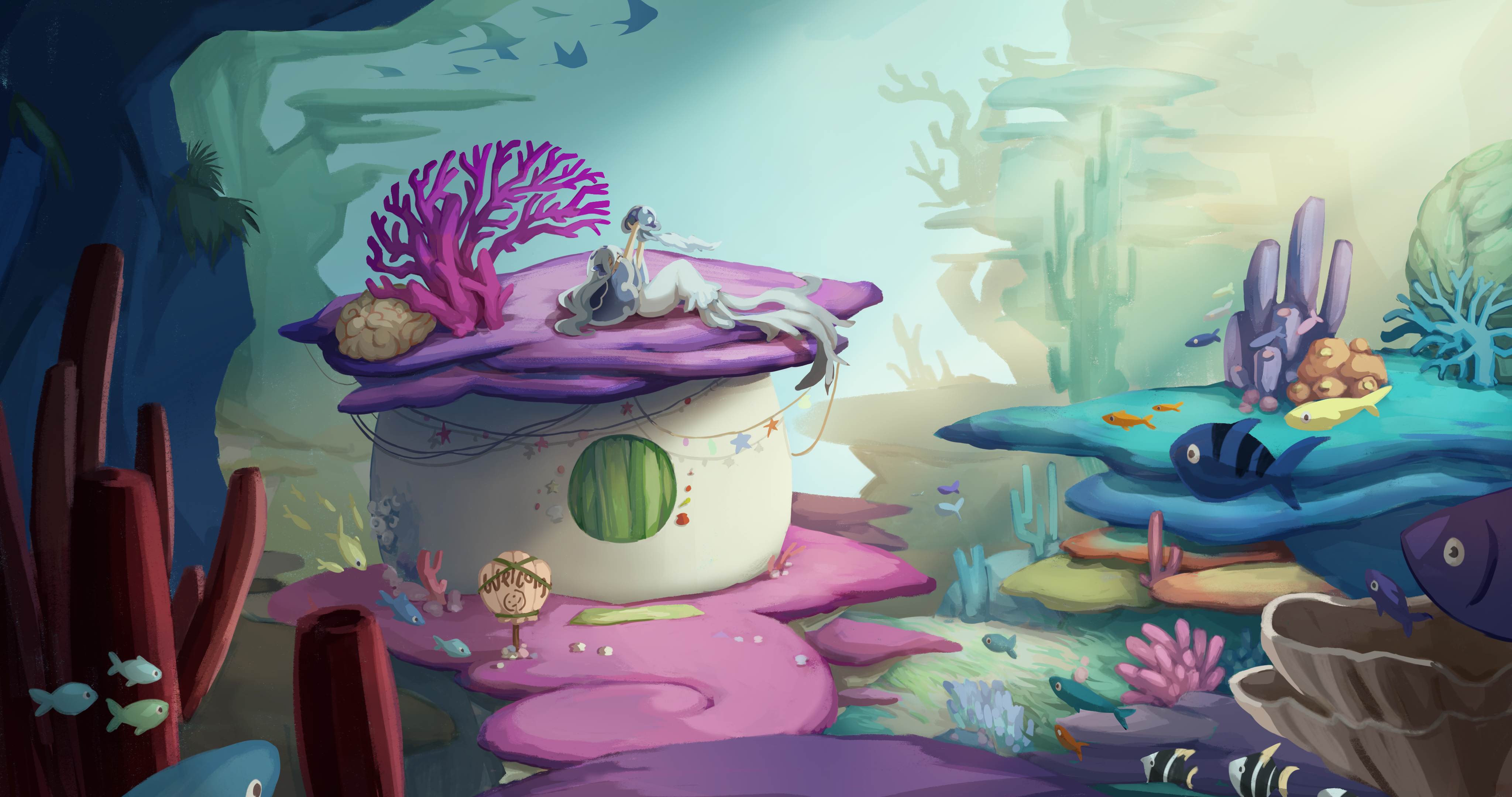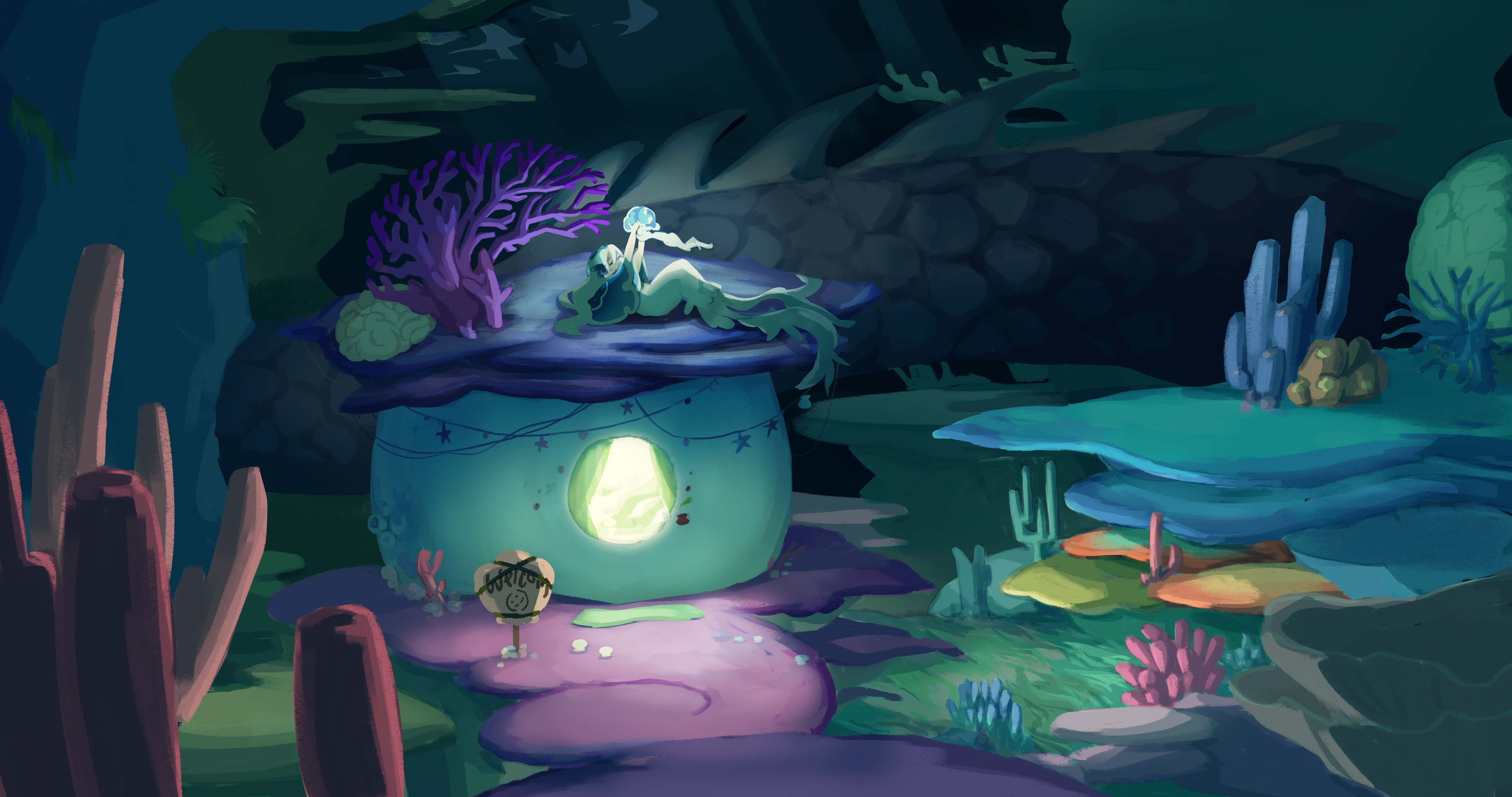 A work in progress project about a cheerful jellyfish that befriends an antisocial dragon. The dragon leaves their home to accompany the jellyfish on her travels, worried for her safety.