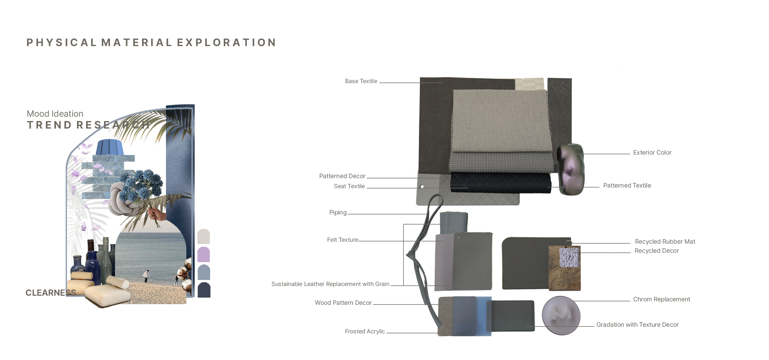 I collaborated with Interior Design intern Chenqi Zhu to develop a concept from scratch, aligning with the interior design process. I explored sustainable materials, researched global trends, and created curated material trays for model building. I also learned to create 3D materials and a virtual library using Blender, enhancing both visual communication and workflow. This project strengthened my skills in collaboration, storytelling, and material exploration.