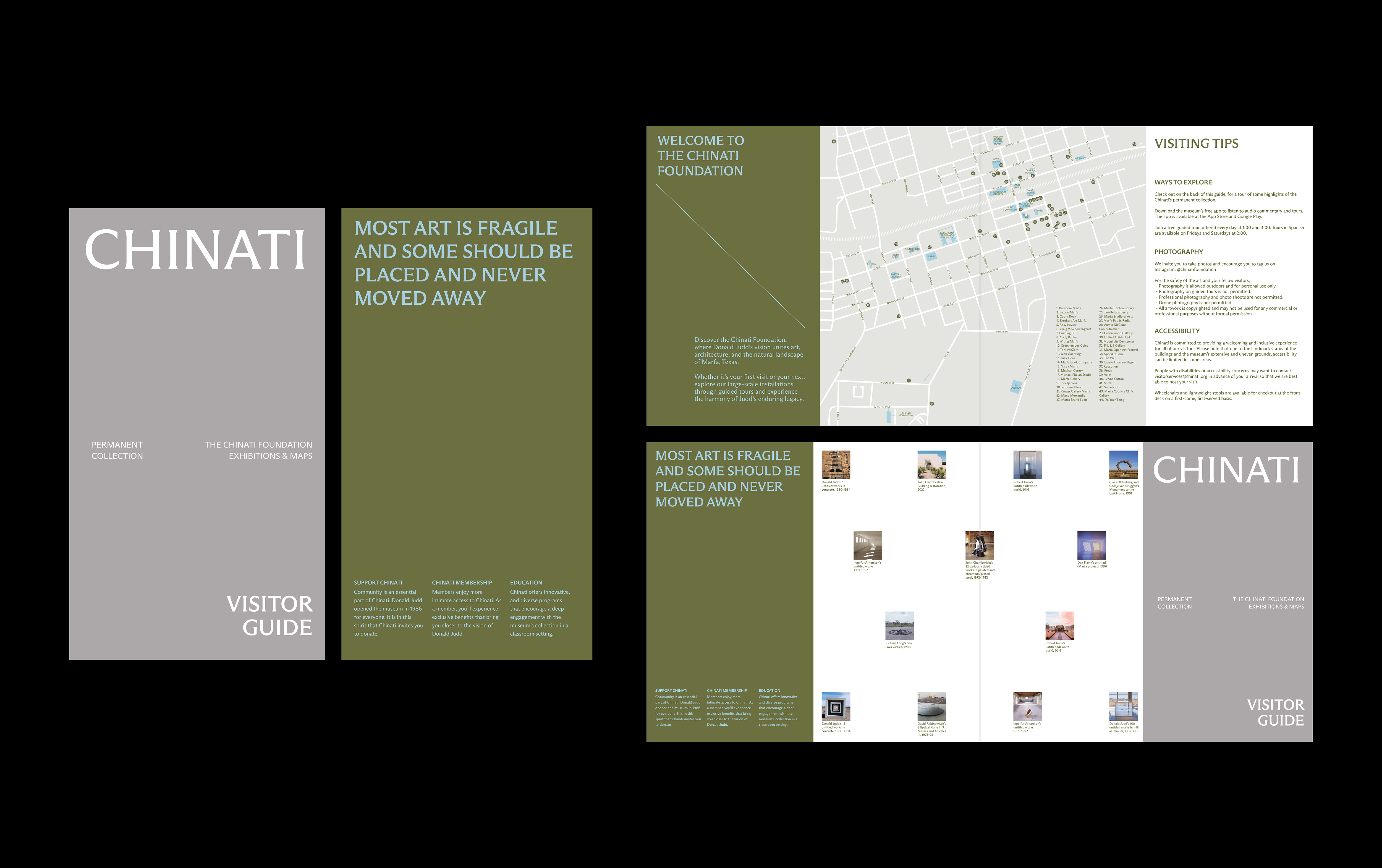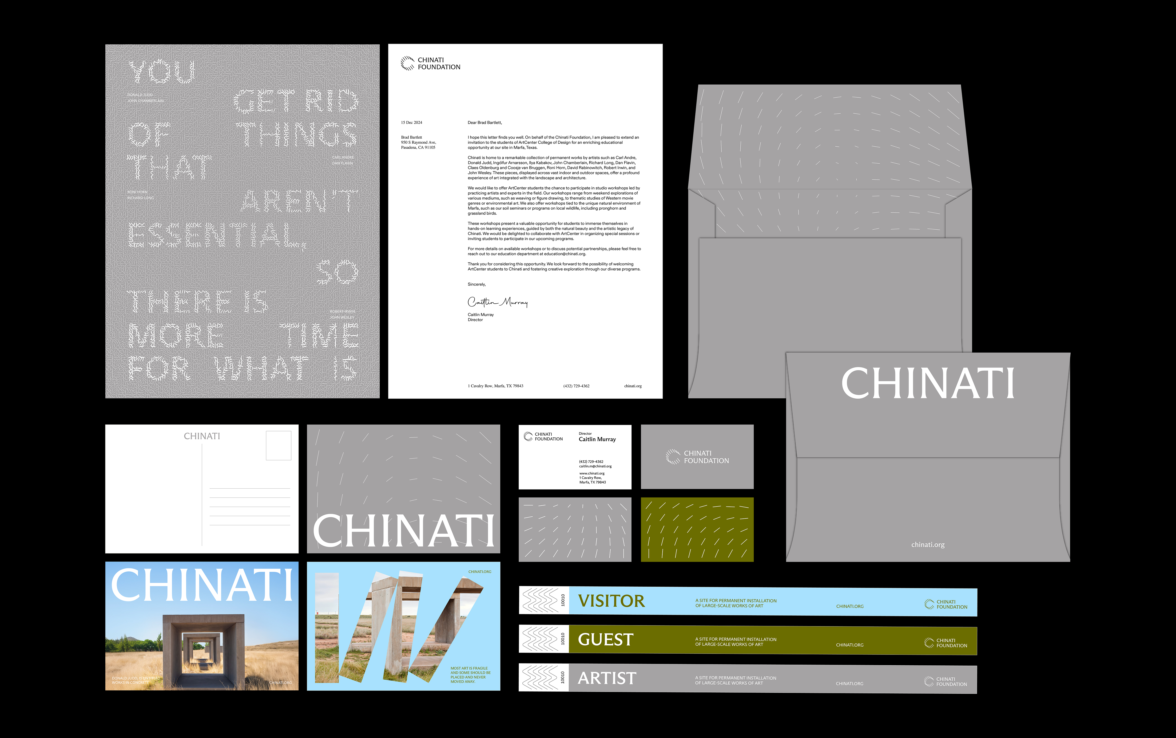 I designed a visual identity system for The Chinati Foundation, a contemporary museum in Marfa, Texas, founded by Donald Judd. Inspired by Judd's minimalist approach and the museum's philosophy of harmonizing art, nature, and human interaction, I focused on the invisible force of wind and how it shapes the experience of the artworks.