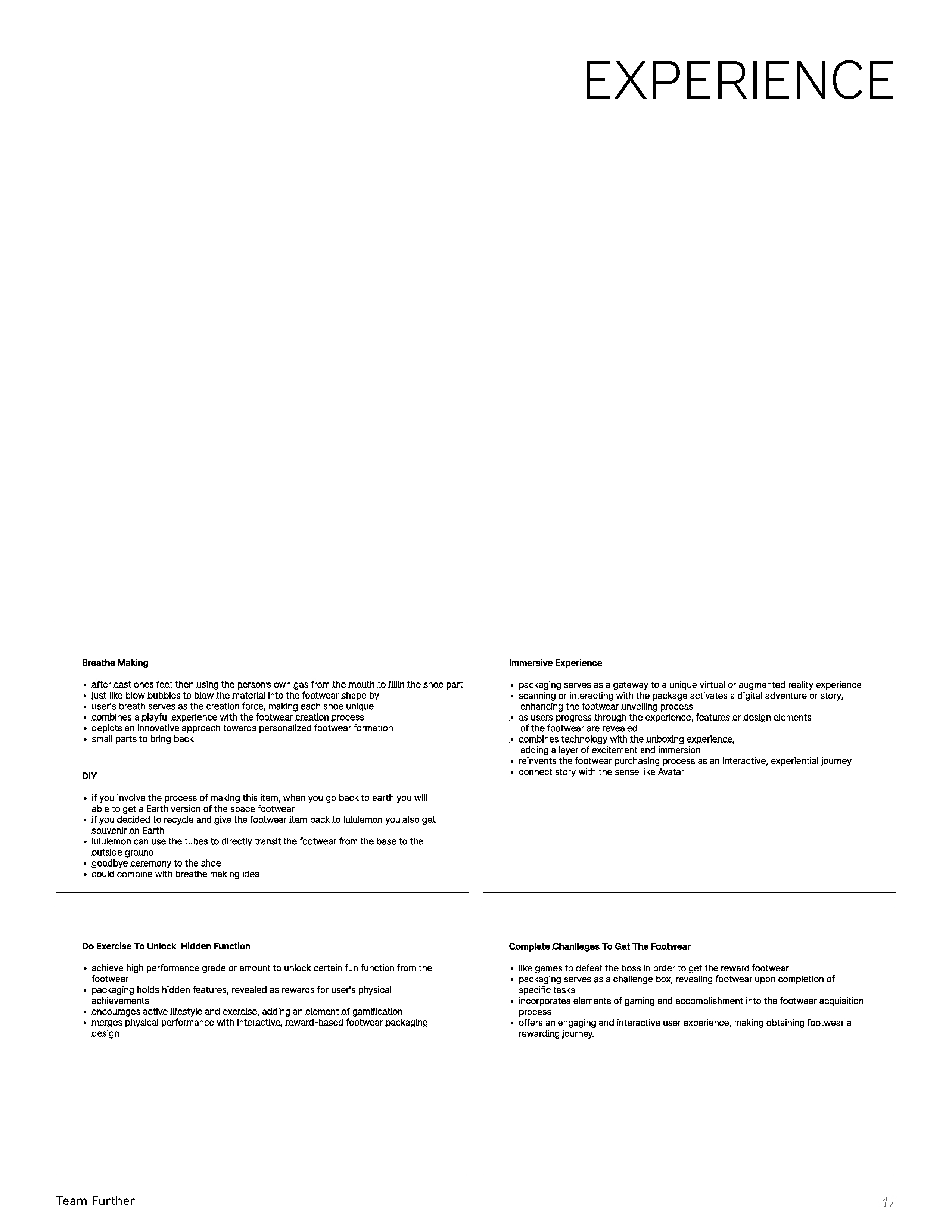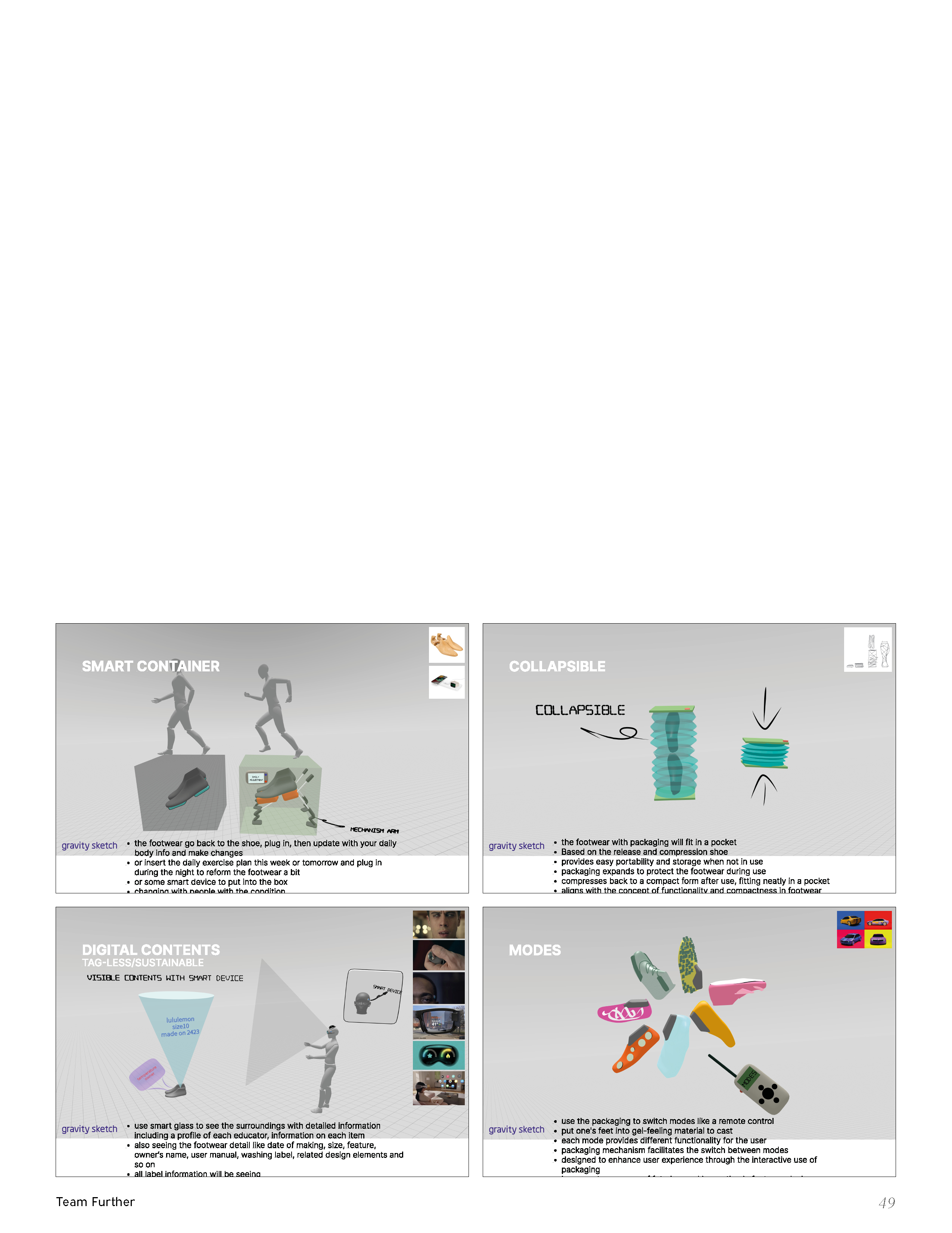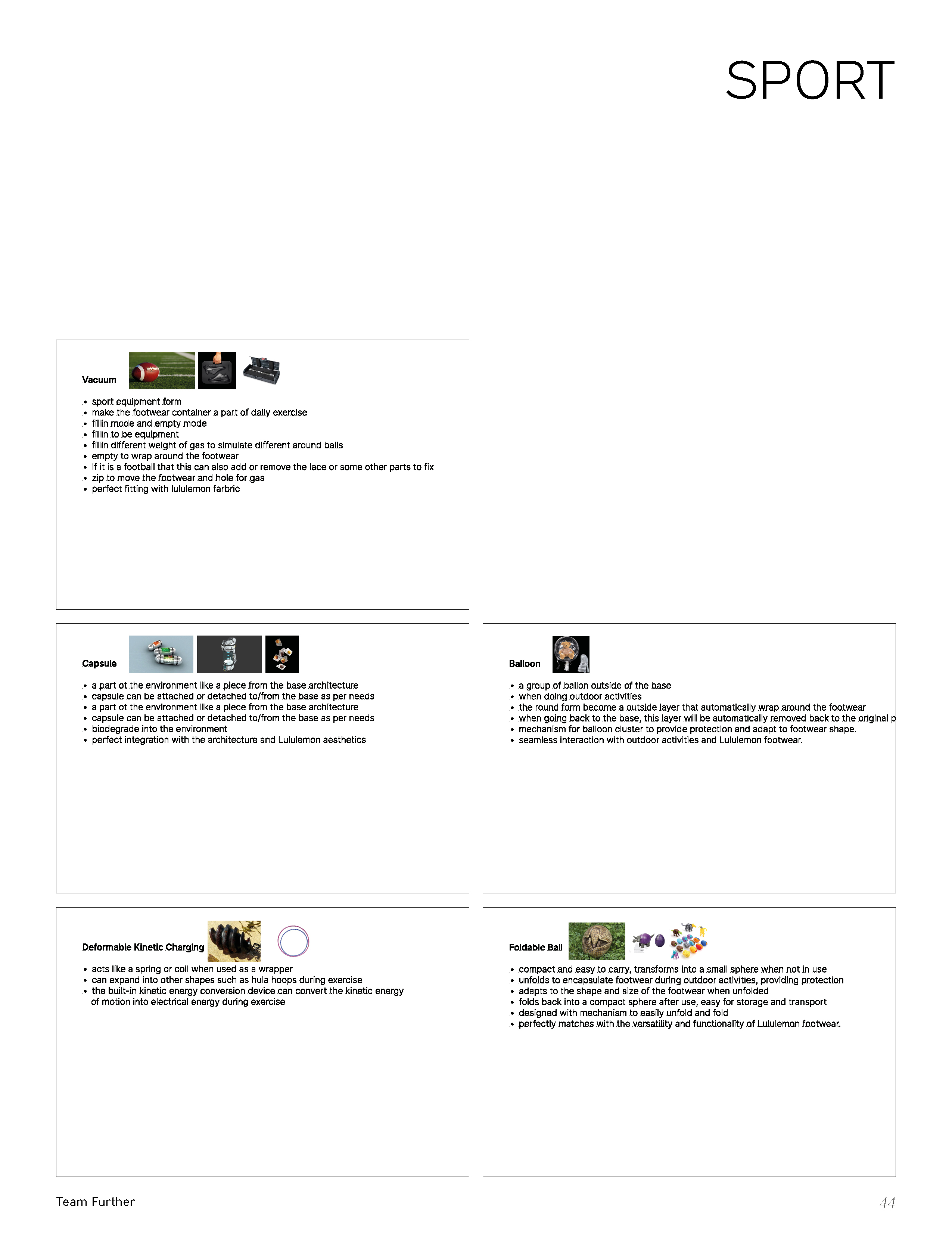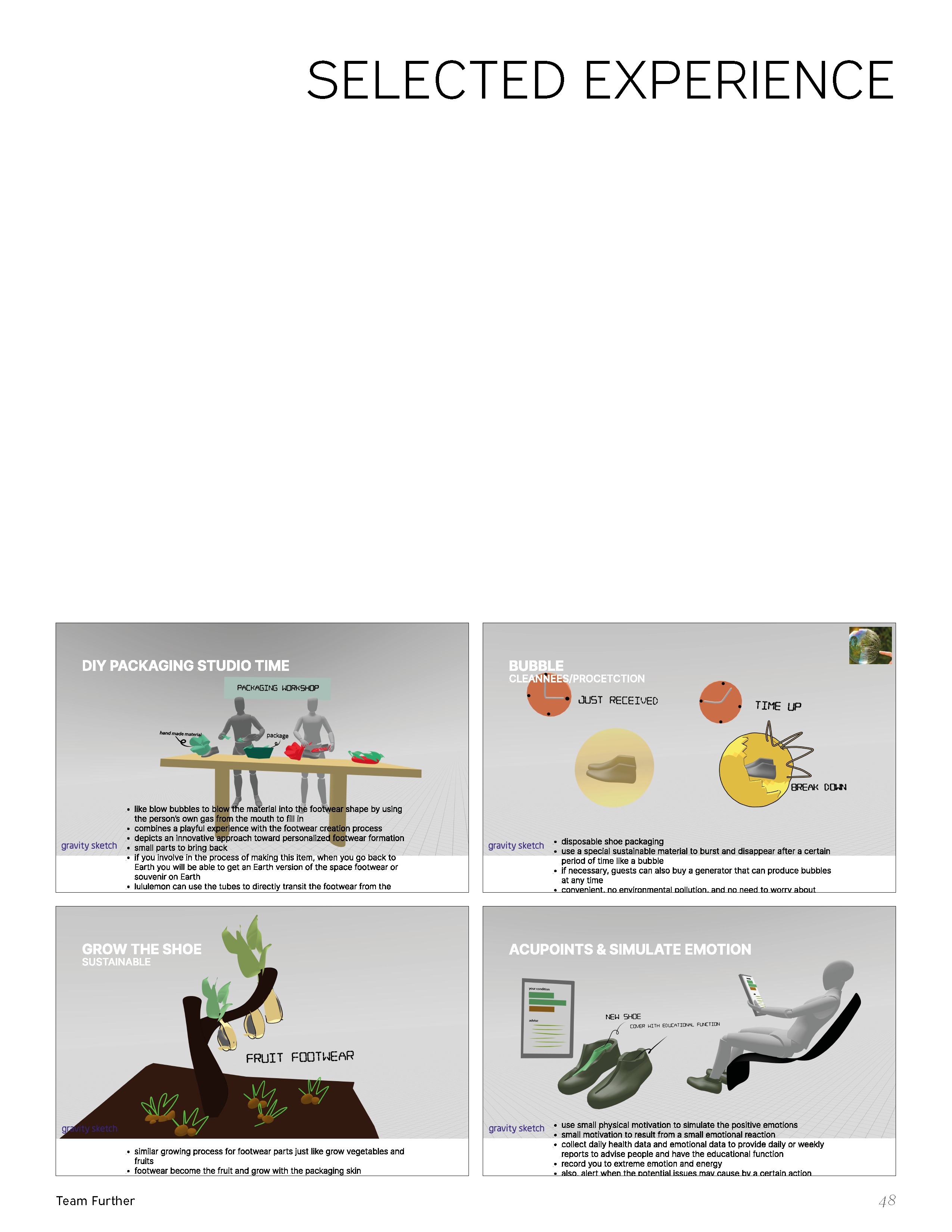 I mainly focus on research, concept building, packaging design, branding, user experience, and printed deliverables with my team for lululemon and Gravity Sketch.
