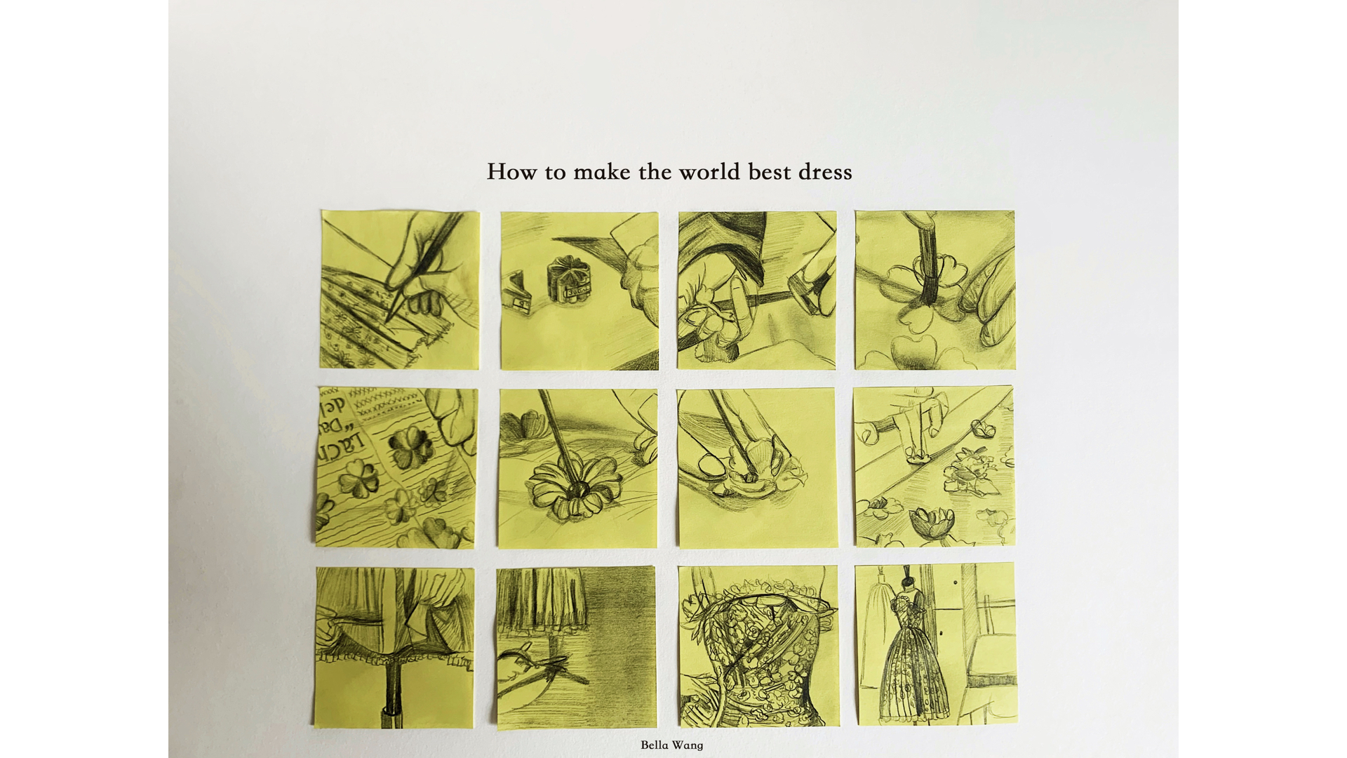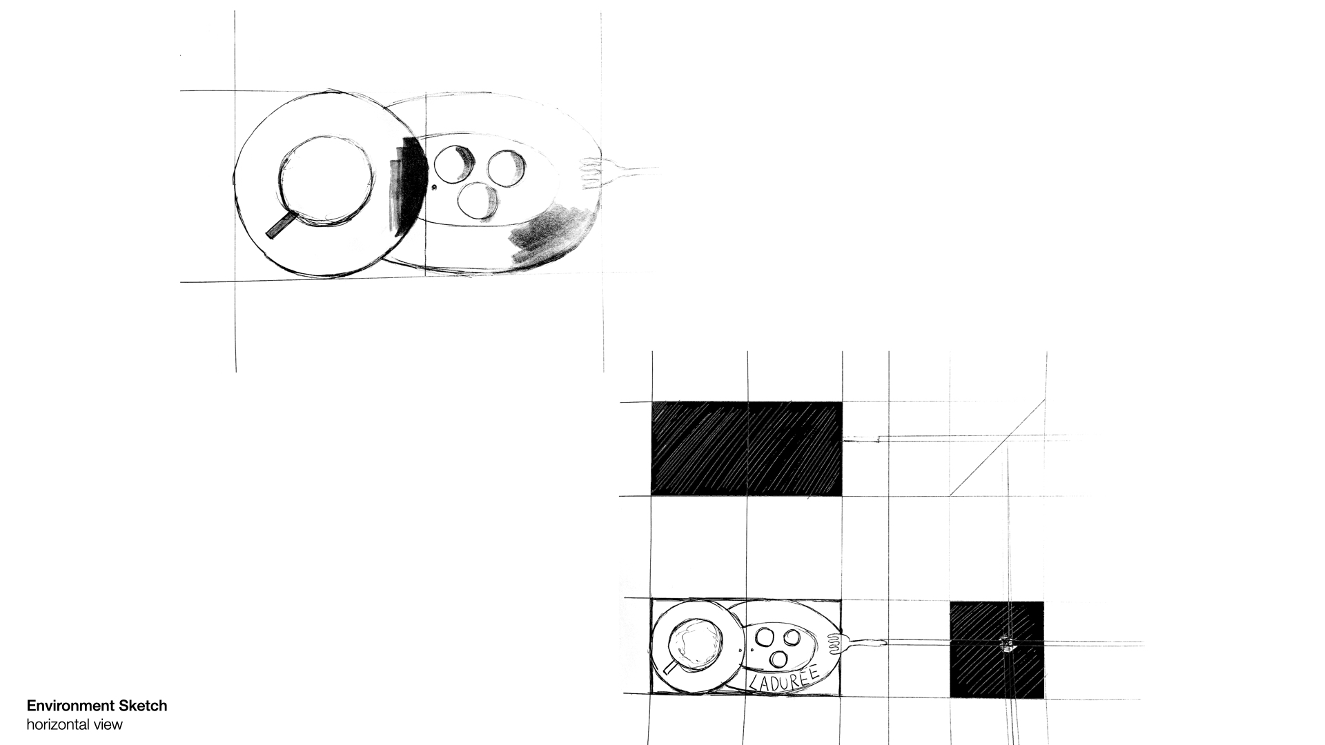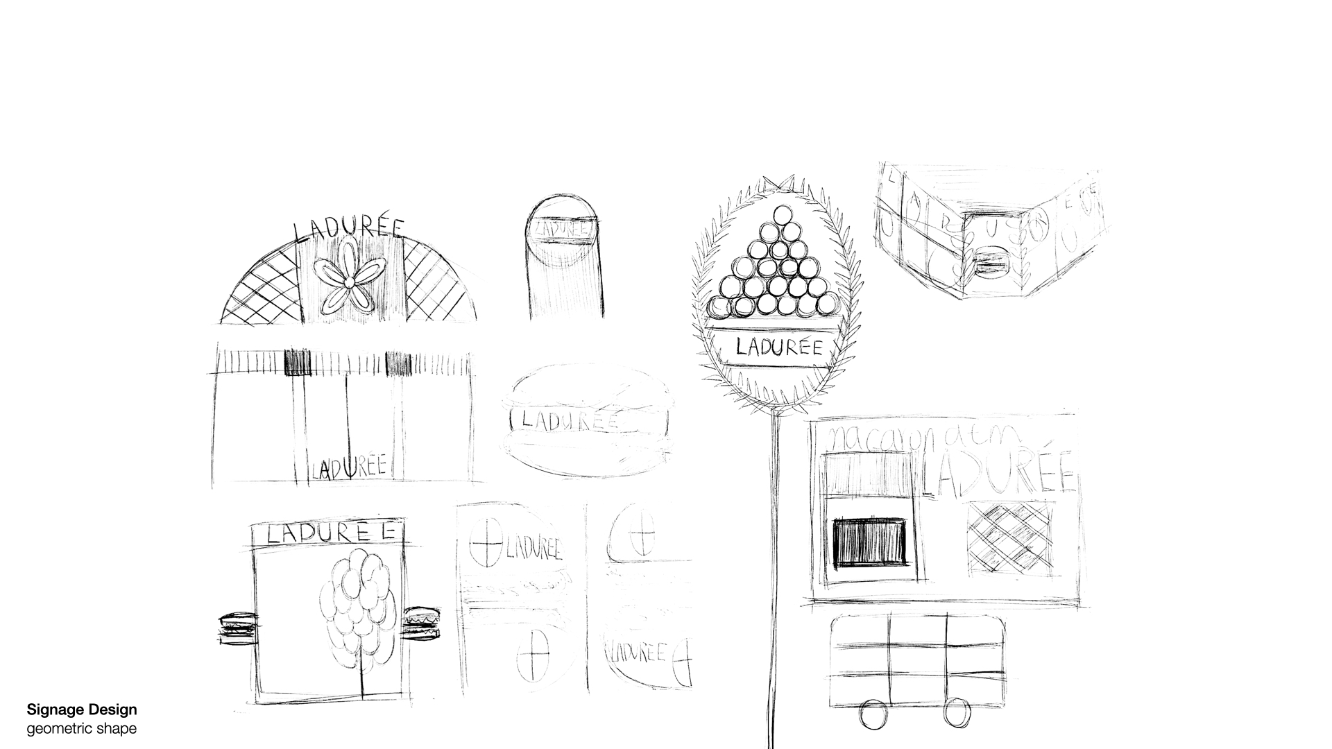 I organized all the significant works and divided into 3 parts. First, I experienced sketches from brief dynamics to pinky details. Secondly, I did some storyboards that tells a story step by step made me feel like a playwright share emotions with audience. Lastly, I studied perspective basis that we draw lines, basic building structures, and geometric products. In the end, I made this “Laduree Project” for my favorite macaroon brand.
