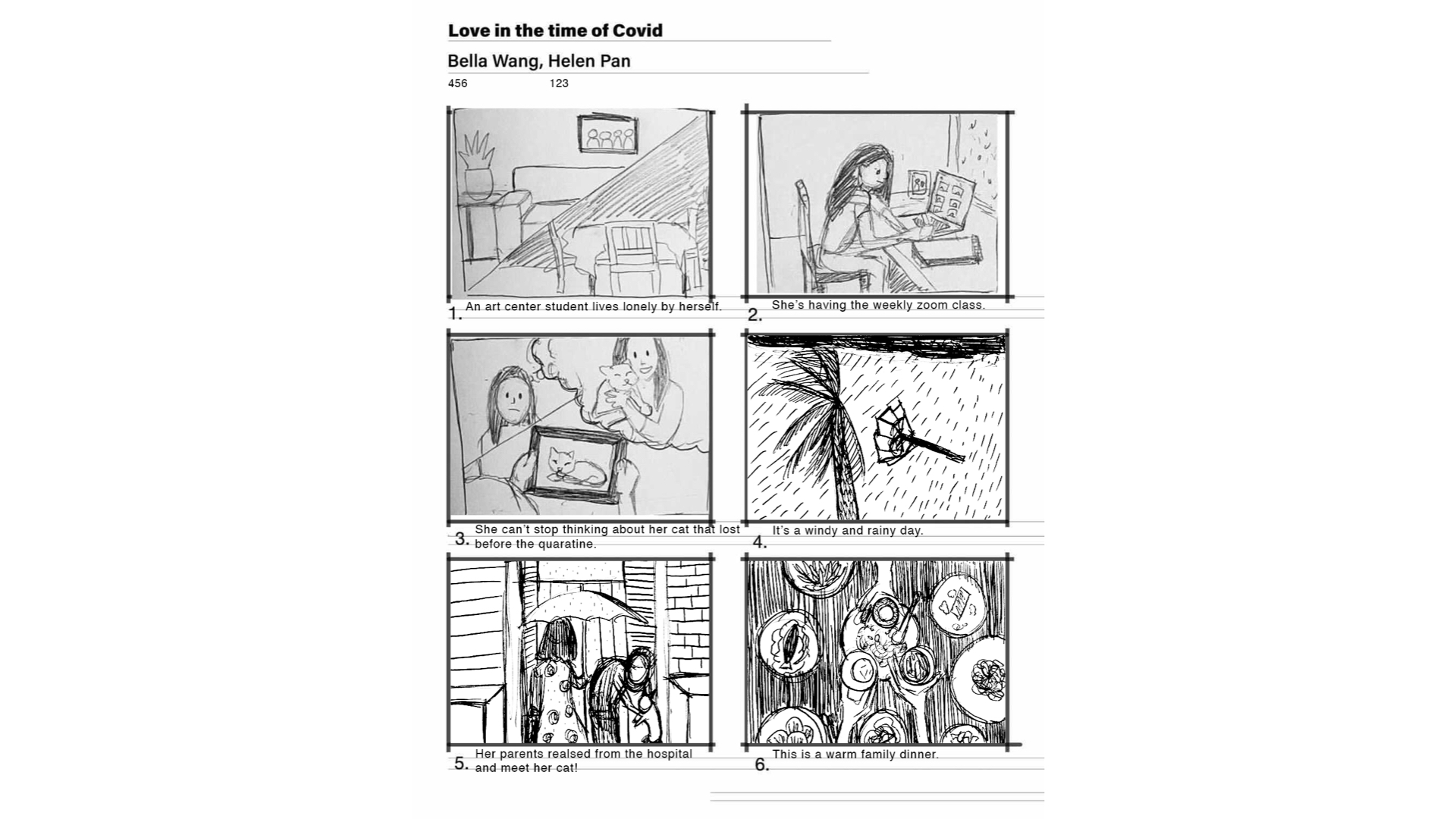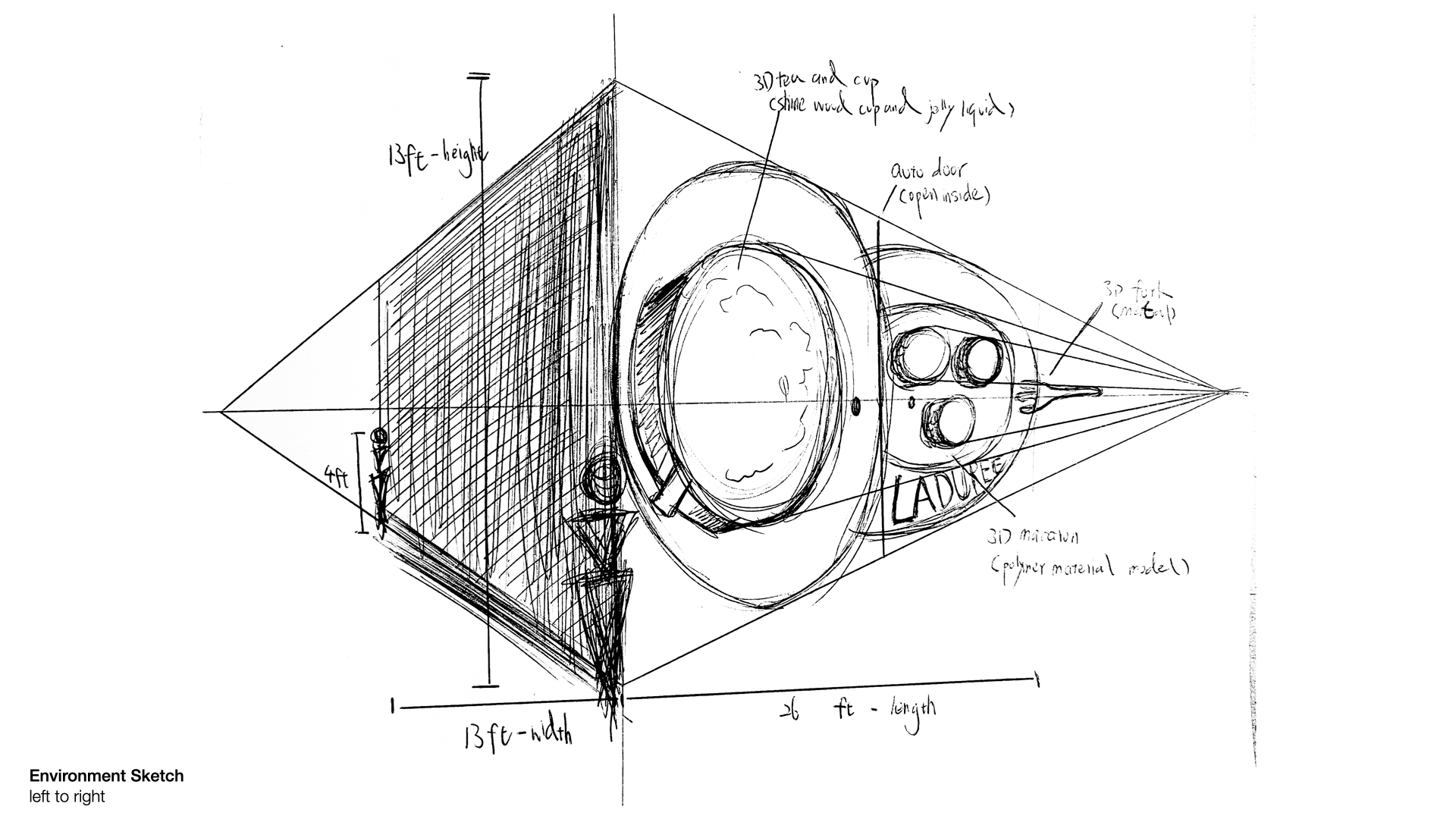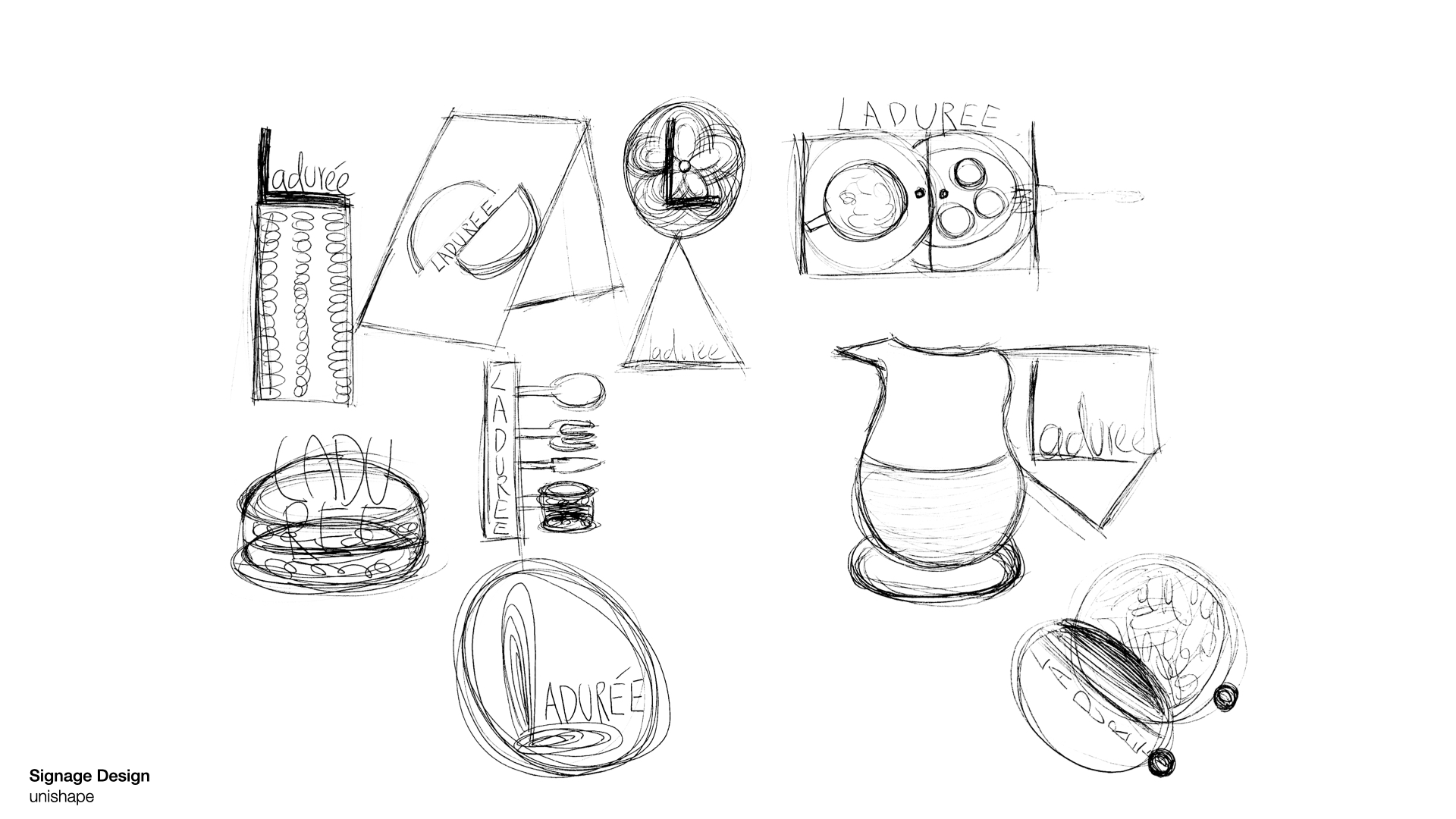 I organized all the significant works and divided into 3 parts. First, I experienced sketches from brief dynamics to pinky details. Secondly, I did some storyboards that tells a story step by step made me feel like a playwright share emotions with audience. Lastly, I studied perspective basis that we draw lines, basic building structures, and geometric products. In the end, I made this “Laduree Project” for my favorite macaroon brand.