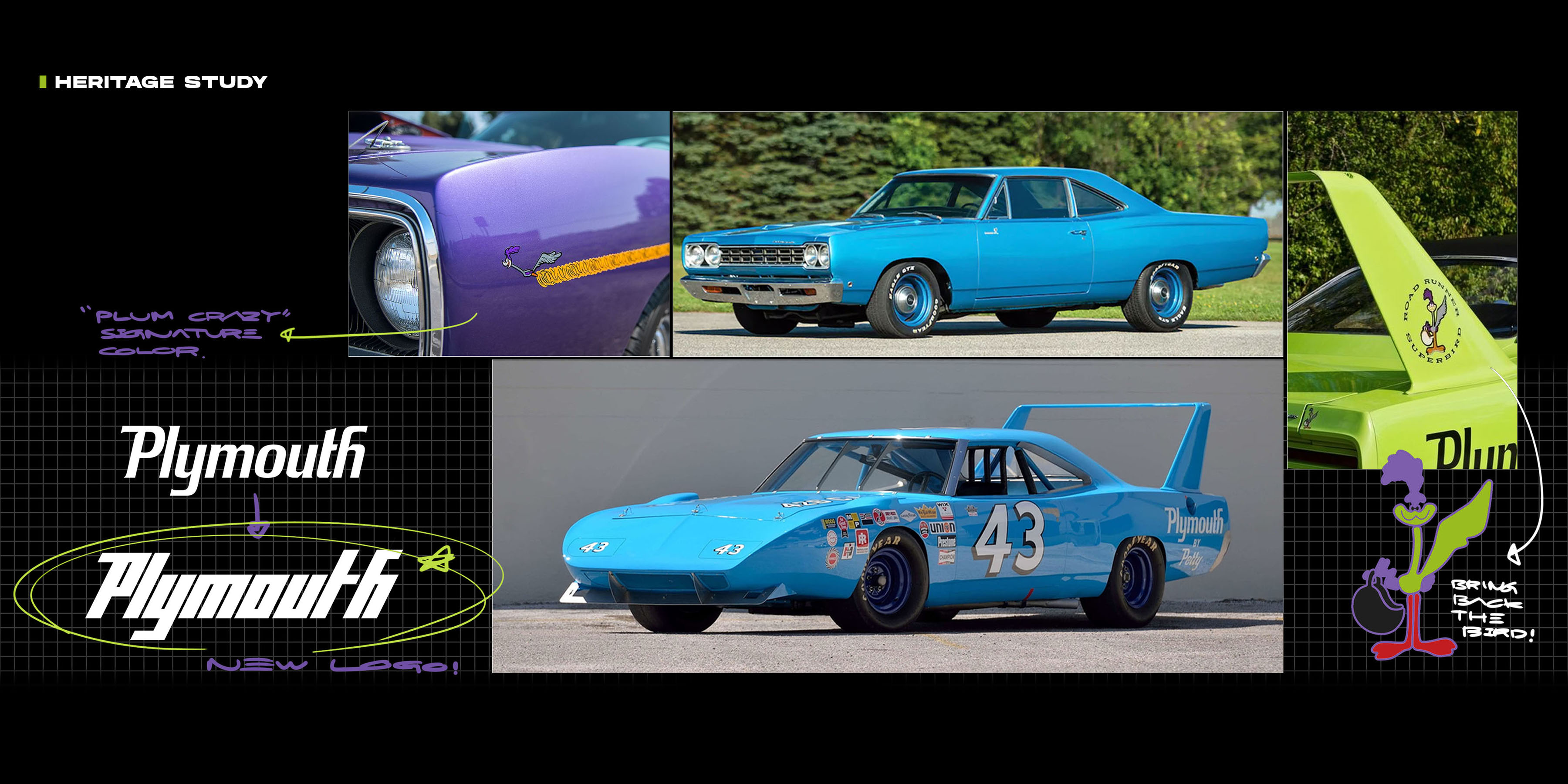 Term 5 / 2023 A studio project done at ArtCenter College of Design with the supervision of the faculty and the aid of the school’s resources. This project aimed to bring back the deceased manufacturer Plymouth, which left a great mark on the American muscle car culture, by reviving the famed Superbird for the younger generation in the year 2045.
