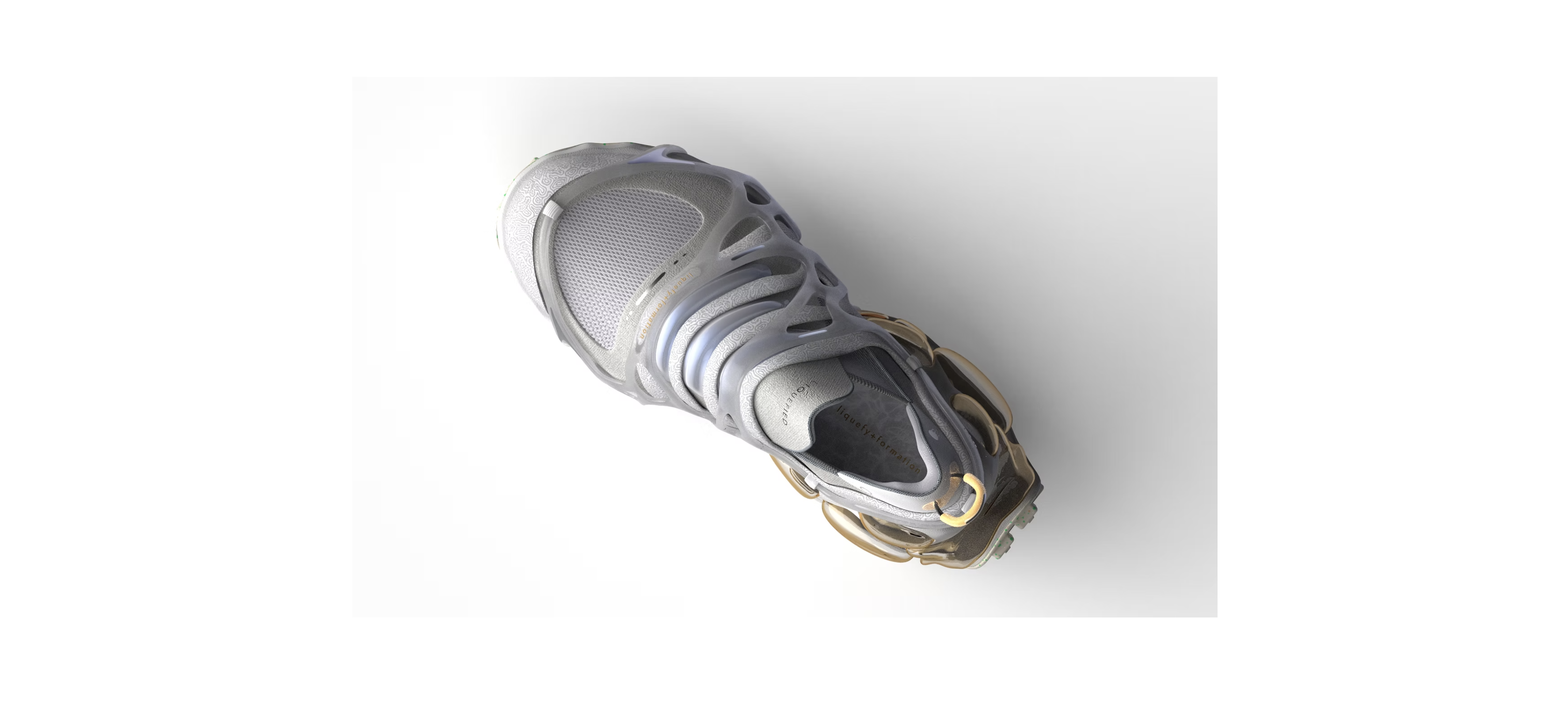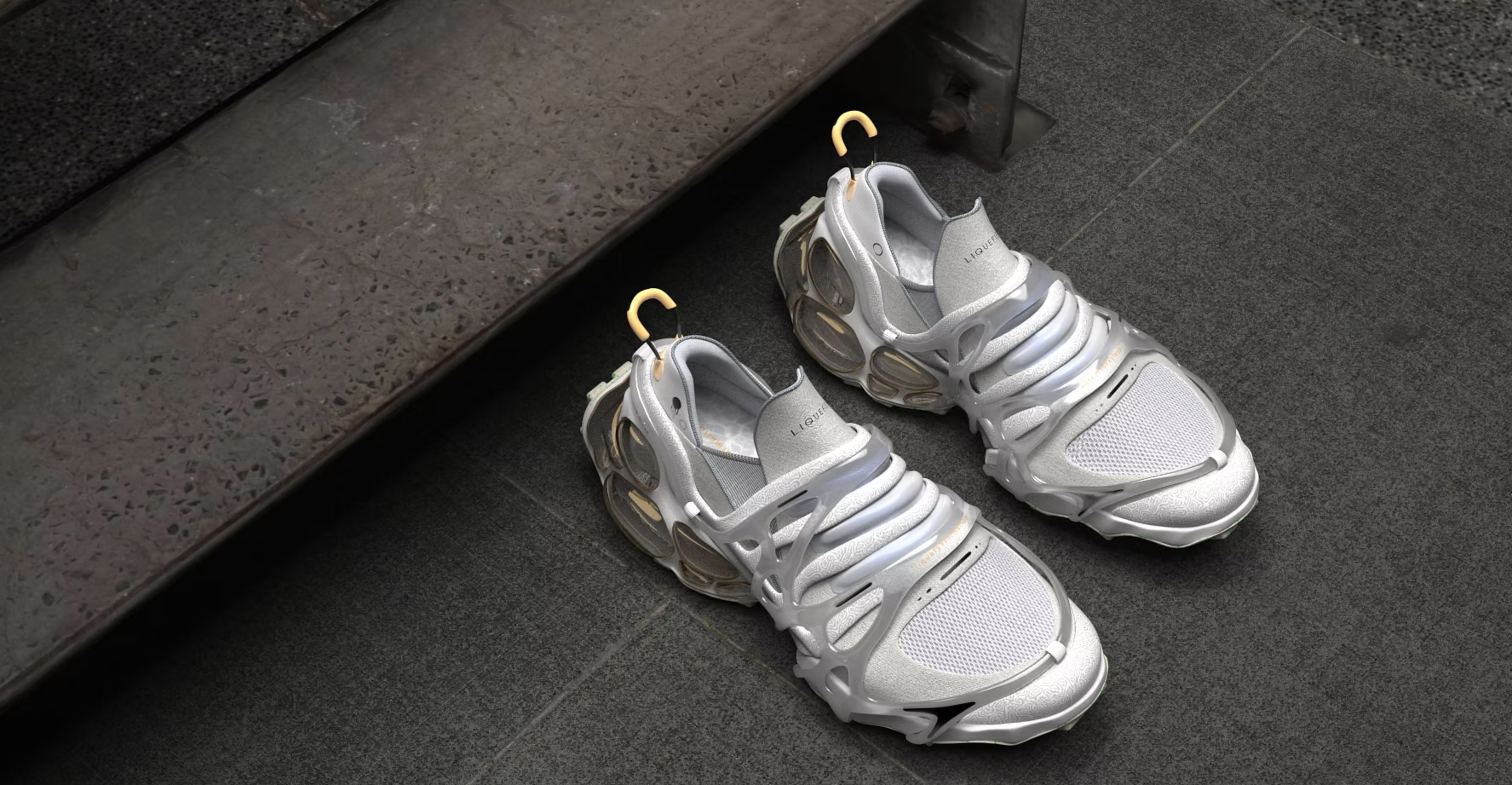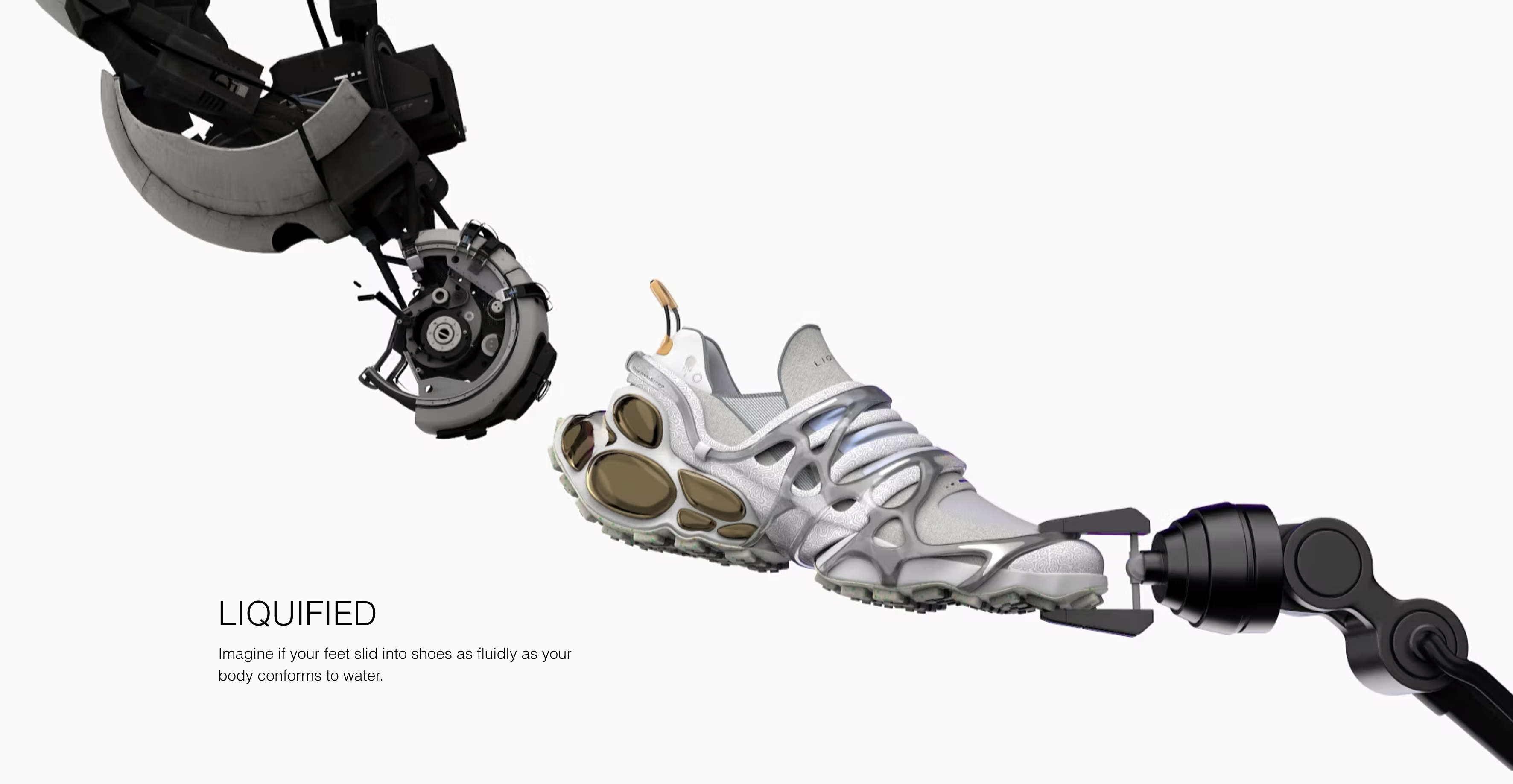 Imagine if your feet slid into shoes as fluidly as your body conforms to water. A laceless shoe design is inspired by liquid aesthetics, providing a snug fit through the utilization of thermal plastic formation technology.