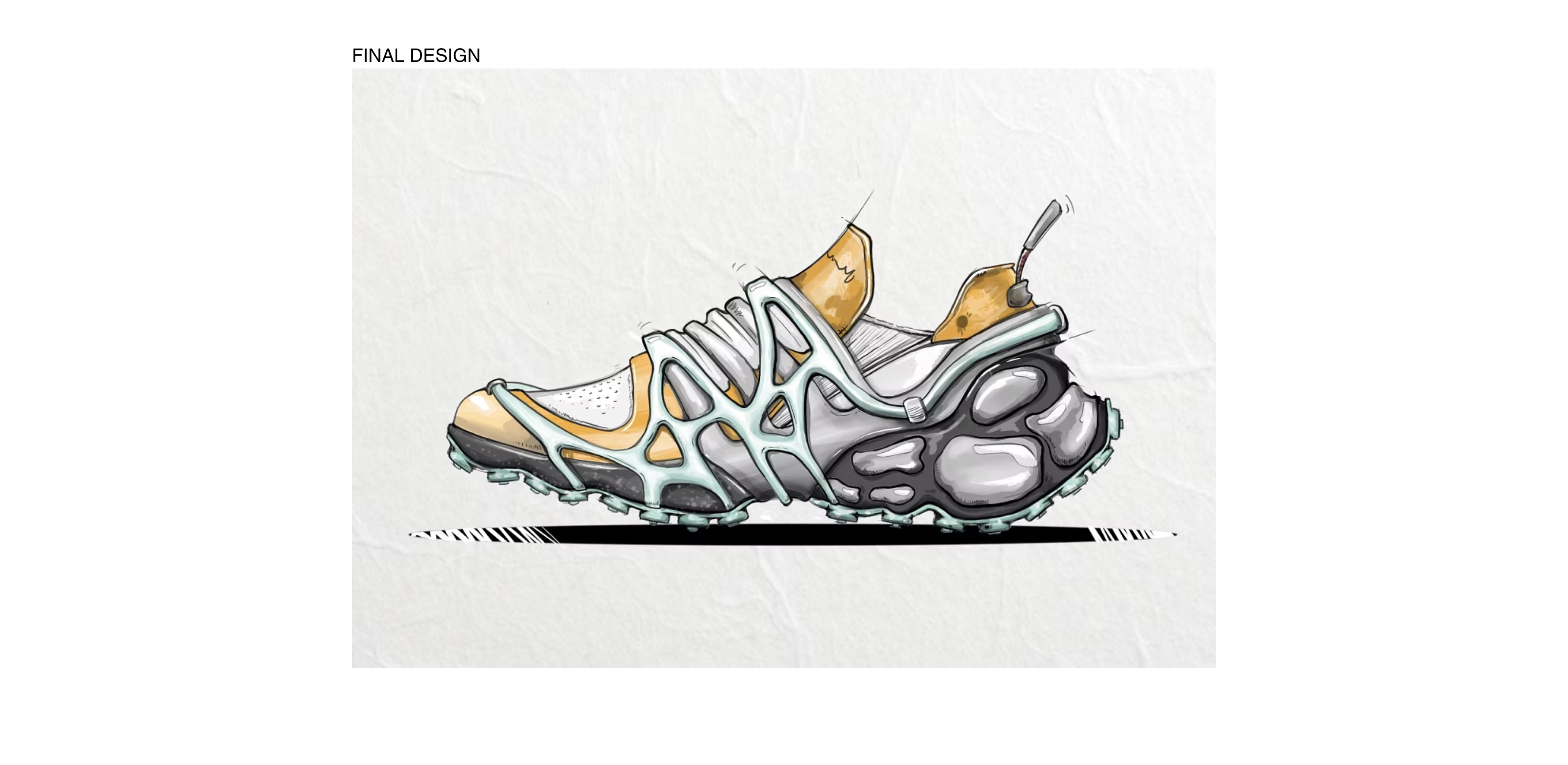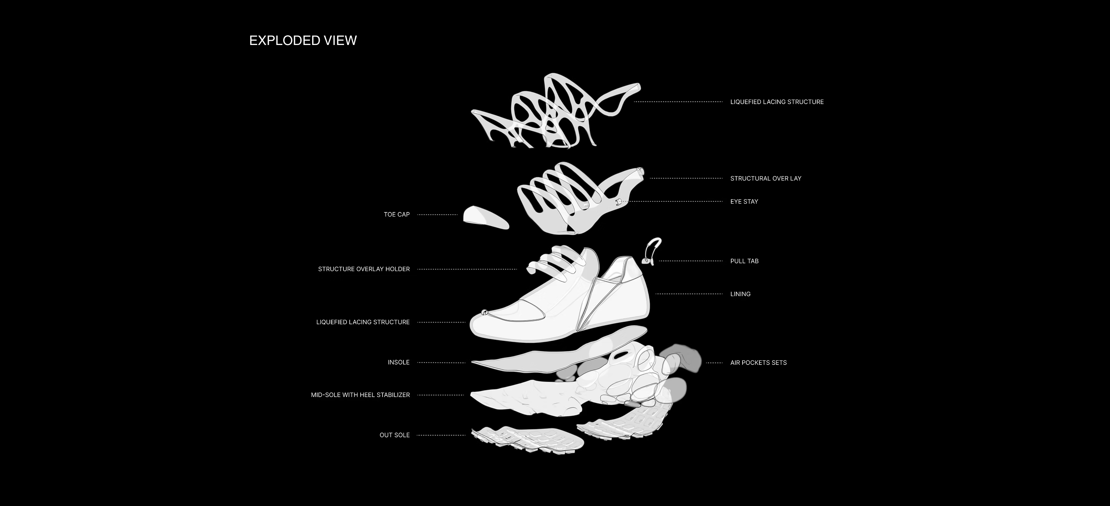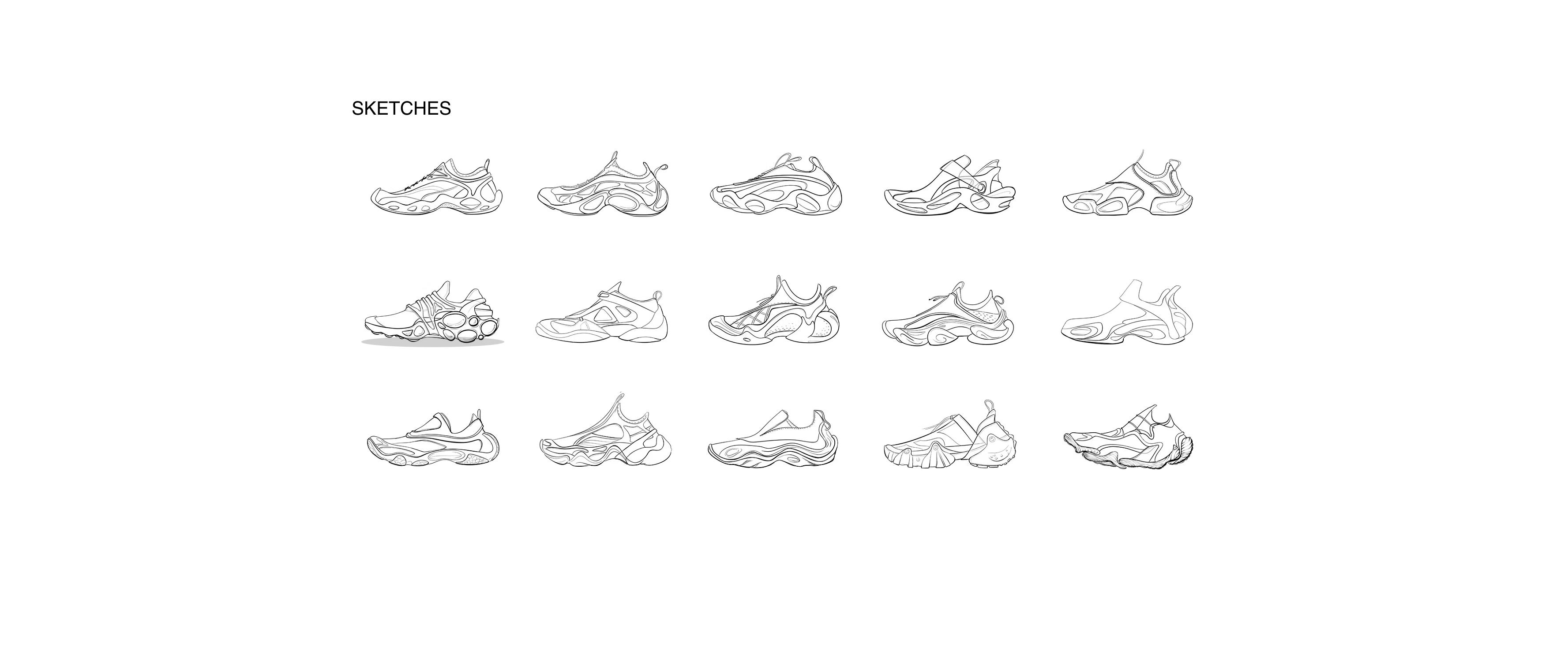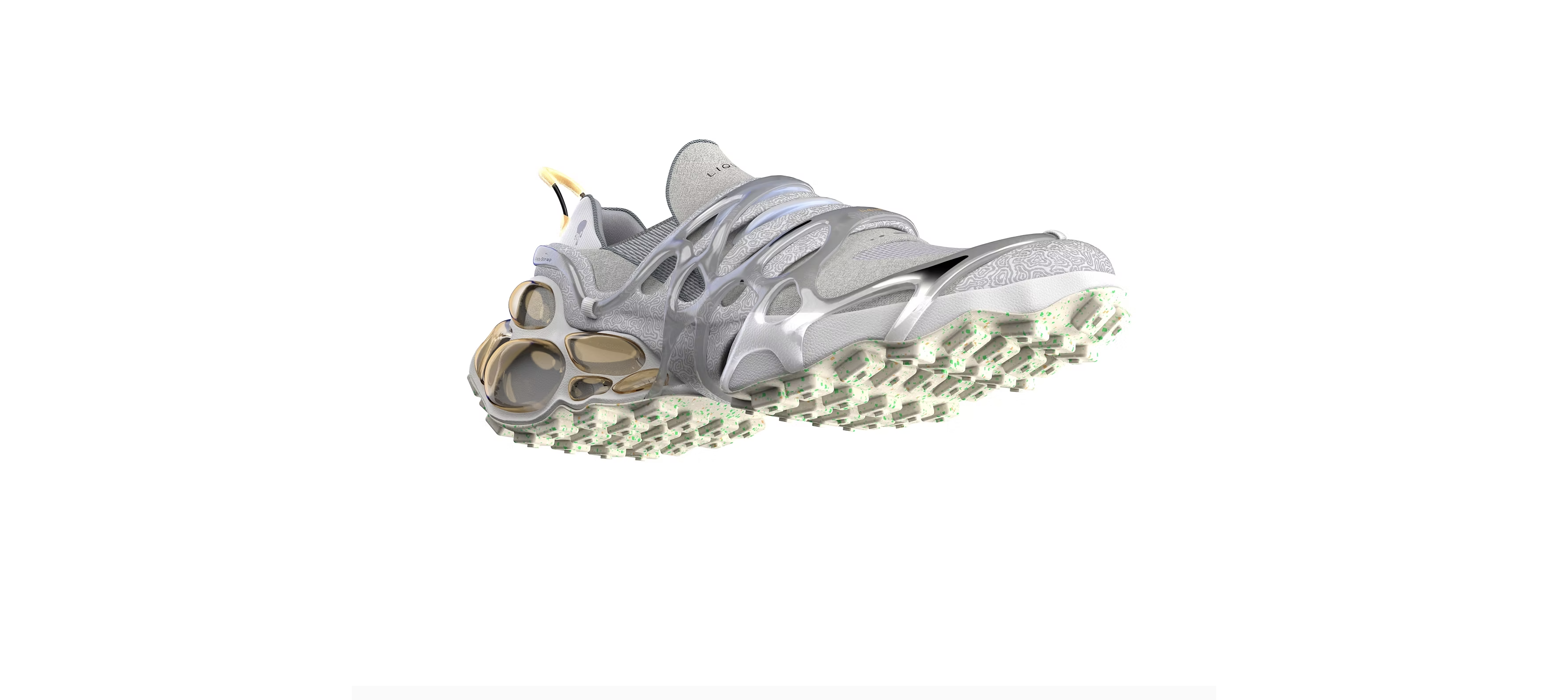 Imagine if your feet slid into shoes as fluidly as your body conforms to water. A laceless shoe design is inspired by liquid aesthetics, providing a snug fit through the utilization of thermal plastic formation technology.