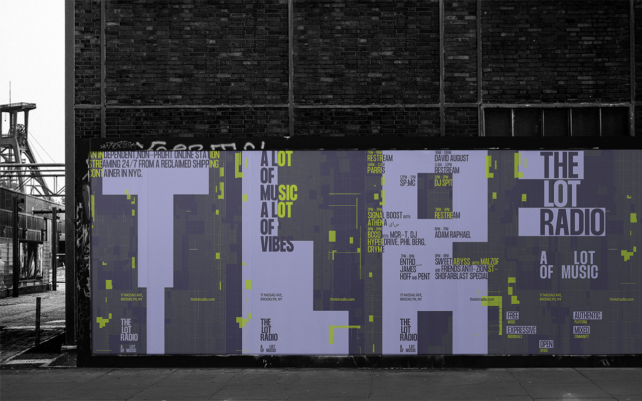 The Lot Radio is an independent, non-profit online station streaming 24/7 from a reclaimed shipping container in NYC. The rebranding shifts focus to emphasize its role as a dynamic community for creative connections and diverse music experiences. Highlight its unique mix of live streams from New York, artist collaborations, and community engagement. Reinforce its identity with fresh digital experience that captures the essence of underground and experimental sounds.