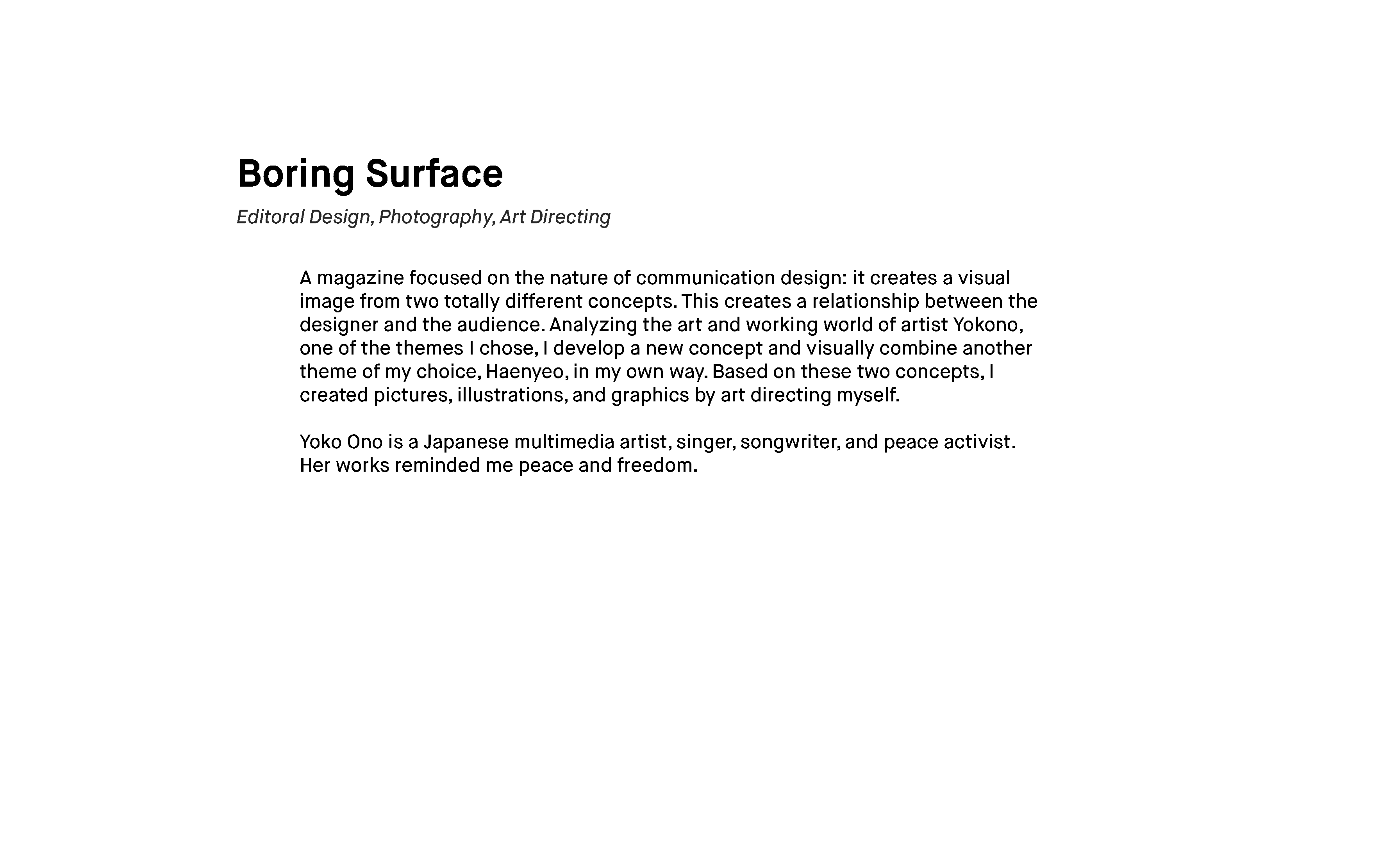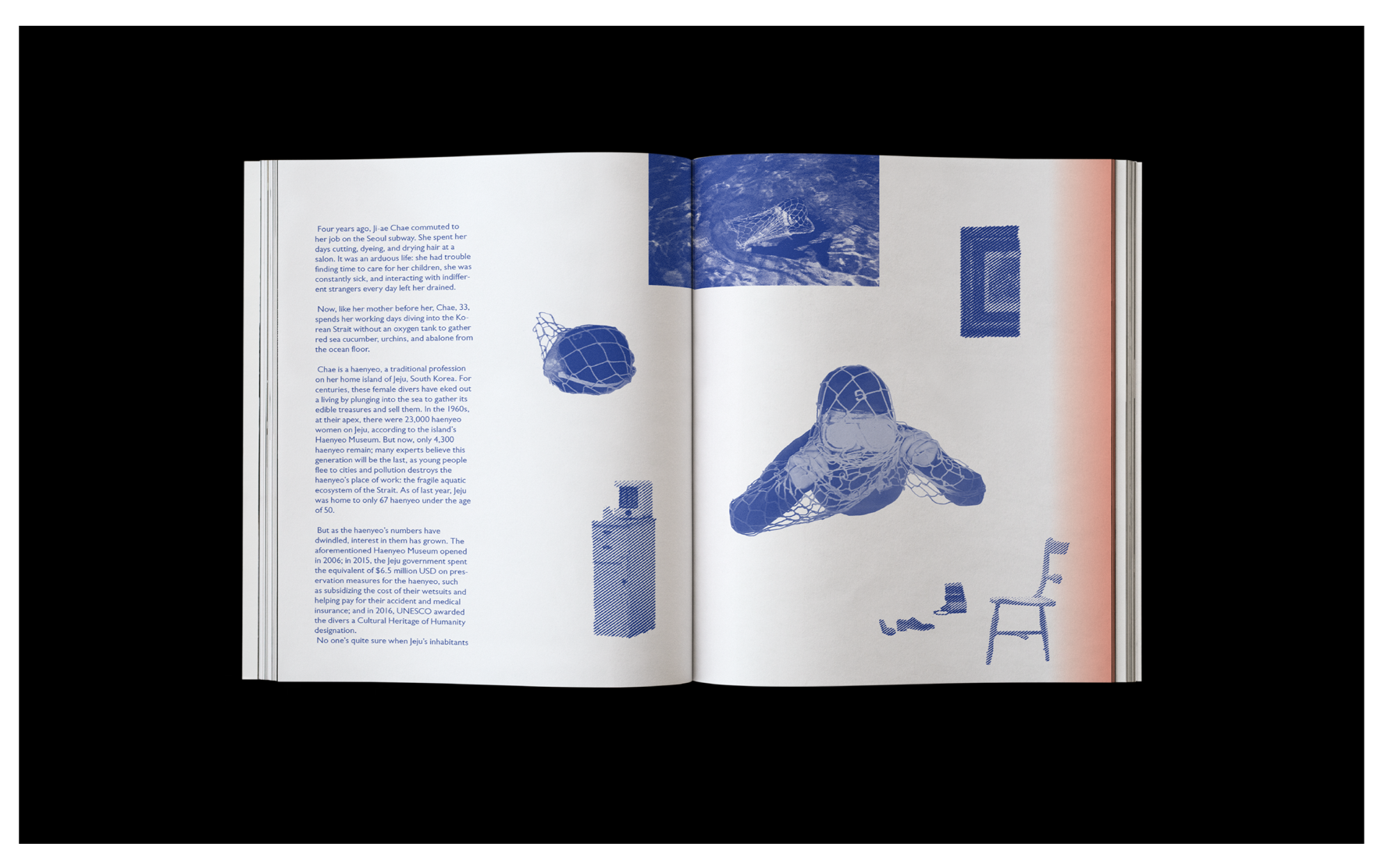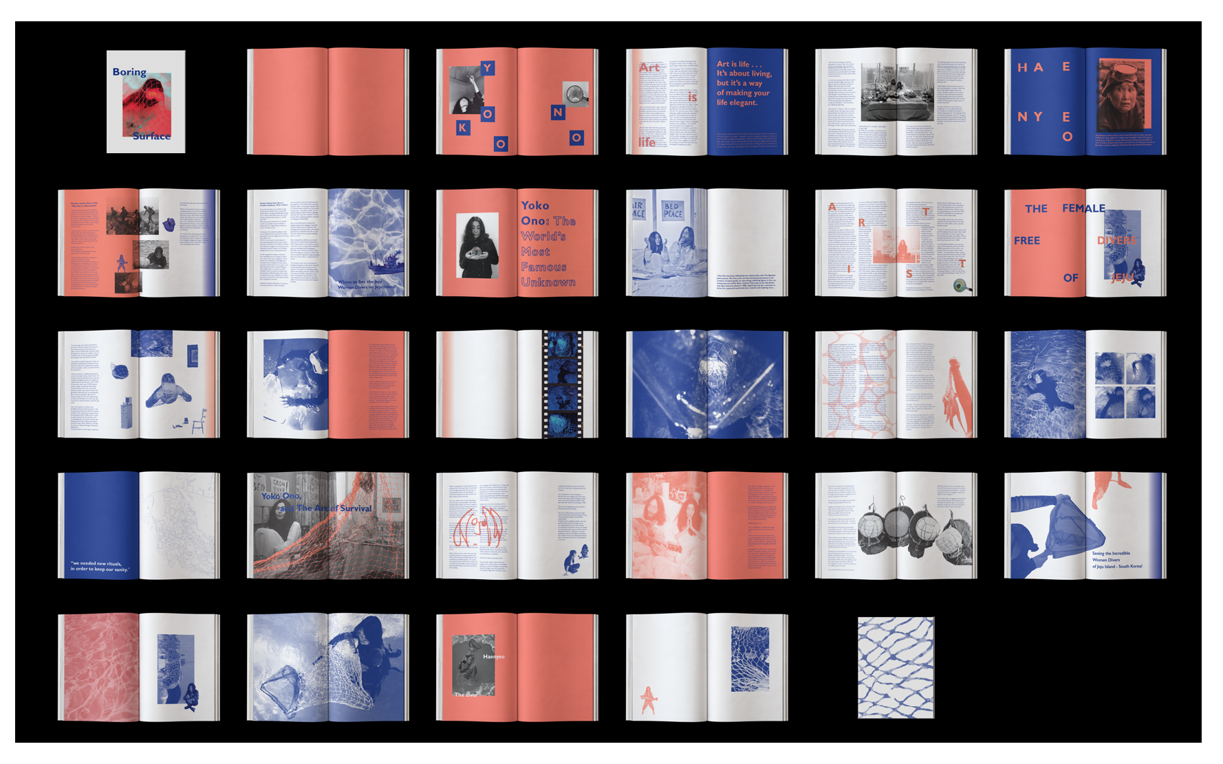 I chose Yoko ono for the artist and Haenyeo, female divers in South Korea for the contrasting idea to make zine.