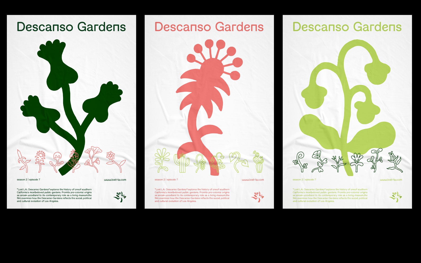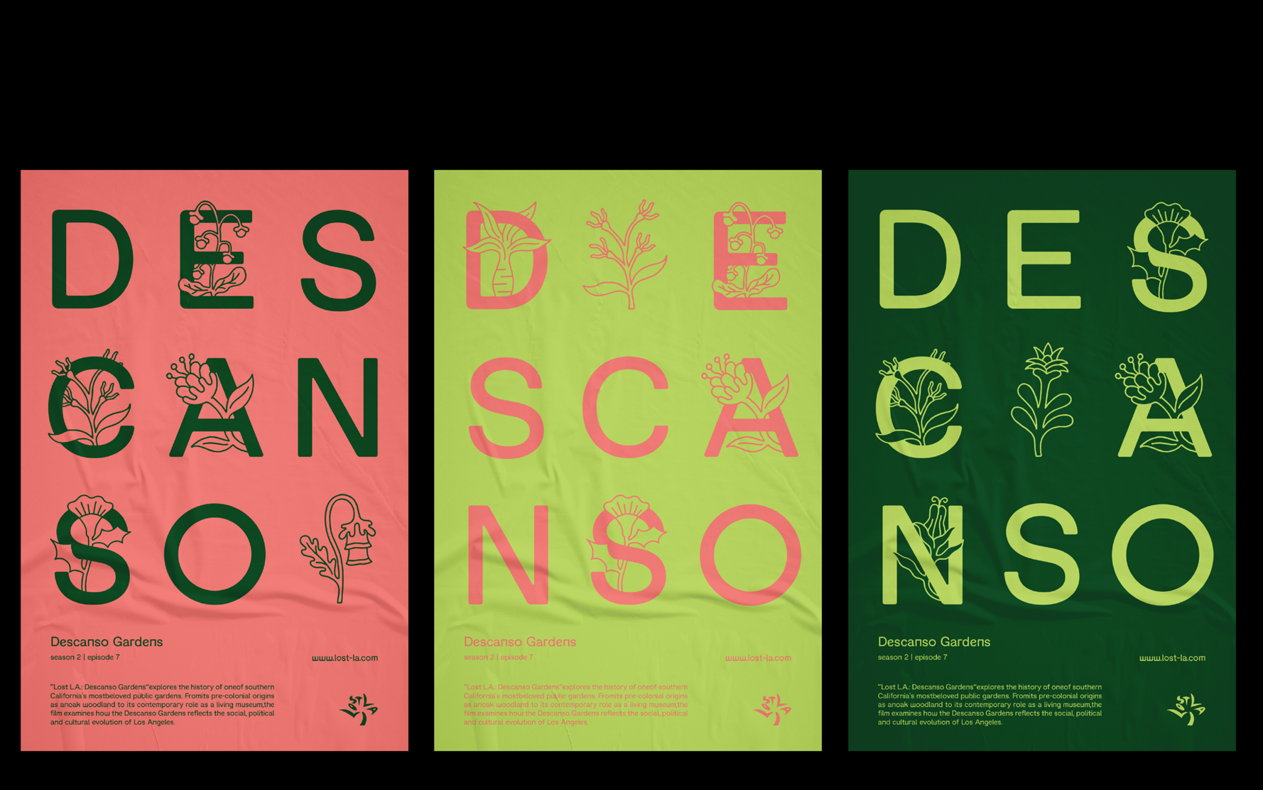 This project is about redesigning the brand of a video series, “Lost LA,” and designing a booklet, triptych posters, and promo Instagram carousel images for one of its episodes, “Descanso Garden.”