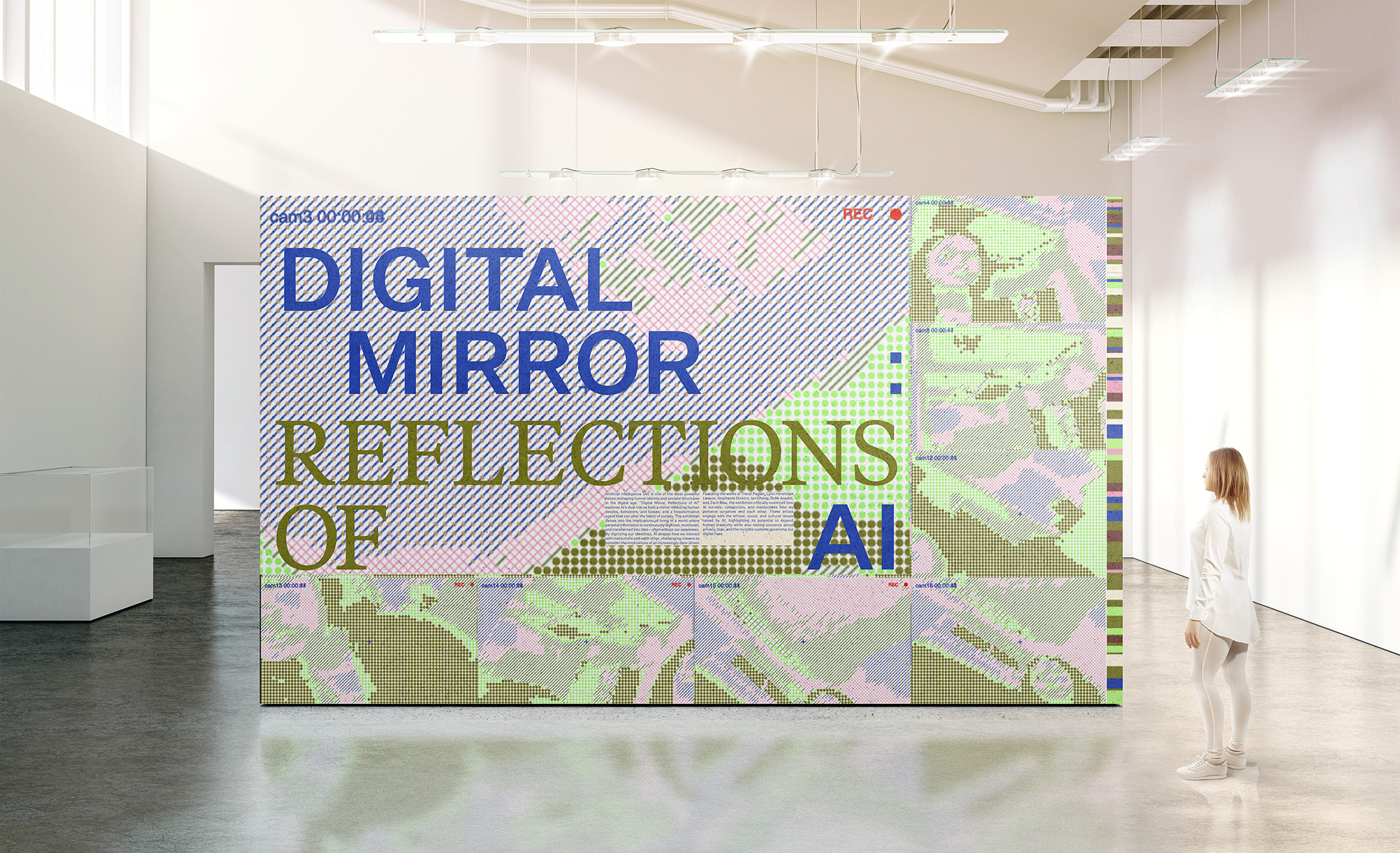 Digital Mirror: Reflections of AI is an exhibition that looks at how AI acts like a mirror, showing us our own desires, behaviors, and biases, while also being a powerful tool that can change how society works. It explores what happens when our personal information is constantly collected, watched, and turned into data—often without us realizing it. The exhibition asks visitors to think about living in a world where AI can empower us but also control and monitor us.