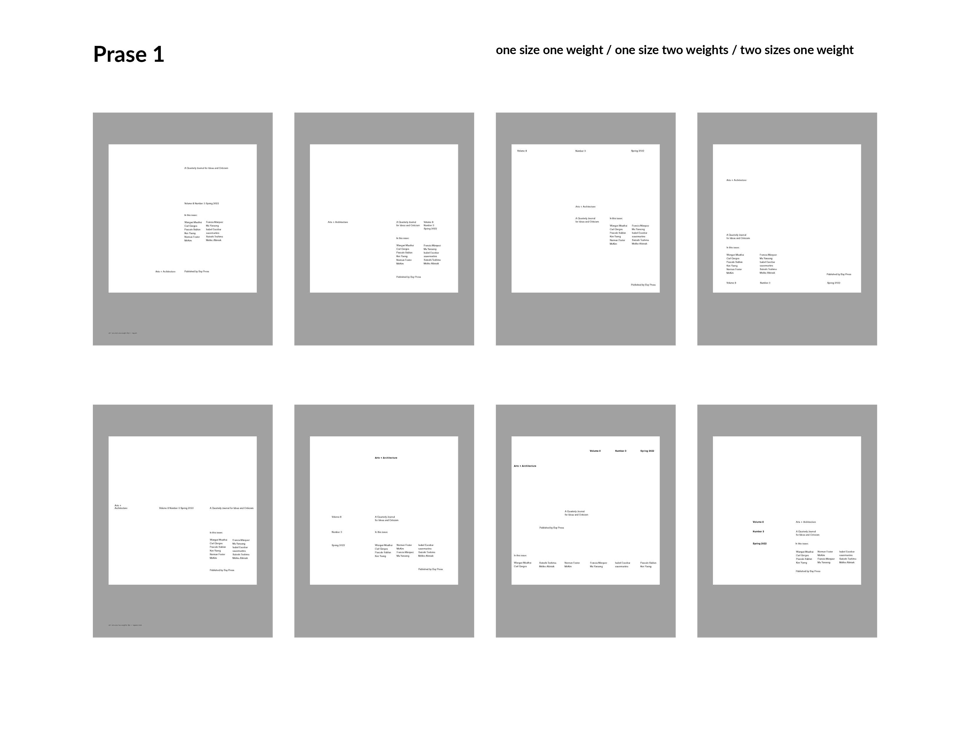Graduates Select DepartmentBrand Design & StrategyCreative DirectionEntertainment DesignFilmFine ArtFurniture, Lighting and FixturesGraduate ArtGraduate FilmGraduate Graphic DesignGraduate Interaction DesignGraduate Spatial Experience DesignGraphic DesignIllustrationIndustrial DesignInteraction DesignMedia Design PracticesPhotography and ImagingProduct DesignSpatial Experience DesignTransportation DesignTransportation Systems and Design Back to Projects Heejai Park BFA in Graphic Design — Graphic Design Course: GPRT-153 Type 2: Structure Faculty: Meryl Pollen Type 2 Exercise 5 phrases sets of typography layout exercises. Image Image Image Image Image Image Image