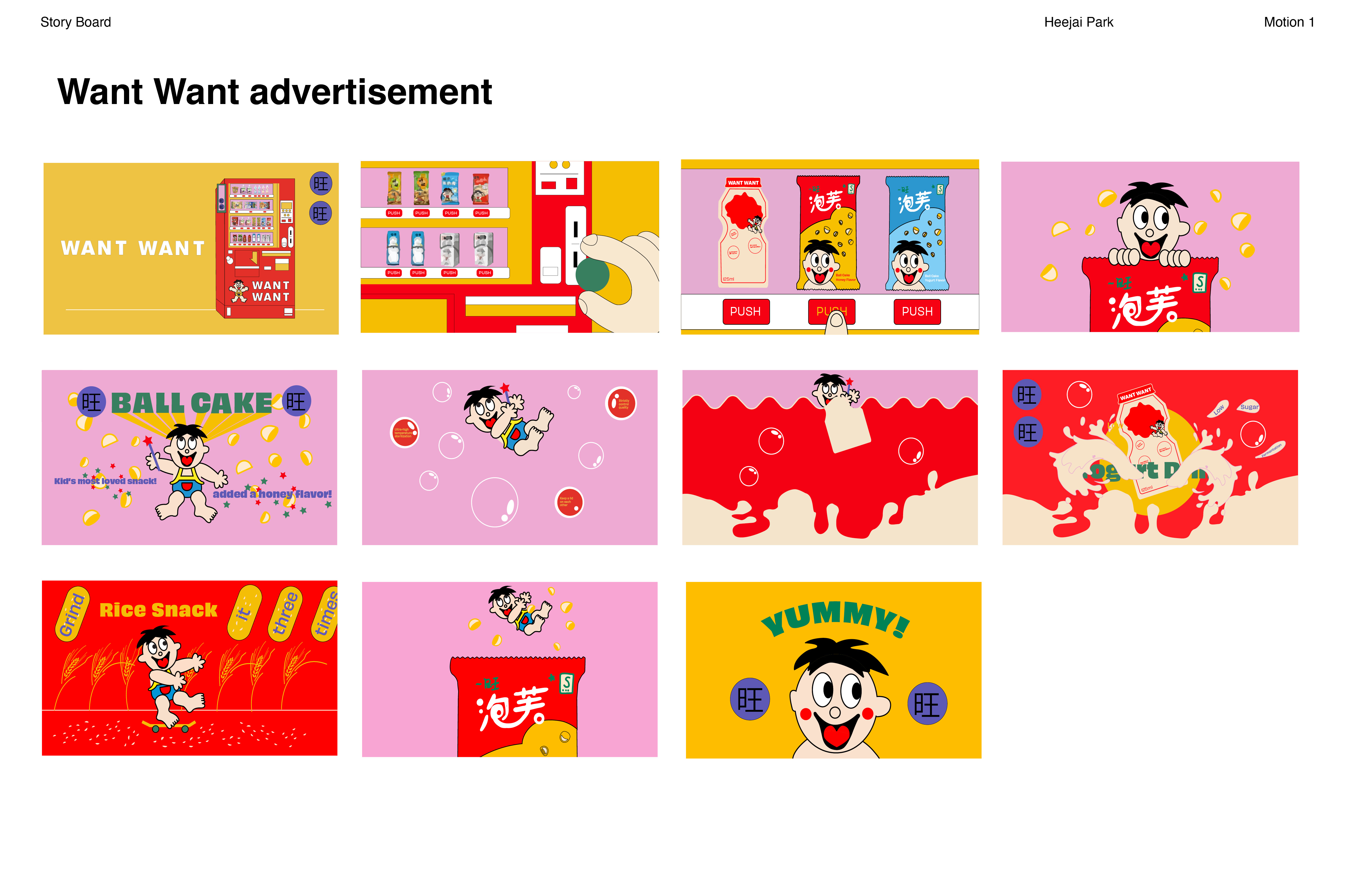 This project is a branding animation for company ' Want Want', focusing on the snacks and drinks they sell.