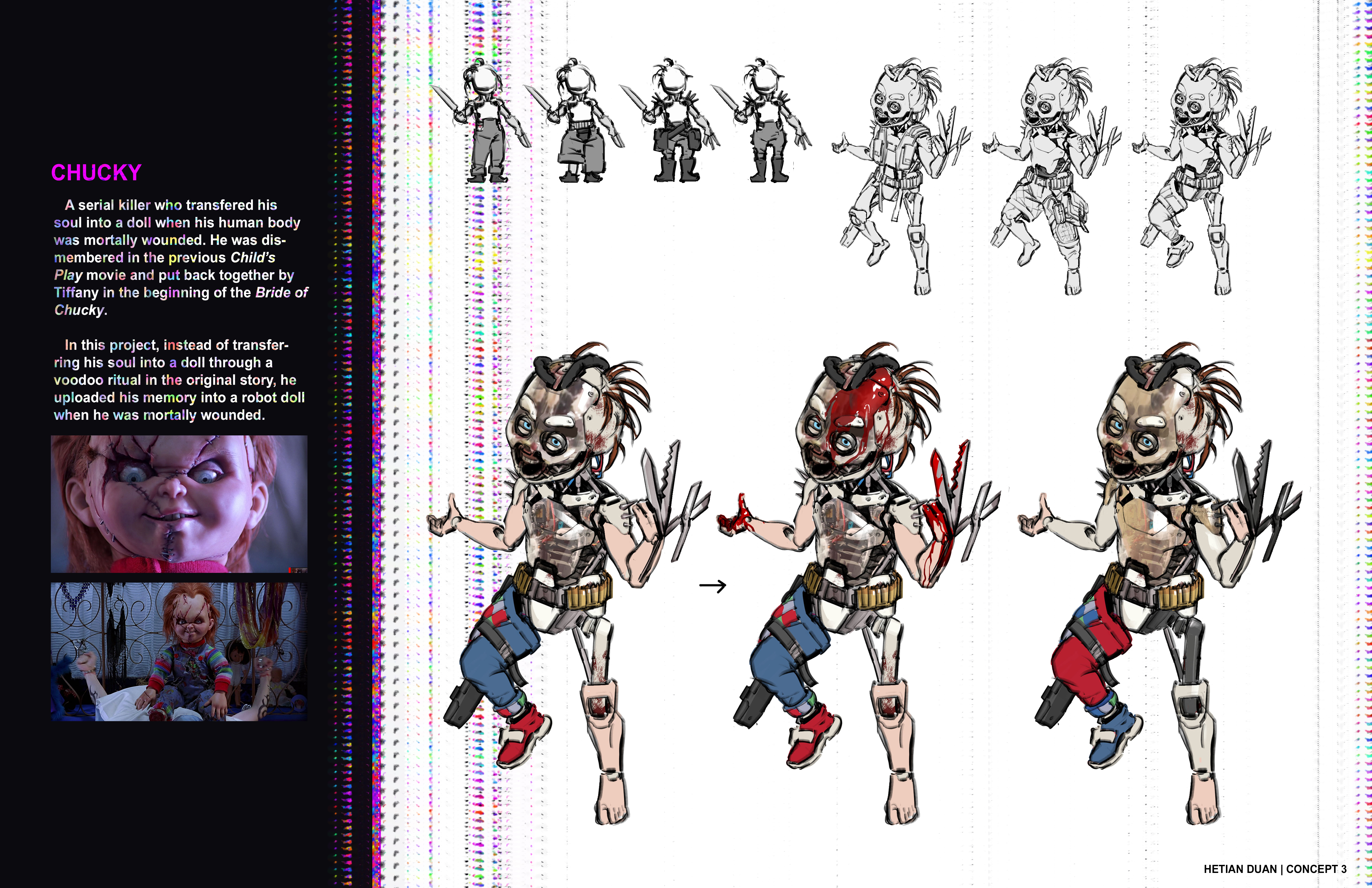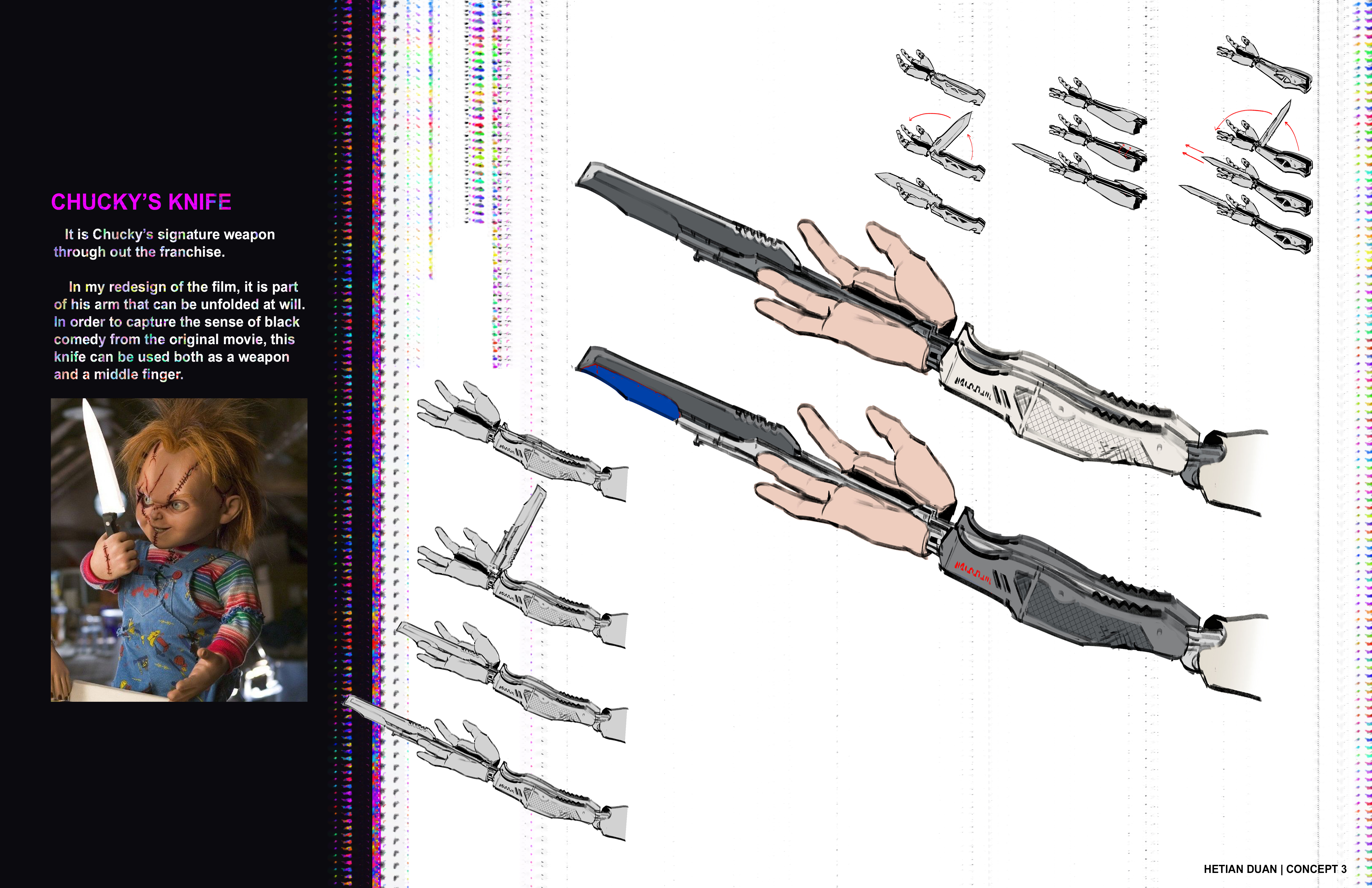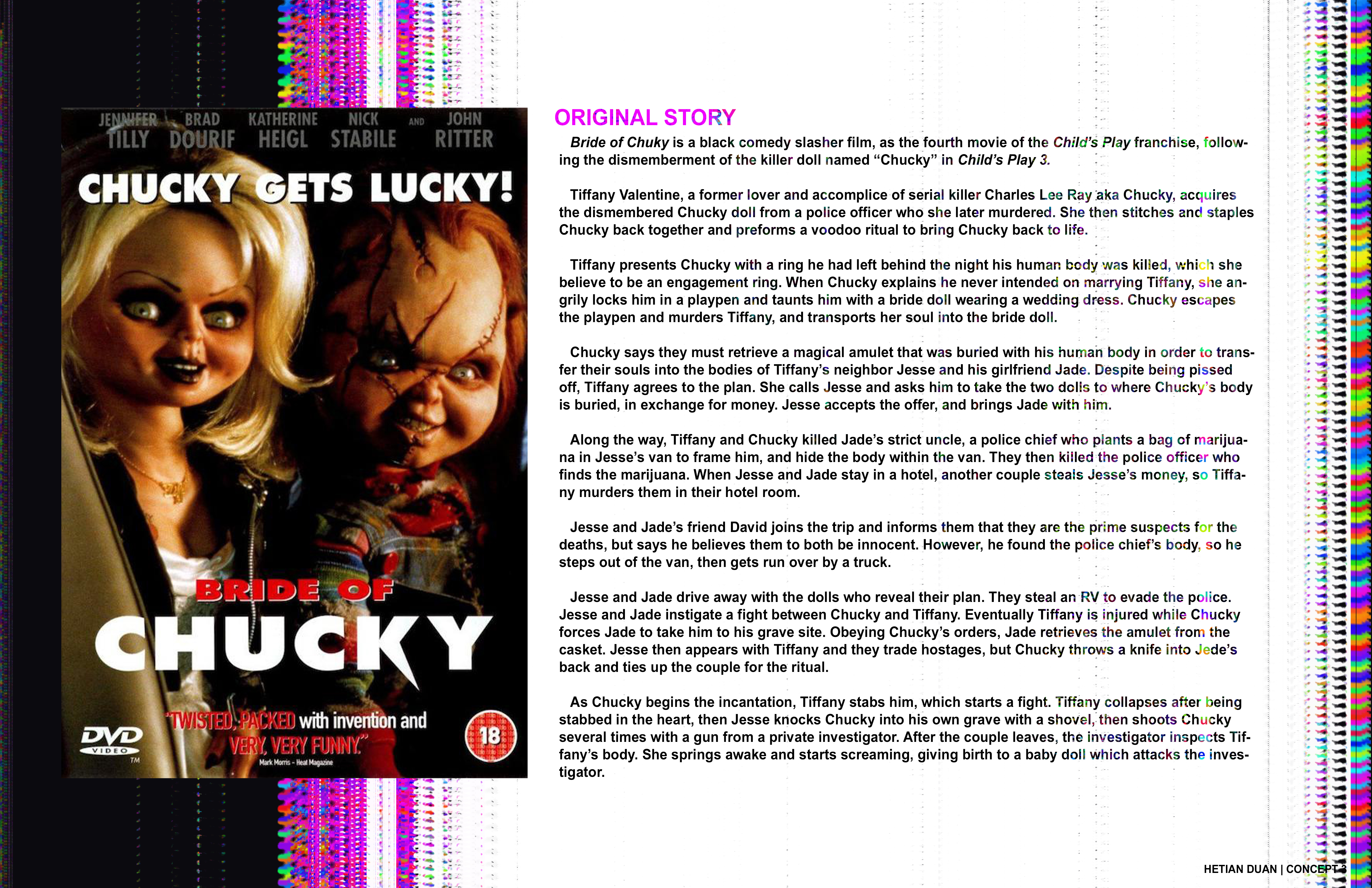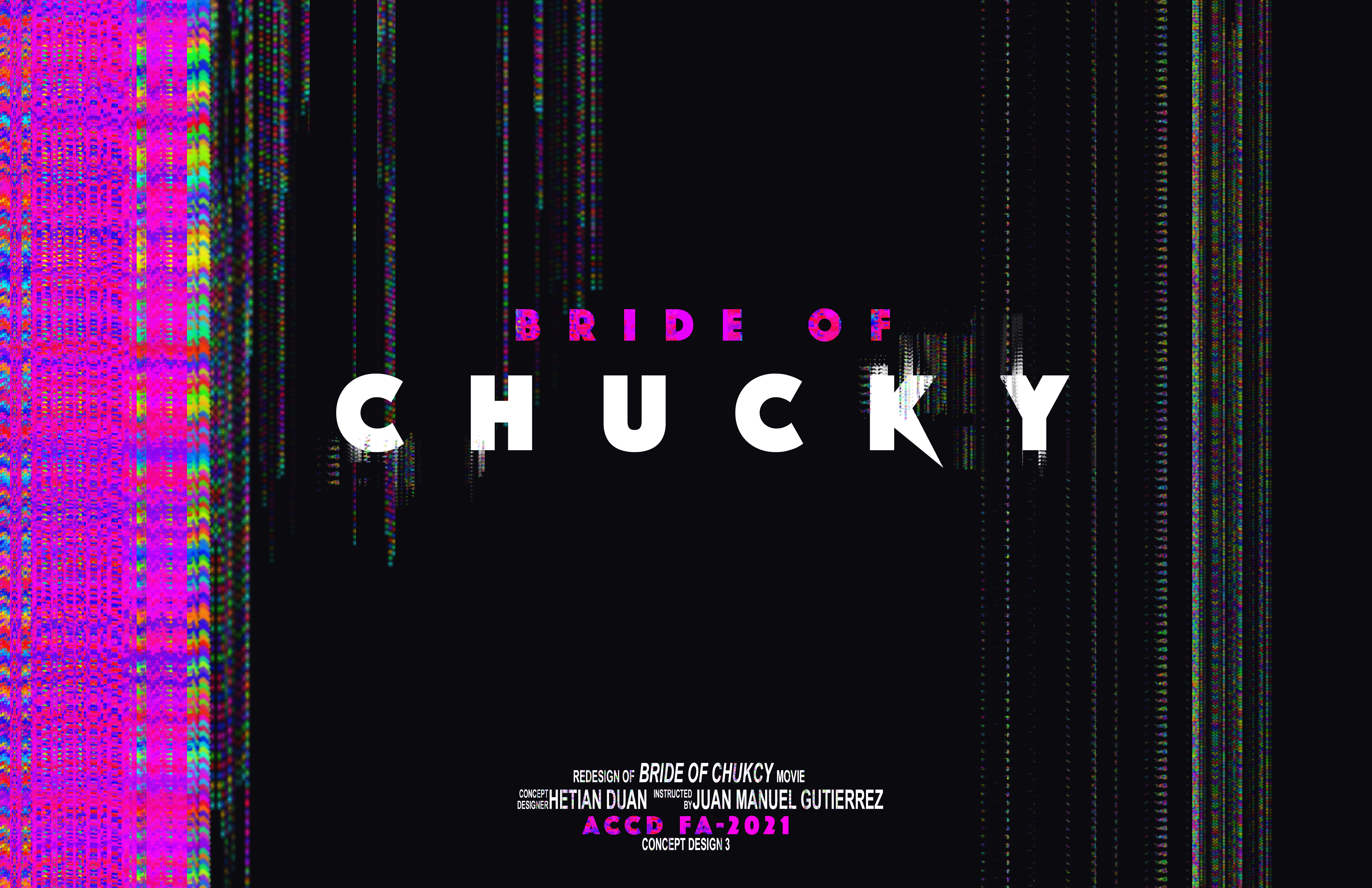 Graduates Select DepartmentBrand Design & StrategyCreative DirectionEntertainment DesignFilmFine ArtFurniture, Lighting and FixturesGraduate ArtGraduate FilmGraduate Graphic DesignGraduate Interaction DesignGraduate Spatial Experience DesignGraphic DesignIllustrationIndustrial DesignInteraction DesignMedia Design PracticesPhotography and ImagingProduct DesignSpatial Experience DesignTransportation DesignTransportation Systems and Design Back to Projects Hetian Duan BS in Entertainment Design - Concept — Entertainment Design "Bride of Chucky" Redesign A redesign of the movie "Bride of Chucky". Image Image Image Image Image Image Image Image Image Image Image Image Image Image Image Image Image Image Image Image Image