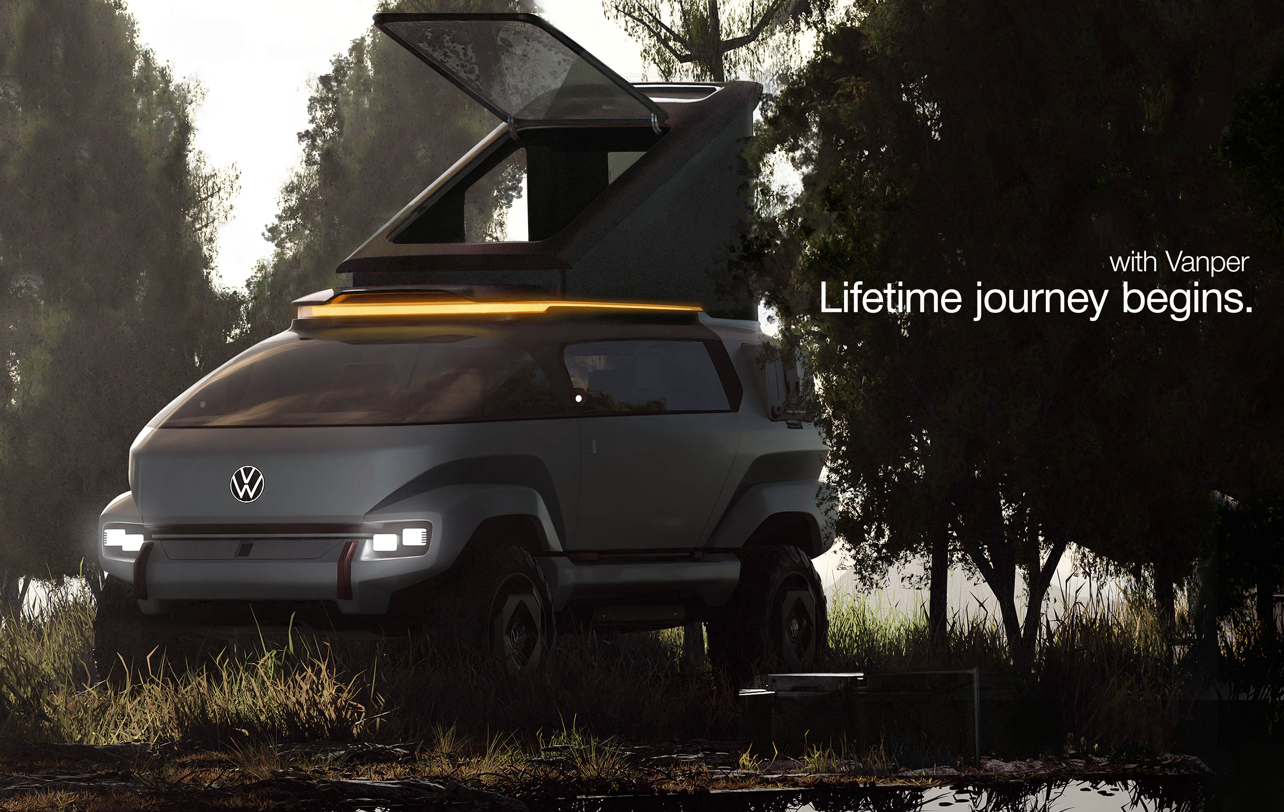 Graduates Select DepartmentBrand Design & StrategyCreative DirectionEntertainment DesignFilmFine ArtFurniture, Lighting and FixturesGraduate ArtGraduate FilmGraduate Graphic DesignGraduate Interaction DesignGraduate Spatial Experience DesignGraphic DesignIllustrationIndustrial DesignInteraction DesignMedia Design PracticesPhotography and ImagingProduct DesignSpatial Experience DesignTransportation DesignTransportation Systems and Design Back to Projects Hojae Chung Transportation Design Volkswagen Vanper Volkswagen off-Road Camping Van Image Image Image Image