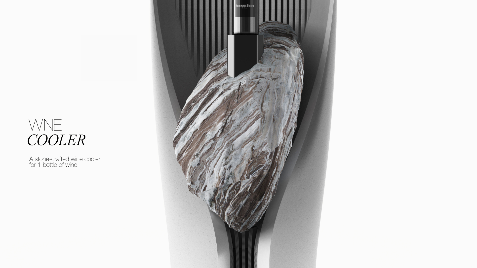 Audemars Piguet house outdoor wine experience solution. A combination of outdoor cooler / heater / wine cabinet.