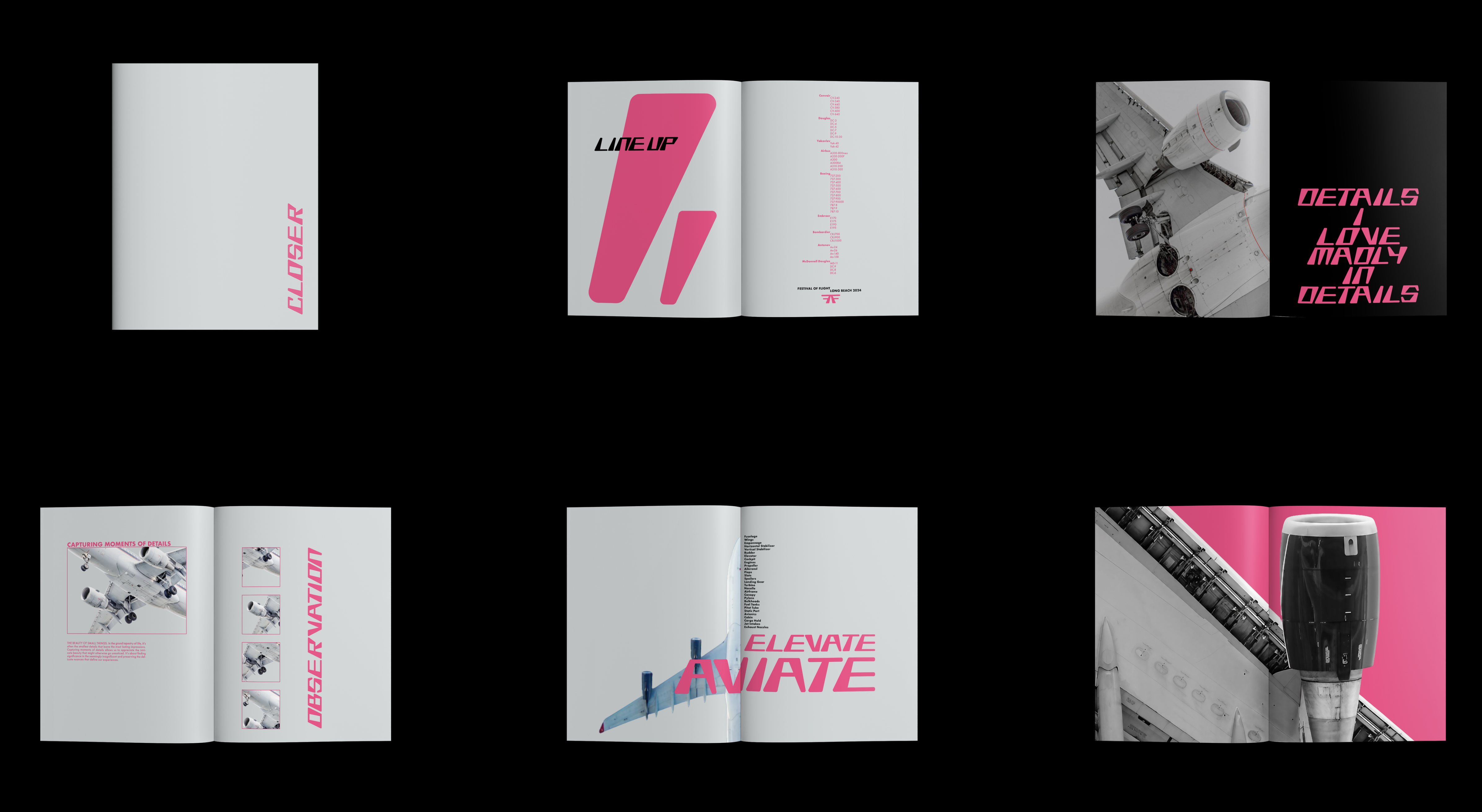 Festival of Flight is an annual event in L.A. that brings together flight enthusiasts, local communities, and families to celebrate aviation through various showcases and performances. The visual identity for the festival is inspired by the design of an aircraft rudder. I developed a custom typography that is integral to the branding system.