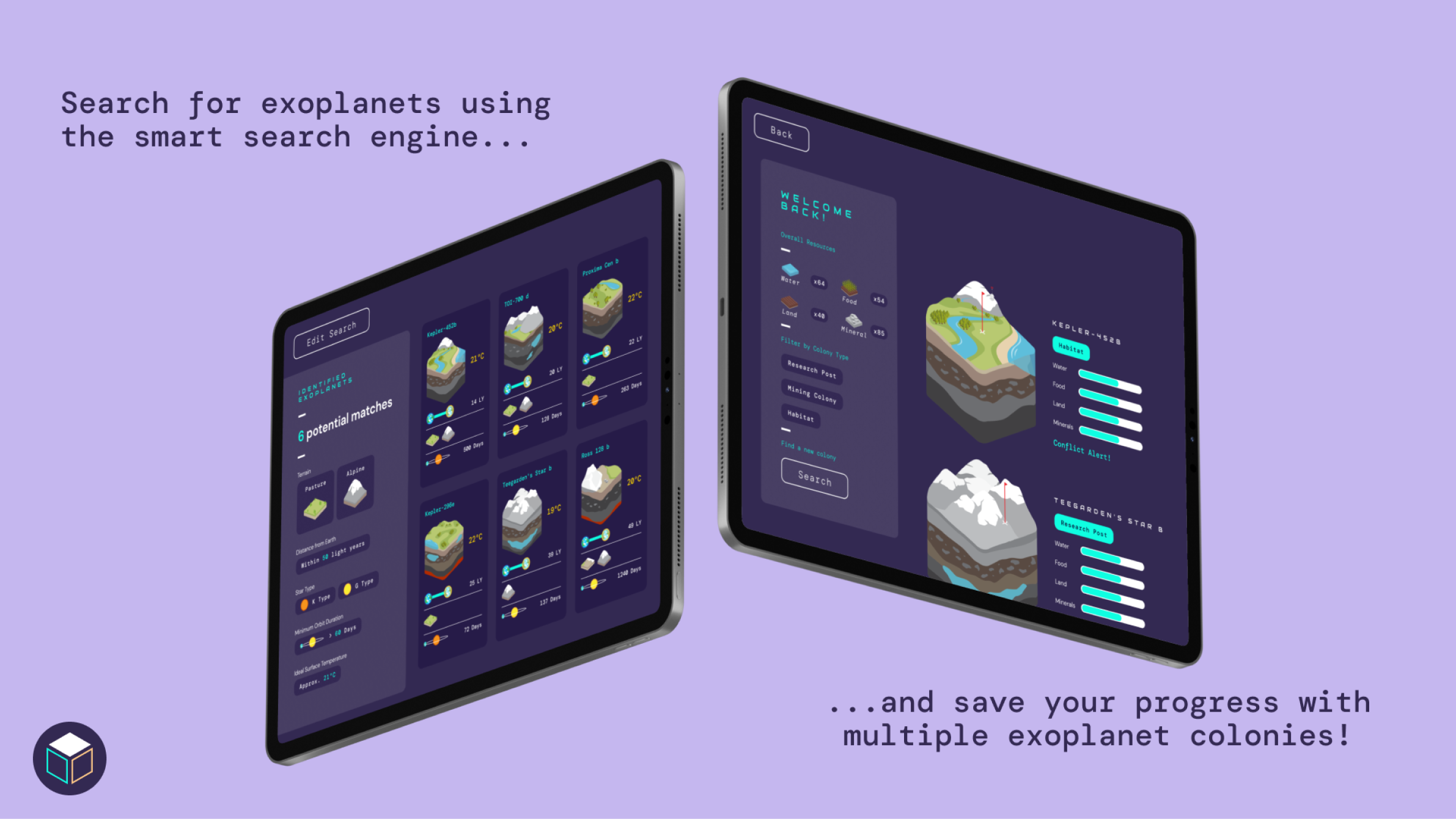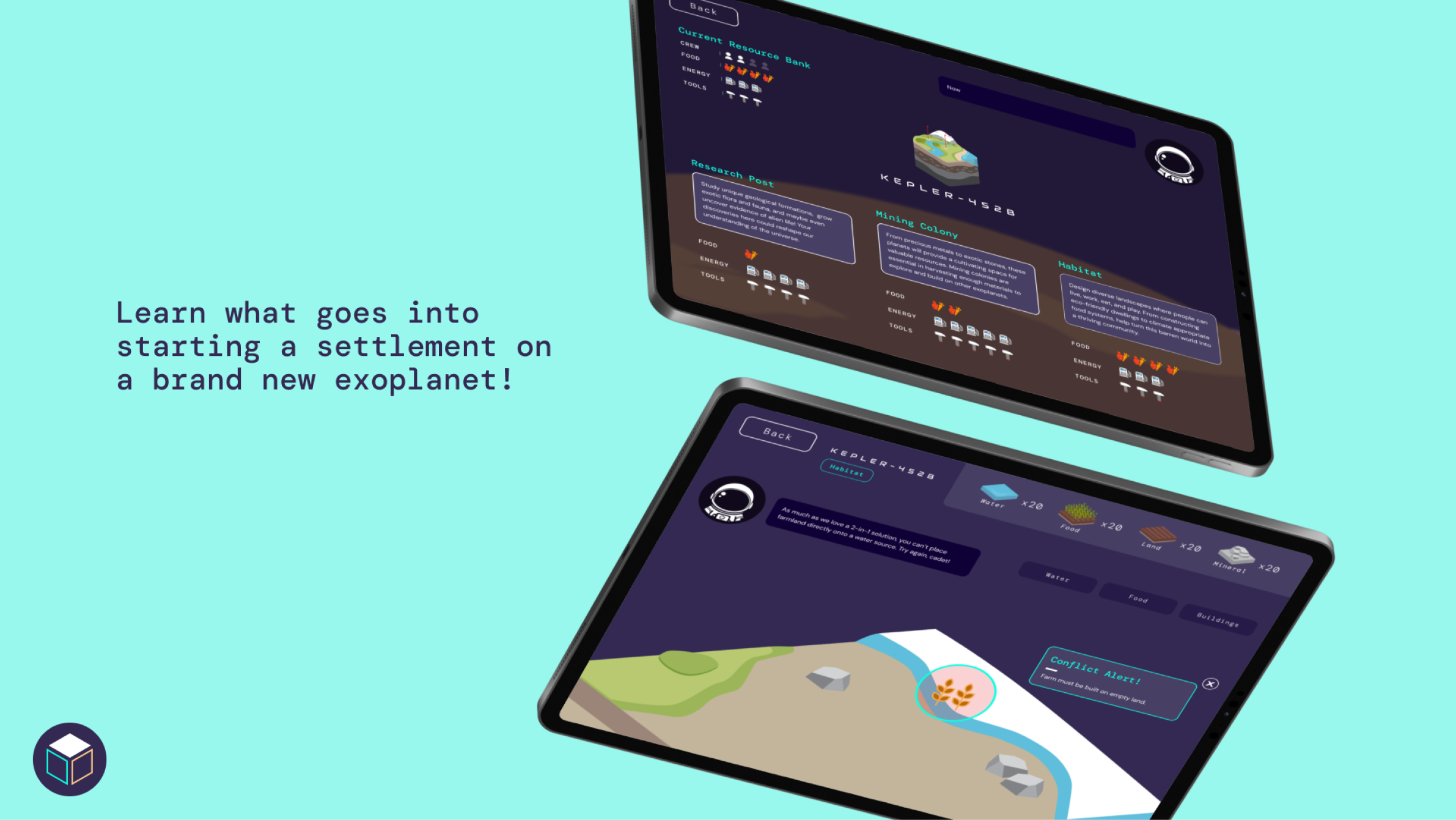 This project focuses on data visualization of a top 100 dataset of most promising habitable exoplanets through an accessible and fun tablet game for young children. They can learn more about exoplanets and get a taste of what space colonization is like.