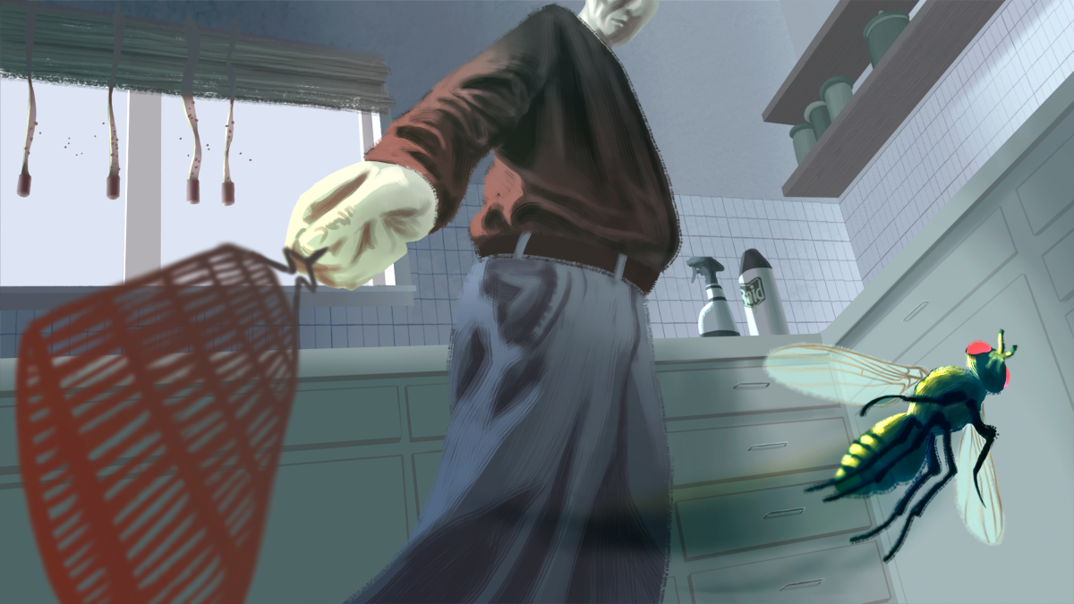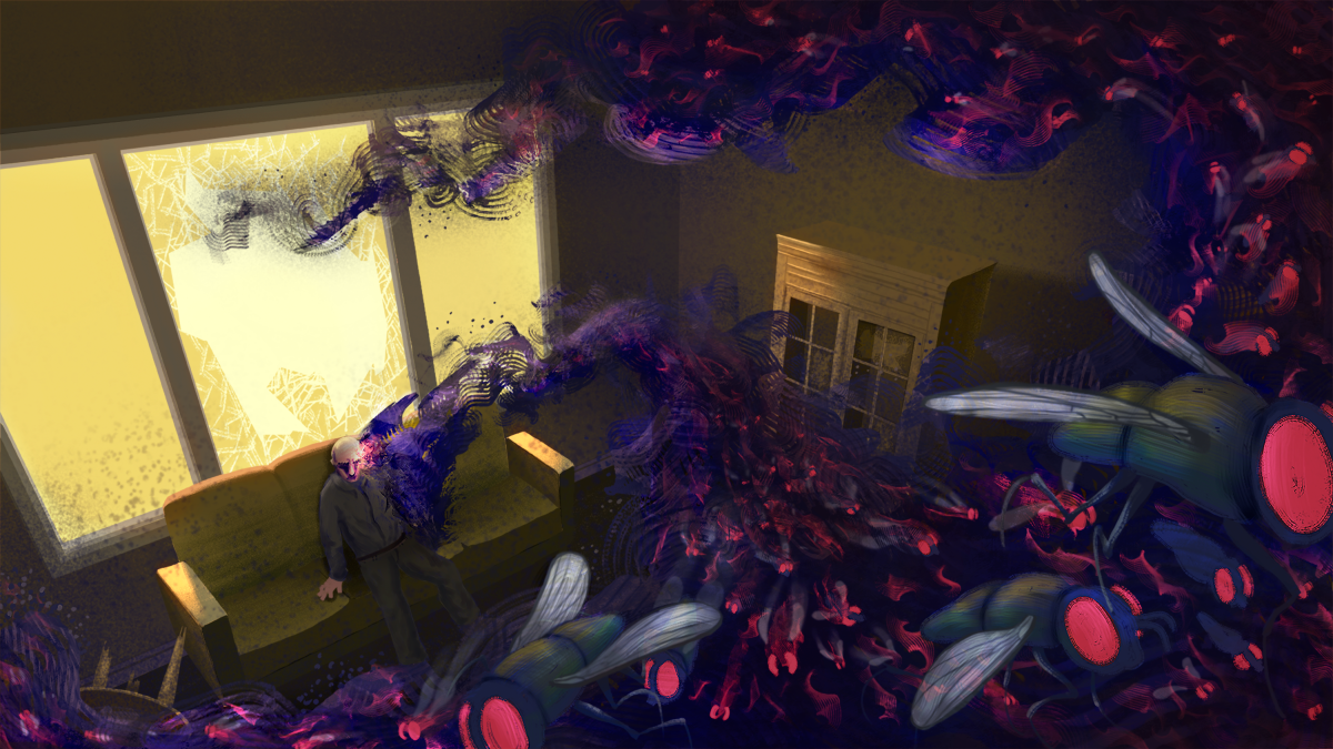 In an attempt to rid his house of the constant buzzing of flies, a man becomes his worst fear.
