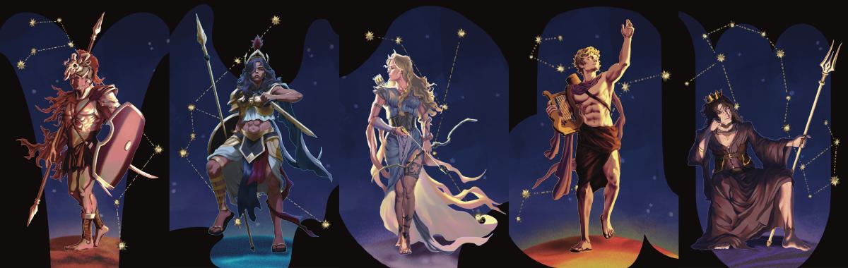 Character designs base on the Greek gods and story of the twelve zodiacs.