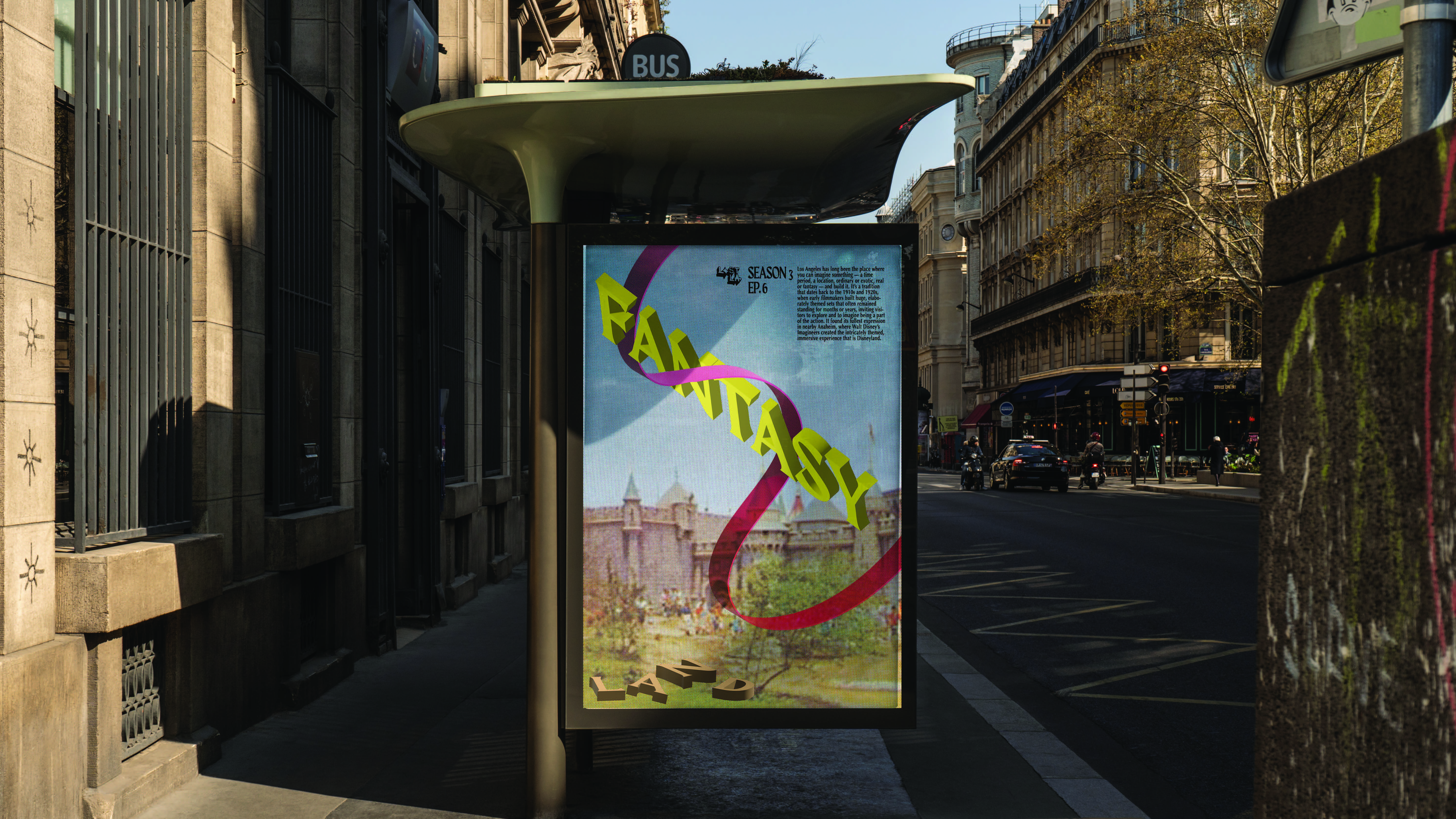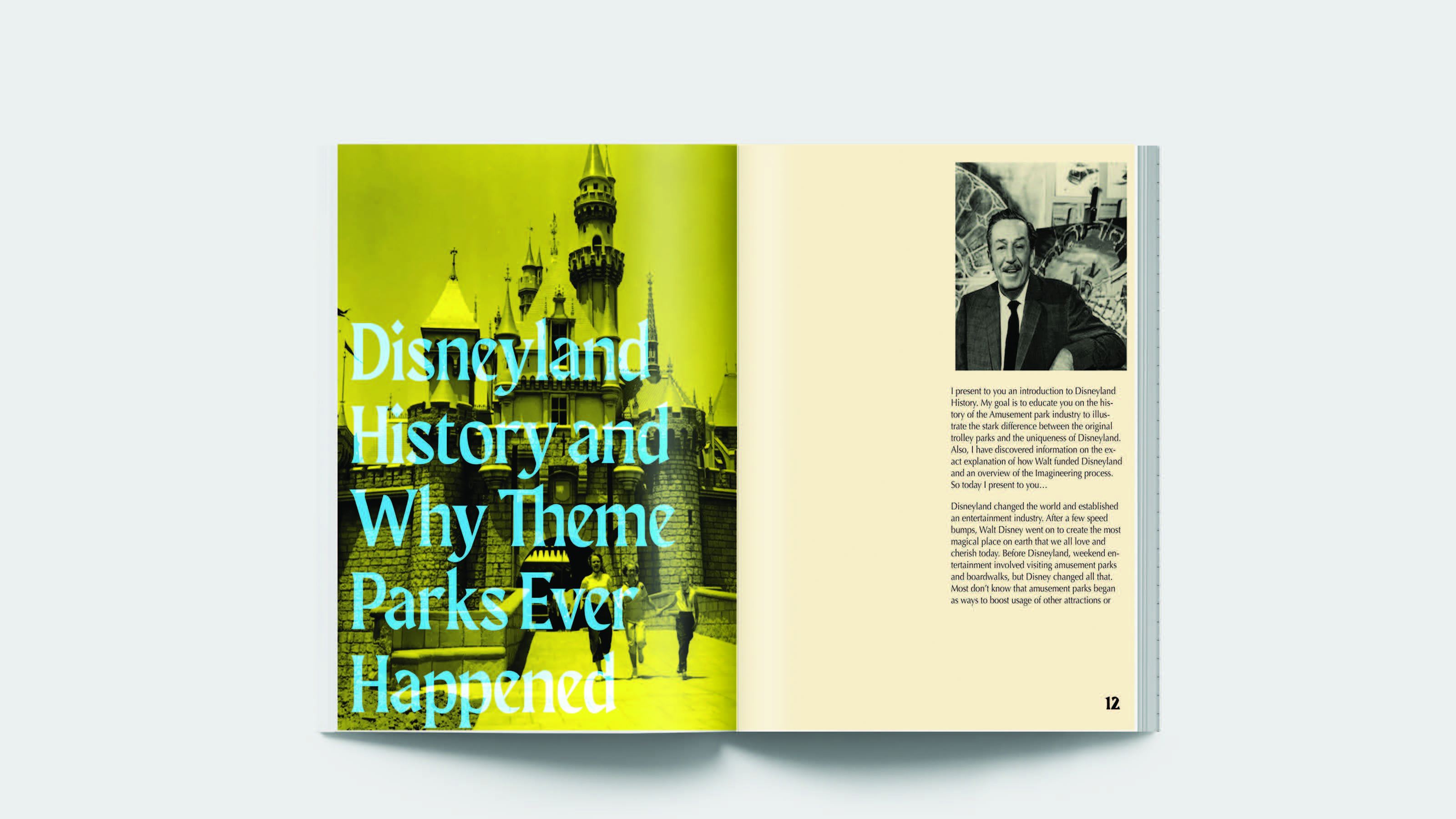 The class was given an option to pick between two shows that were featured on the PBS TV Network. Either Lost LA or Art Bound. I chose Lost LA because the show resinated with me the most having come from the region. I then realized the logo had no depth or dimension like LA should have and decided to implement that concept in the best way possible. I then fell in love with the history of Disneyland and conceptualized a booklet that was based off the episode of Lost LA called "Fantasyland".