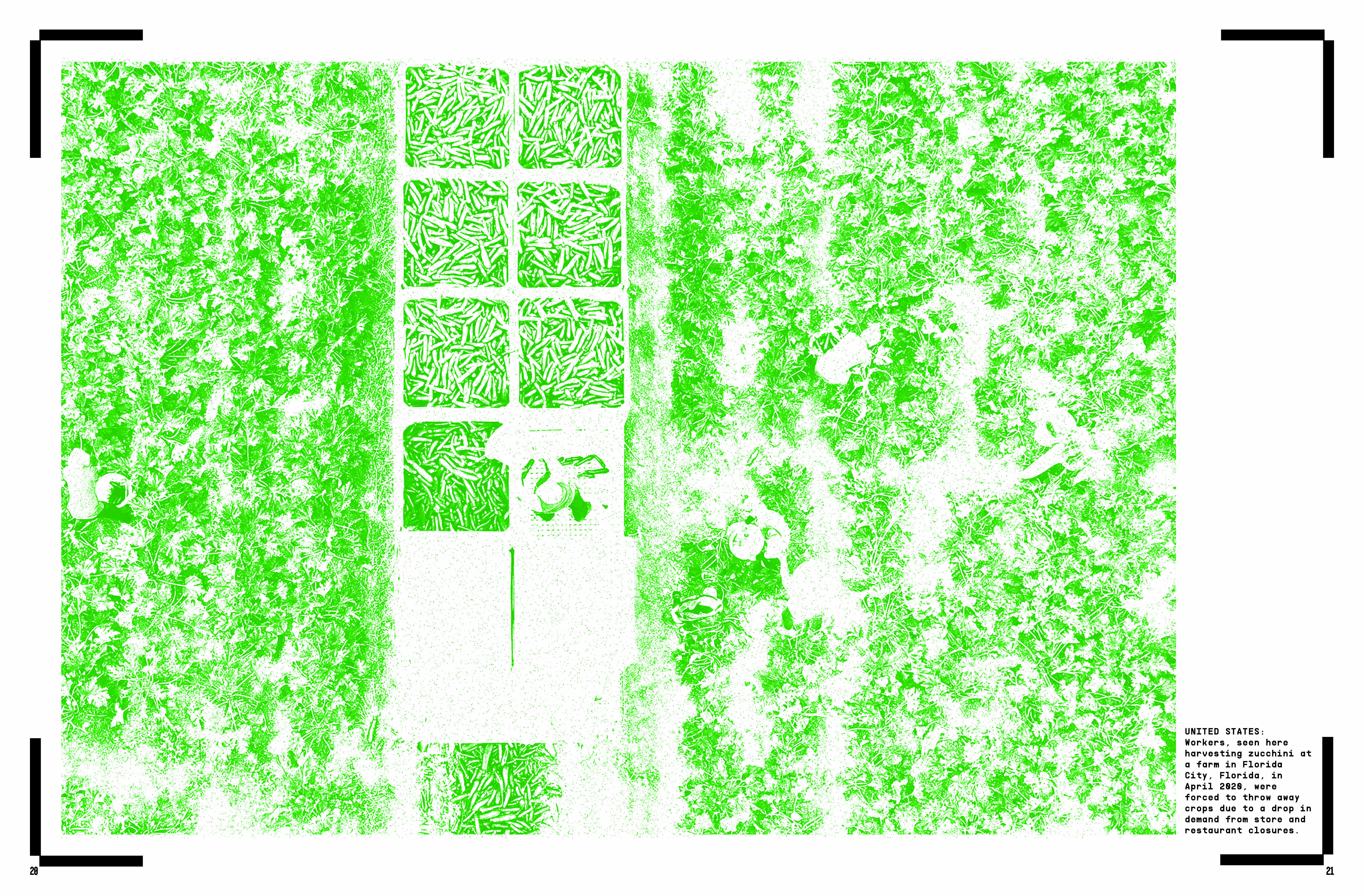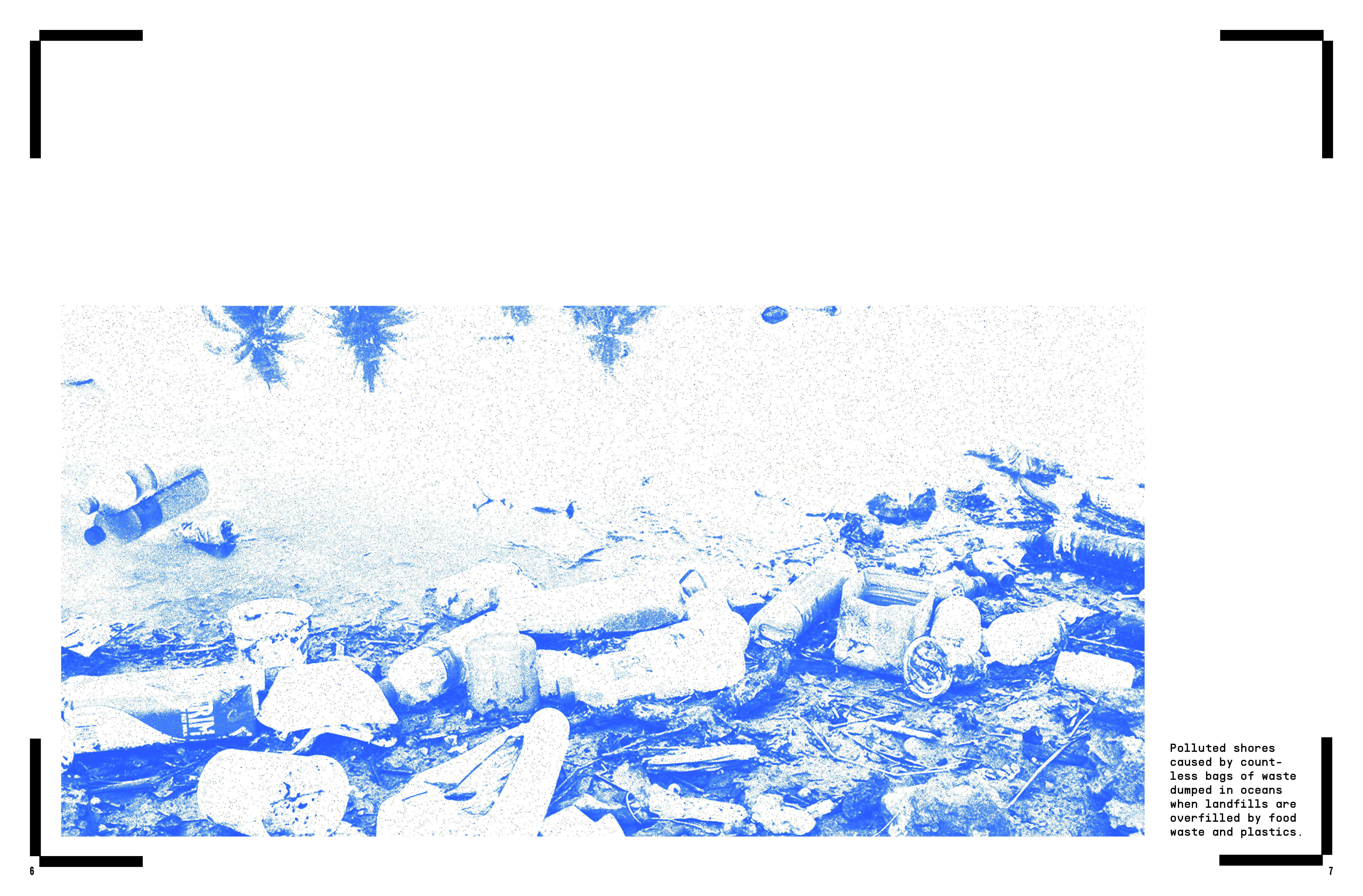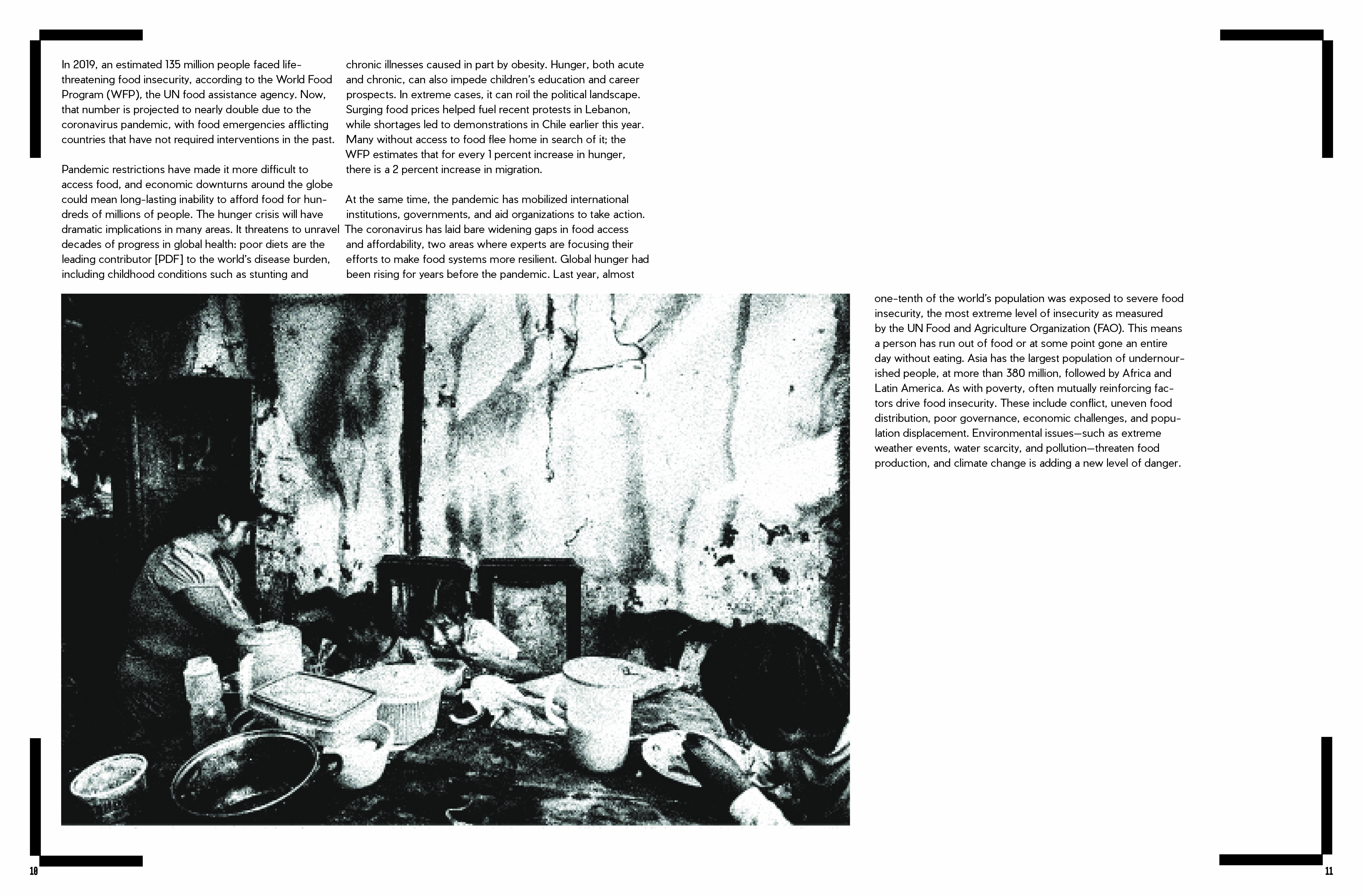 This Zine is curated toward a global non=profit organization named The Hunger Project. This zine is a work in-progress and has to be a minimum of 40 pages. This zine is based off the emphasis of over-consumerism and throw-away culture. With image treatment that represents the raw, organic, textured layering of food/food waste. An RGB approach was taken for color palette and a system with the HUD of a barcode scanner is repeated on each page to employ the page is currently being scanned by viewer