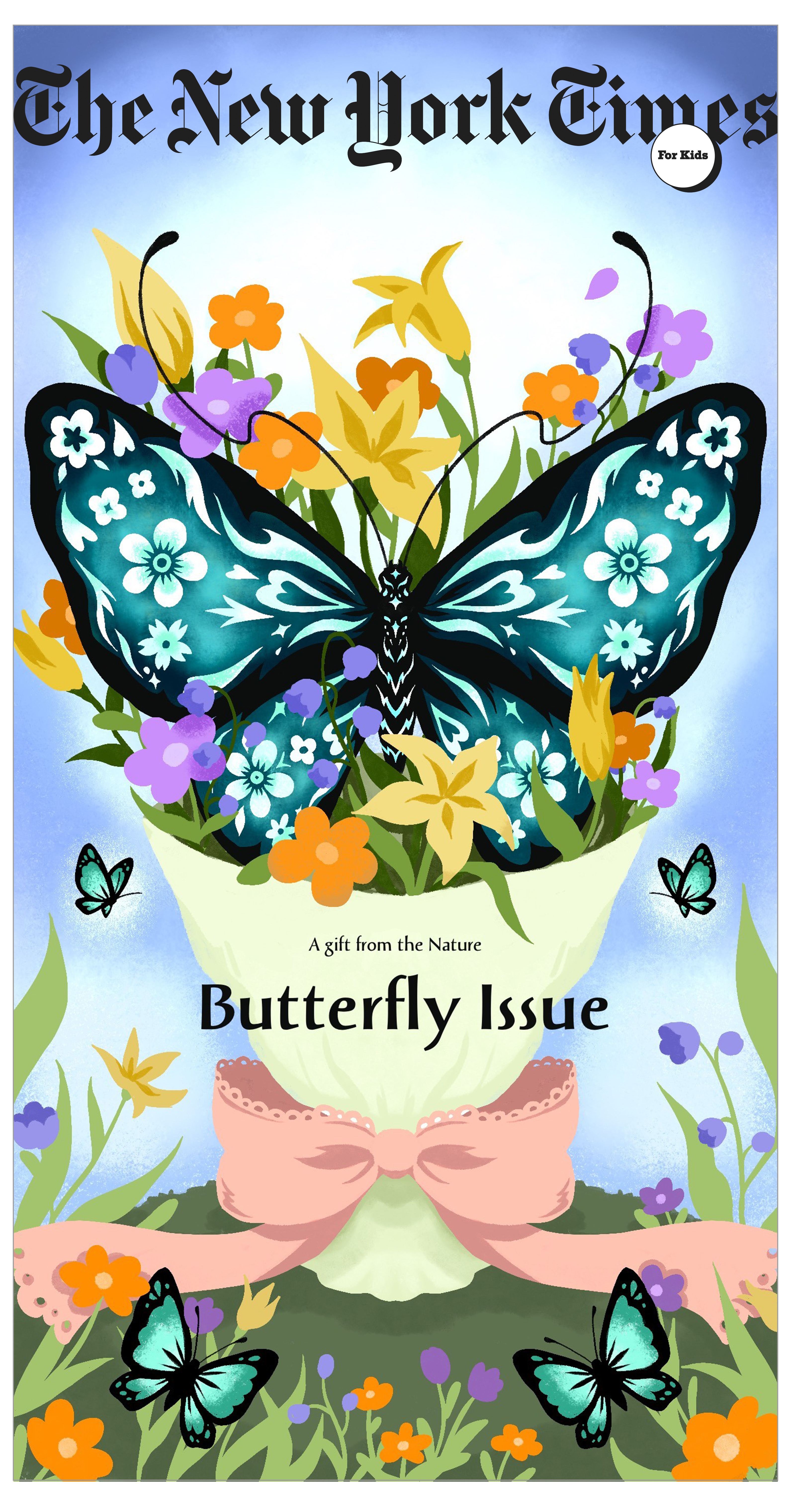 I illustrated a magazine cover for the kids' section of The New York Times, featuring a butterfly as the central symbol. The aim is to engage young readers in environmental conservation, using the butterfly to inspire curiosity and raise awareness about protecting nature.