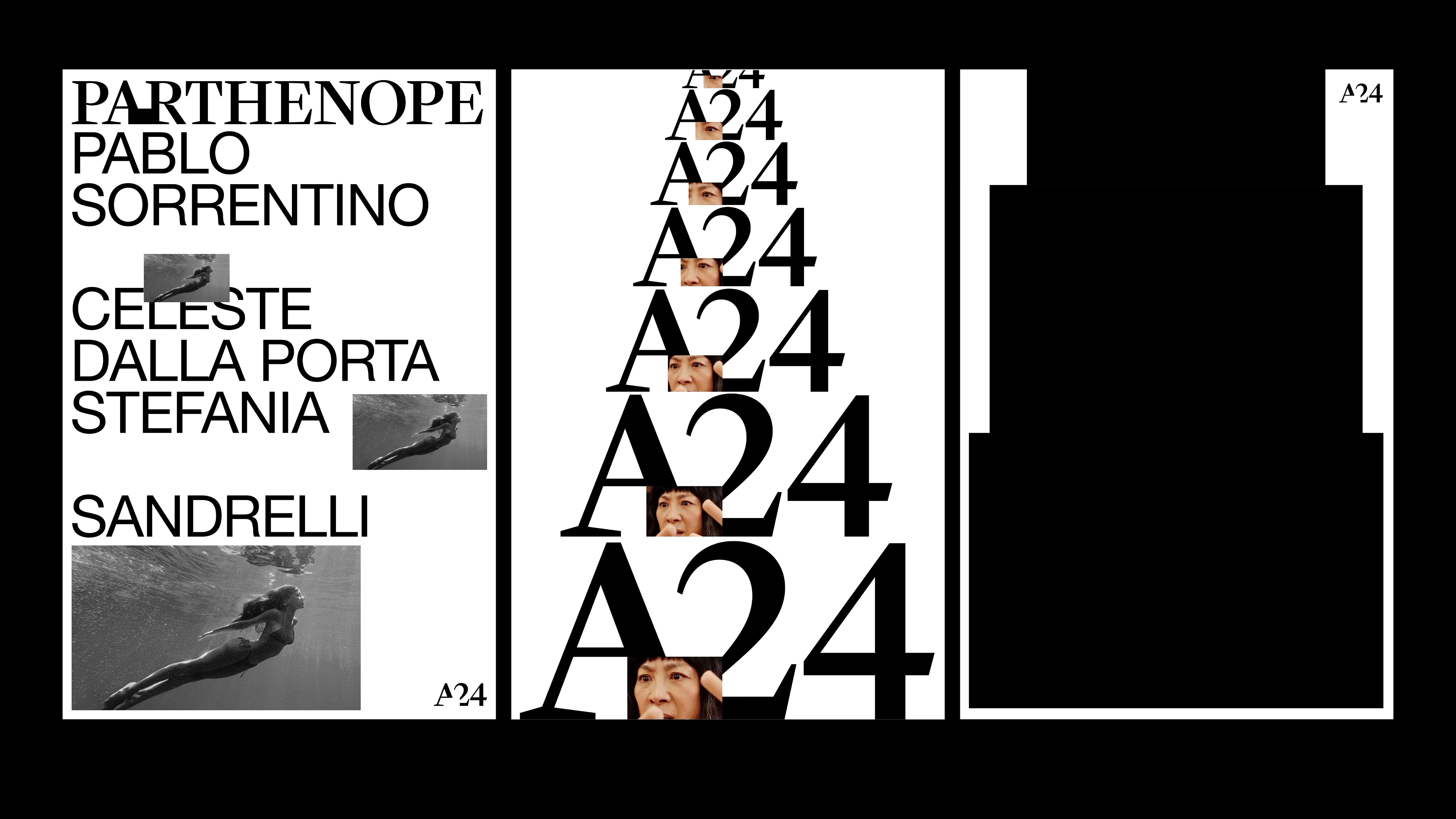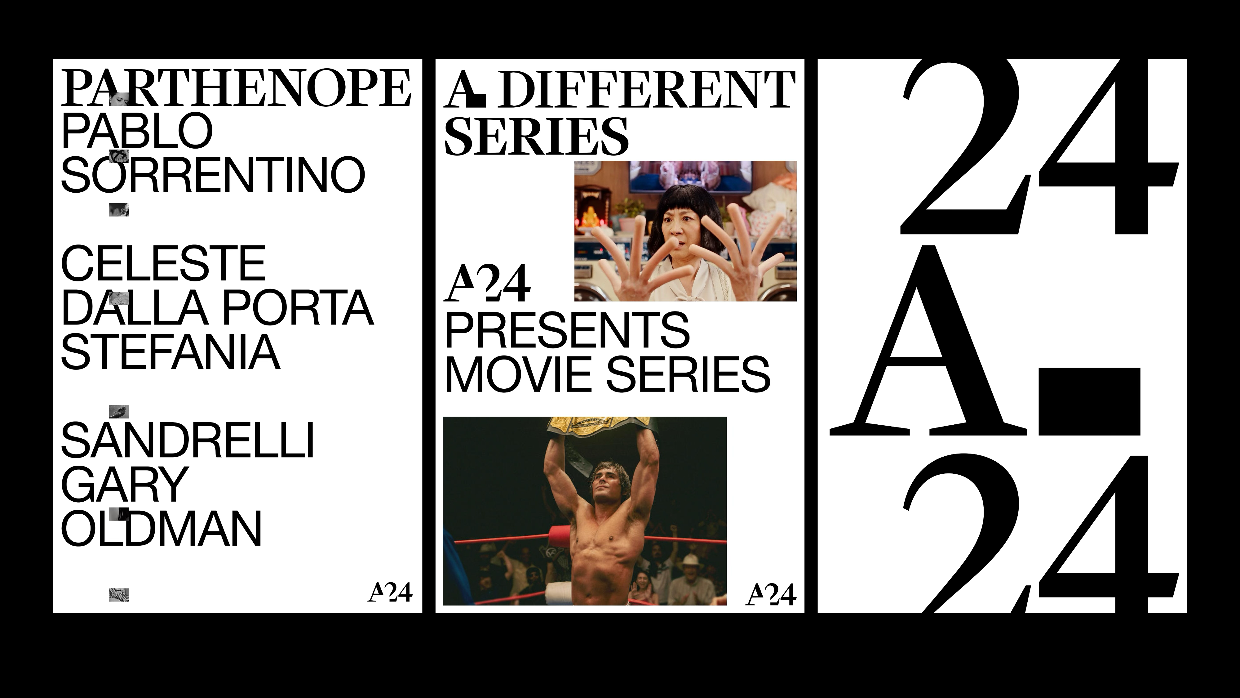 This is a self-initiated project for A24; an American independent entertainment company that specializes in stylish, distinctive, and unique indie movies. The identity system begins with a logo featuring a wordmark within a 16:9 square, reflecting the aspect ratio used in movies and TV. The identity communicates the dramatic and stylish essence of A24 through dynamic changes in typography scale, using squares as image containers, boxes, and various graphic elements.
