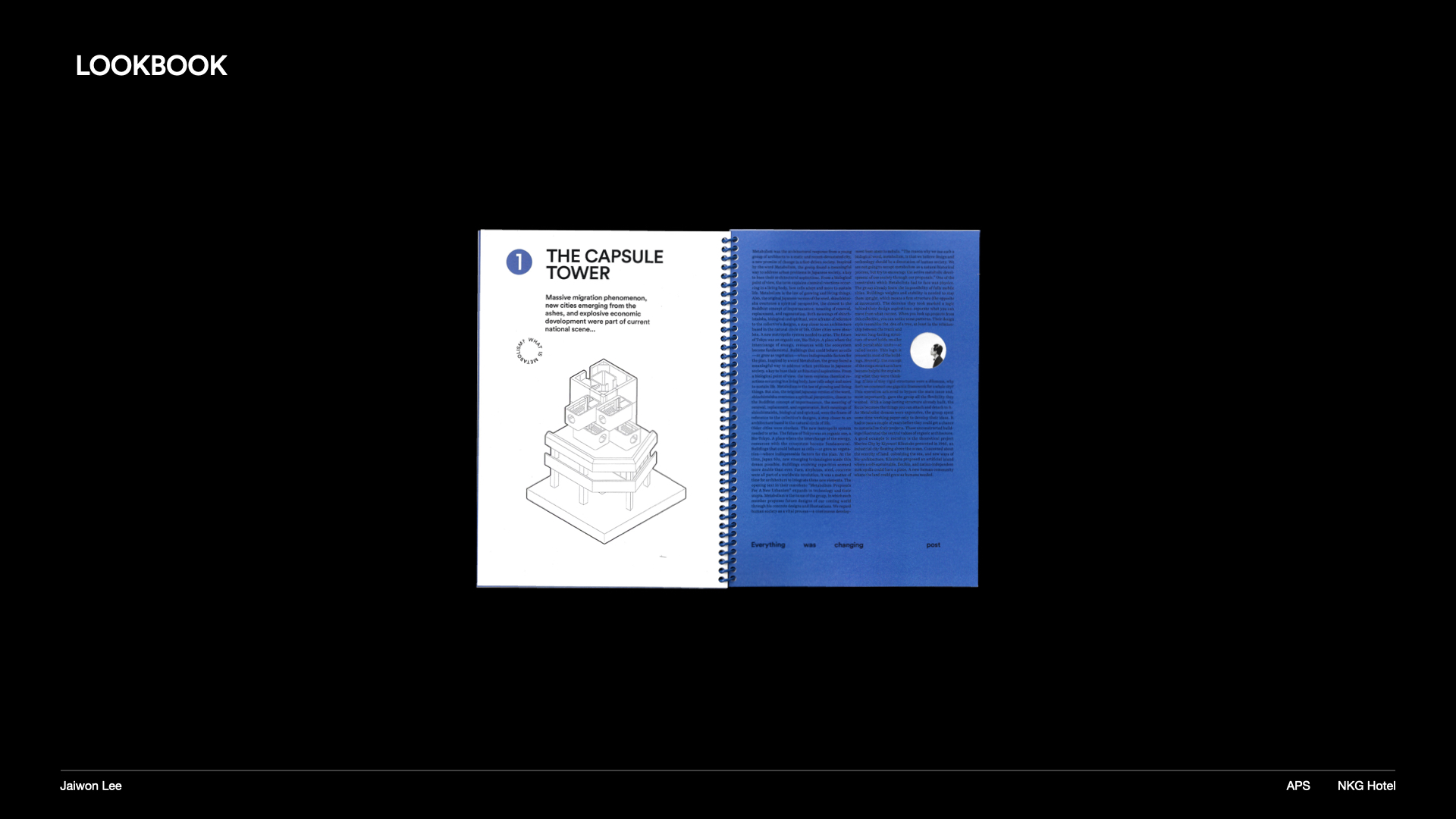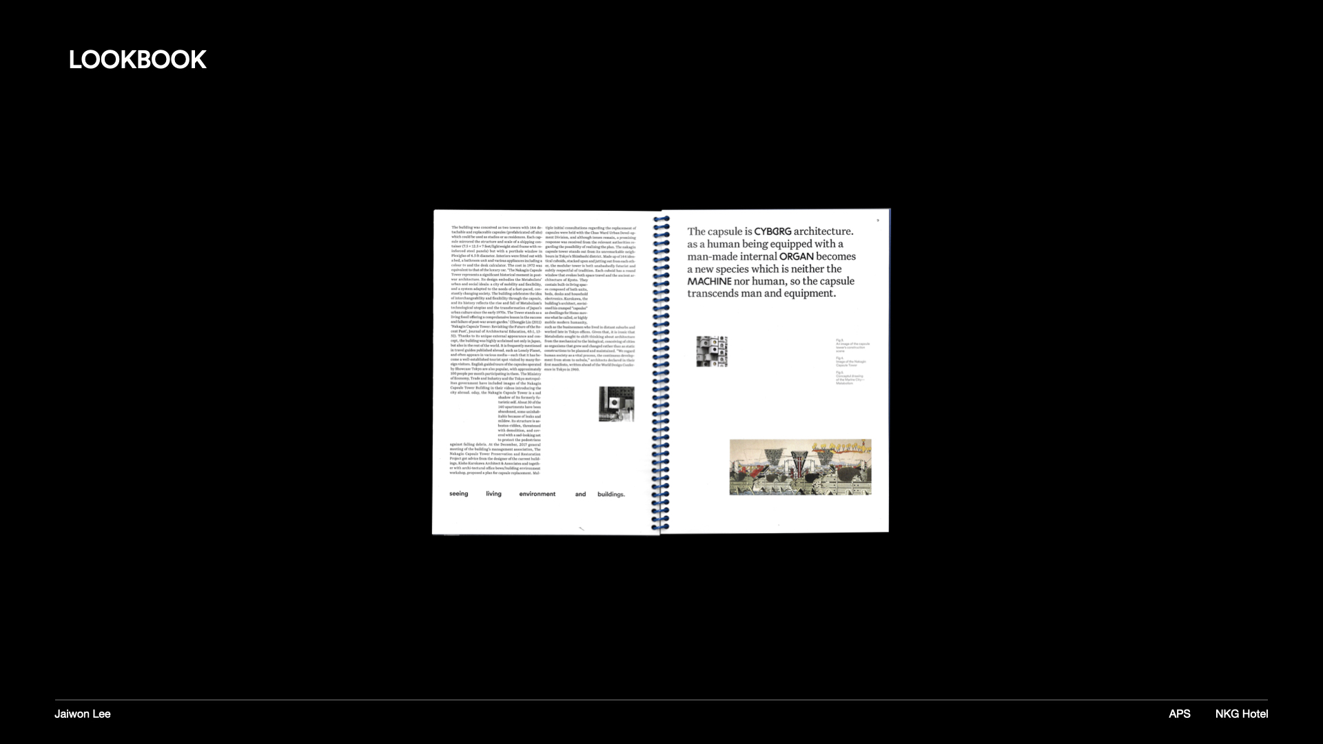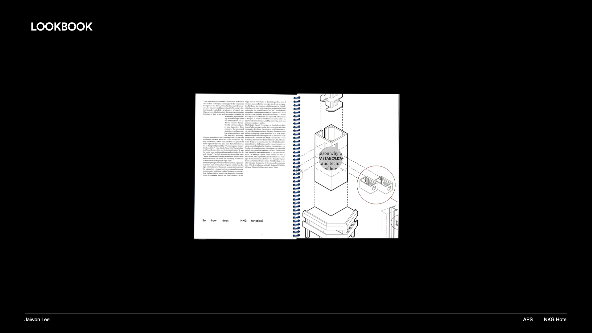 NKG Hotel is a rebranding project for Nakagin Capsule Tower in Japan. The tower is one of the last building to remain as Japanese Metabolism movement symbol, and was demolished. This project honors the idea of Metabolism—viewing people in the architecture as "cells" and "organism"—and rebrands the building as a hotel and co-living space.