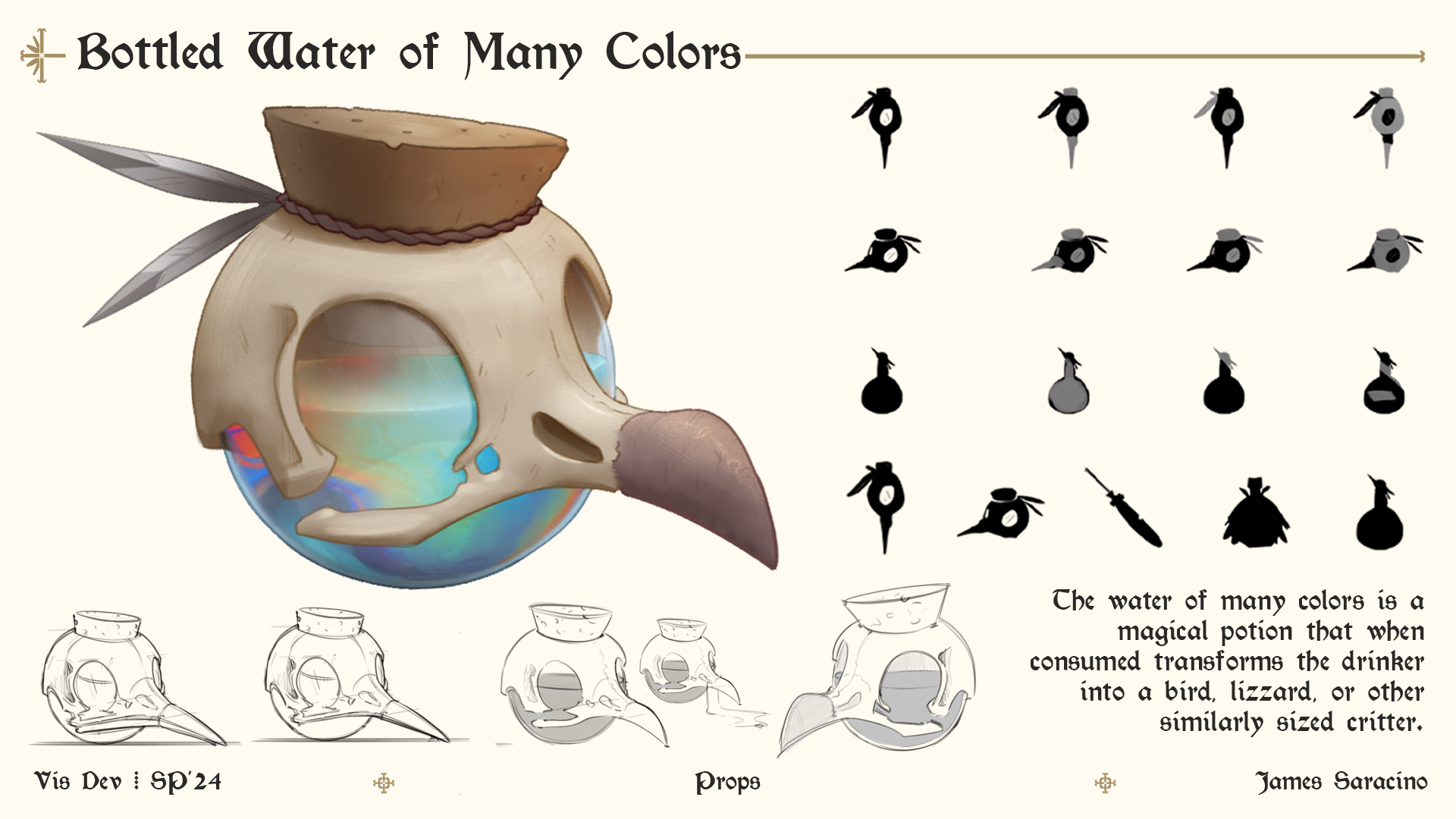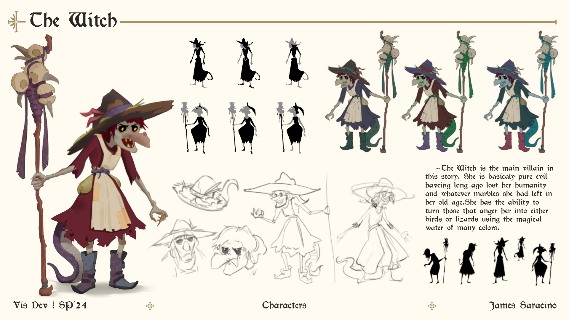 Graduates Select DepartmentBrand Design & StrategyCreative DirectionEntertainment DesignFilmFine ArtFurniture, Lighting and FixturesGraduate ArtGraduate FilmGraduate Graphic DesignGraduate Interaction DesignGraduate Spatial Experience DesignGraphic DesignIllustrationIndustrial DesignInteraction DesignMedia Design PracticesPhotography and ImagingProduct DesignSpatial Experience DesignTransportation DesignTransportation Systems and Design Back to Projects James Saracino BFA in Illustration - Entertainment Arts — Illustration Bird of Truth This was a group project about an overhaul of a fairytale called The Bird of Truth. (Only my portion of the work will be shown) Image Image Image Image