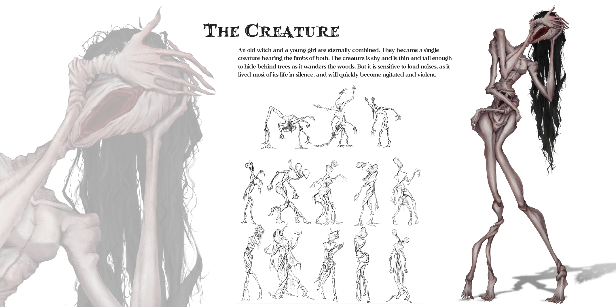 The creature which appears like two bodies merged as one comes out from the woods, driven by loneliness and a desperate need for companionship, seeking friends among the children. It attacks the camp, killing some counselors and children, spreading chaos and fear.