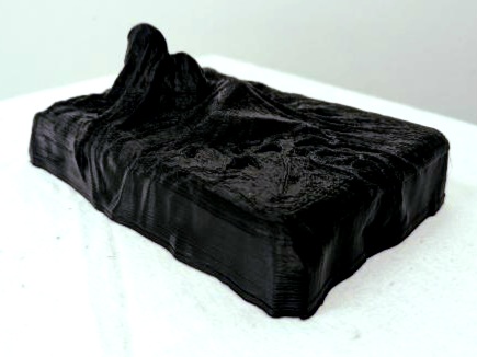 I made this piece in continuation of my anarchitectural project 'Sleep: The Chalice of Ecstasy.' It is an automated materialization of a digital, spatial capture process. In this instance a set of semi plausible instructions were performed by a fused deposition model printer, contouring on open air, causing the model to become non reproduceable. The 3d model was collected from photos of my partner, cloaked in bedsheets, a gesture of indexicality in form, but retaining anonymity.
