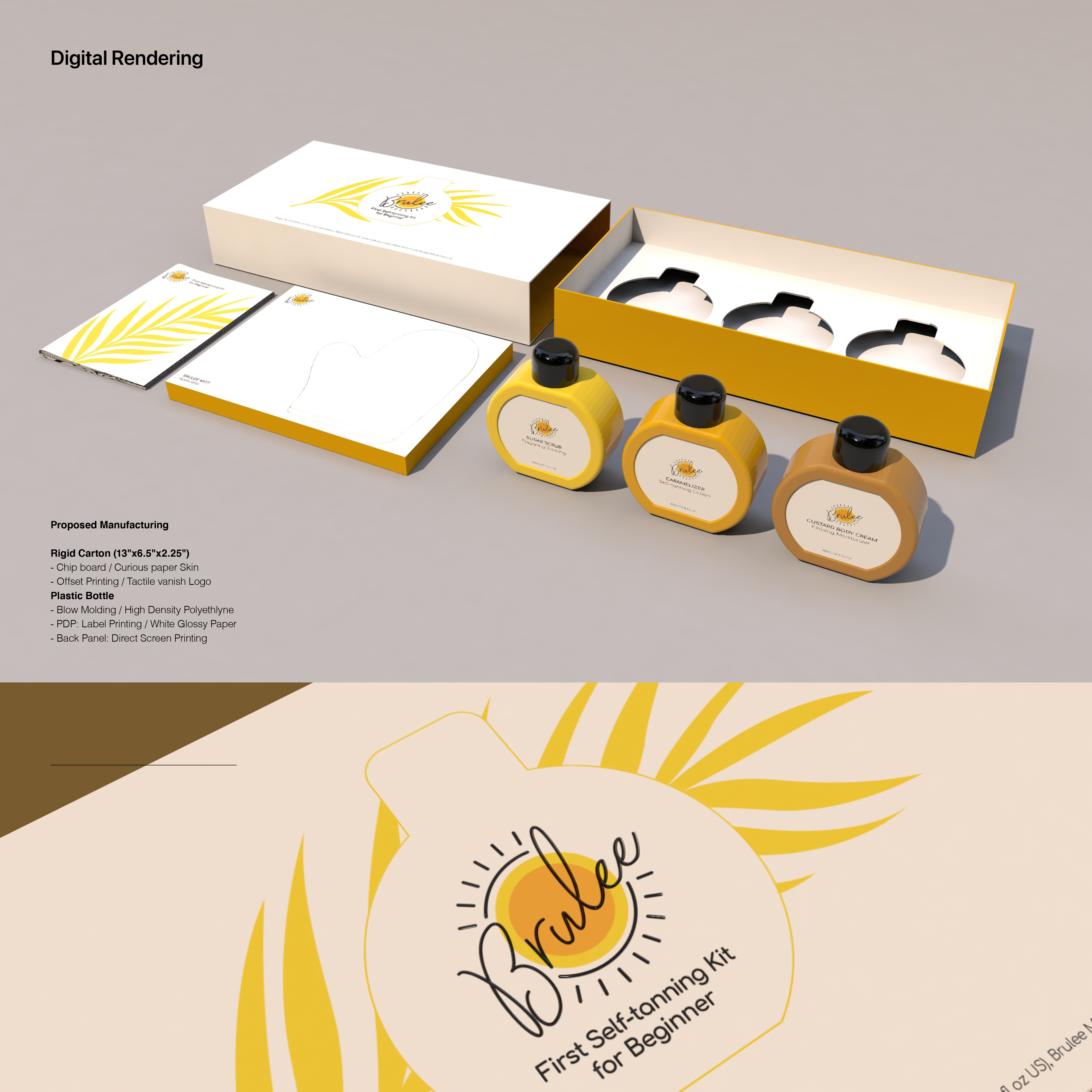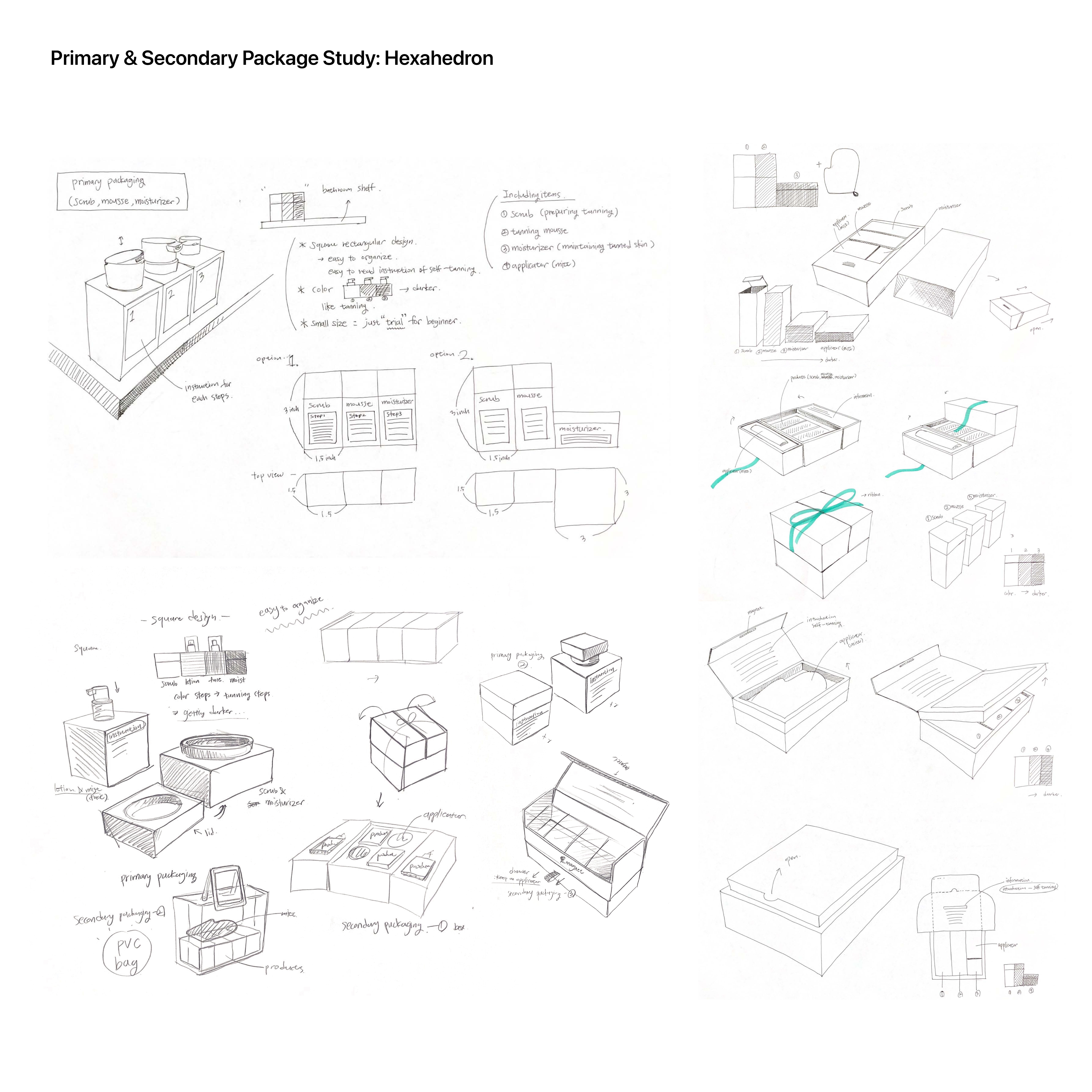 This a hypothetical product providing an all-in-one self-tanning kit and developing instinctive packaging that users can follow the correct steps while applying products. I tried to solve a problem when a first tanner face usually. People who have never experience self-tanning get confused about what product they should apply before and after tanning. As a result, I made it clear using the color and structure of the packaging.