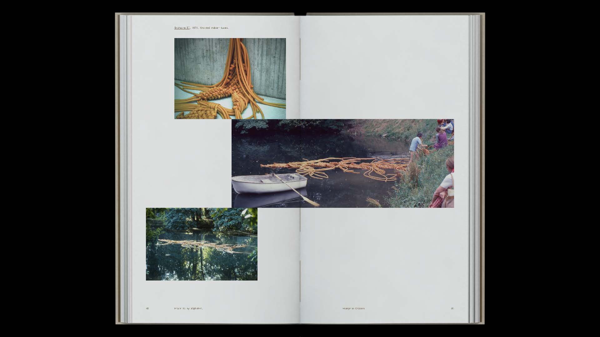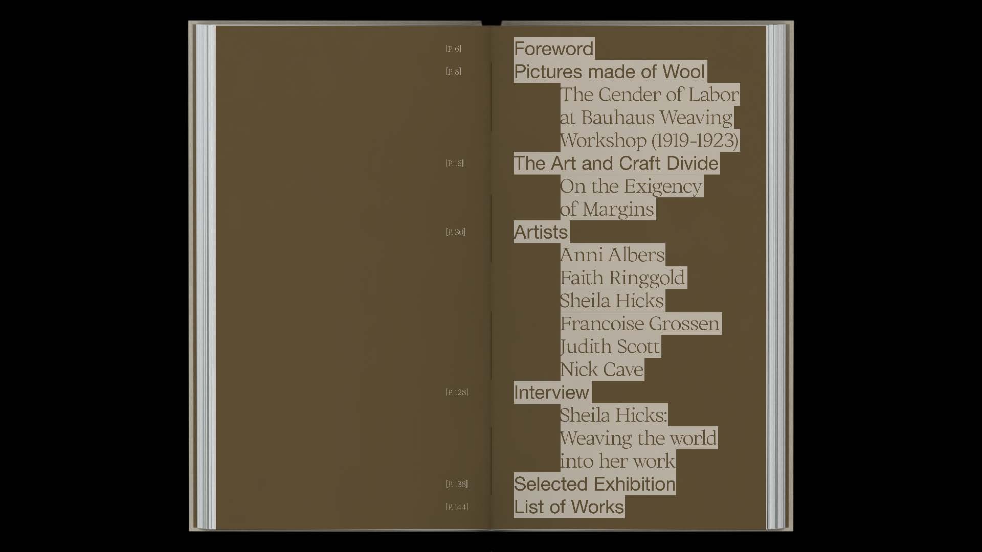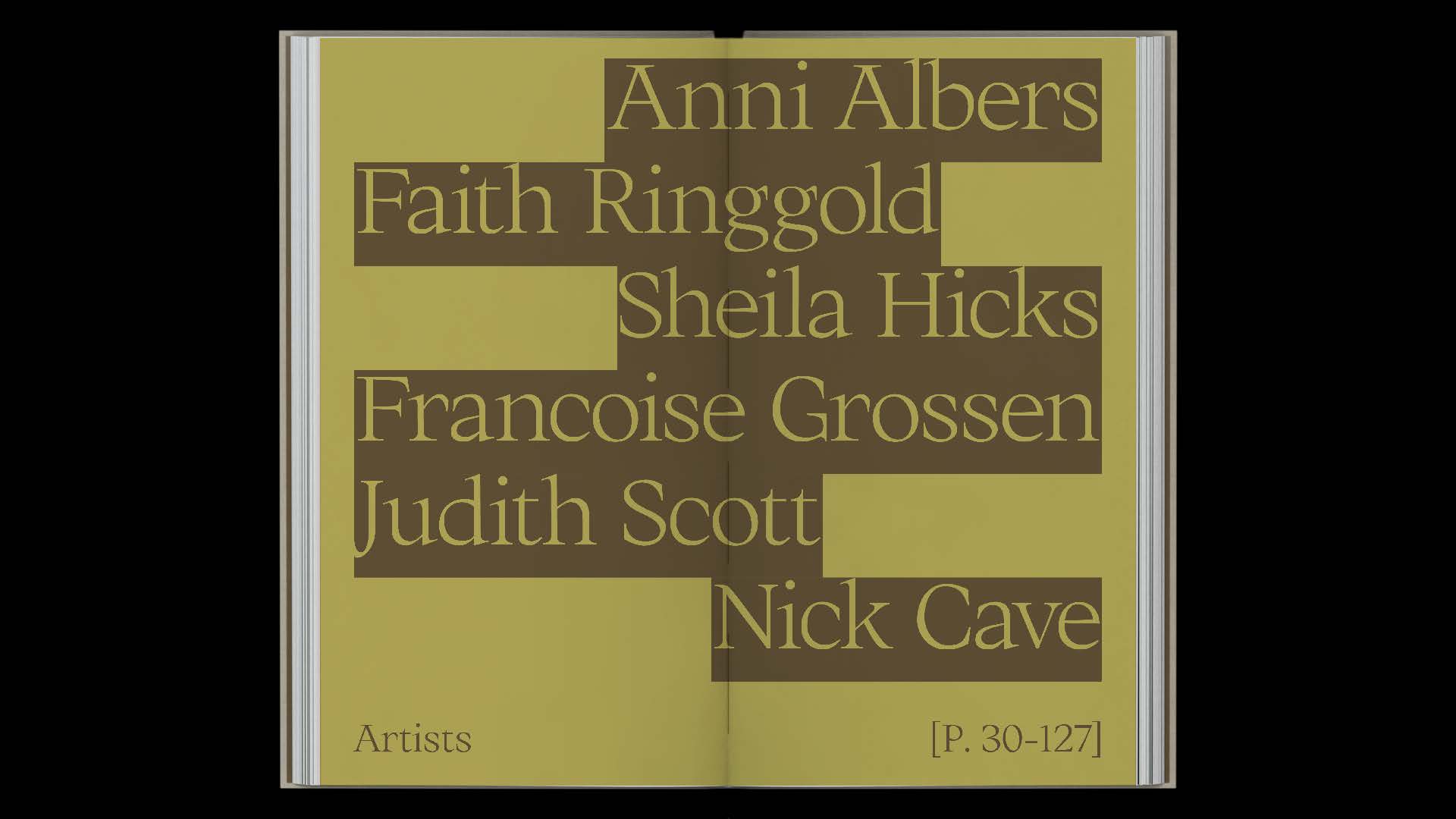 Fiber is Alphabet is an exhibition showcasing artists who redefined textile art beyond tradition, exploring new interpretations and expanding its scope. It highlights the evolution of textile and fiber media into a new art form, challenging stereotypes and traditional uses. The exhibition and catalog design re-imagine traditional weaving mechanisms, using vertically stacked graphic shapes to represent the movement and interweaving of threads on a loom.